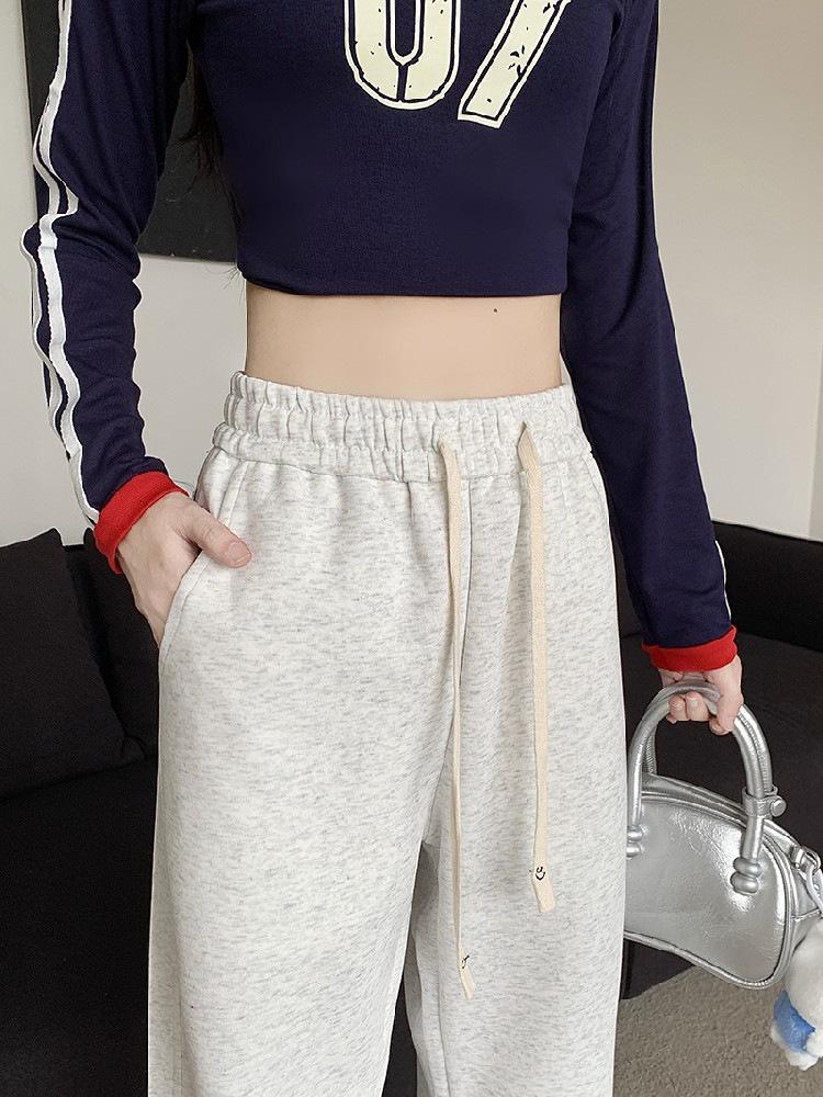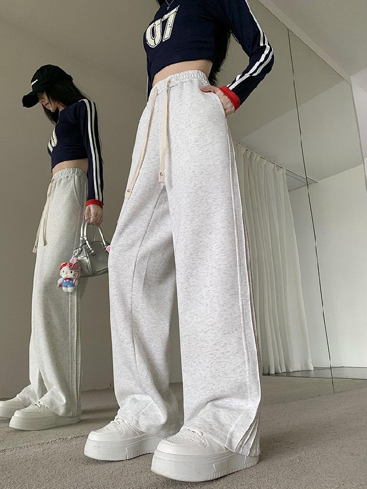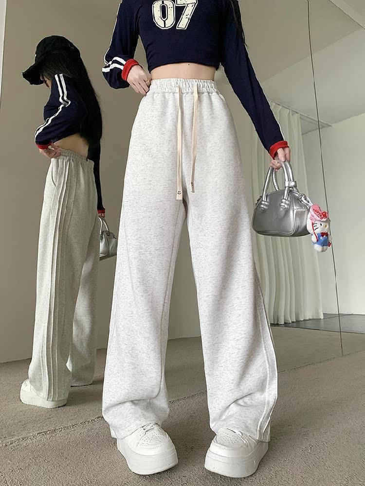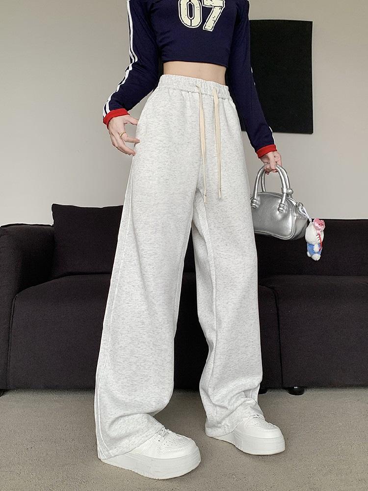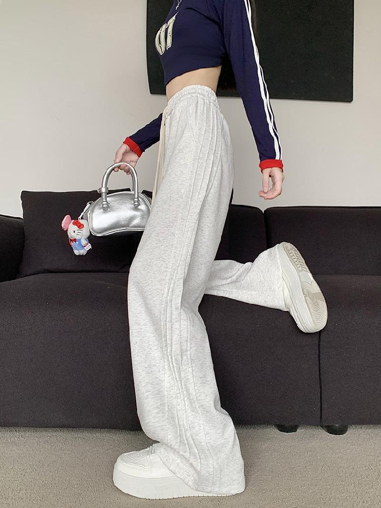 Pantalones deportivos de mujer primavera y otoño nuevo estilo pierna recta sueltos pantalones largos casuales de mujer pantalones deportivos grises estilo delgado de verano