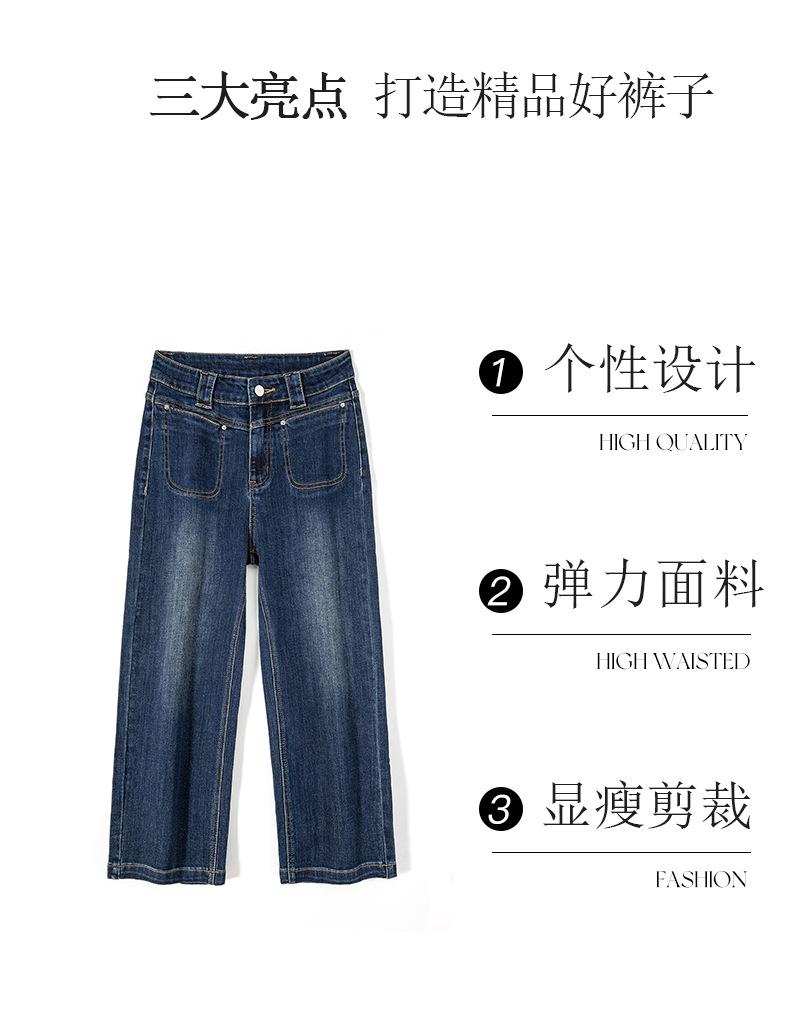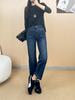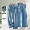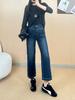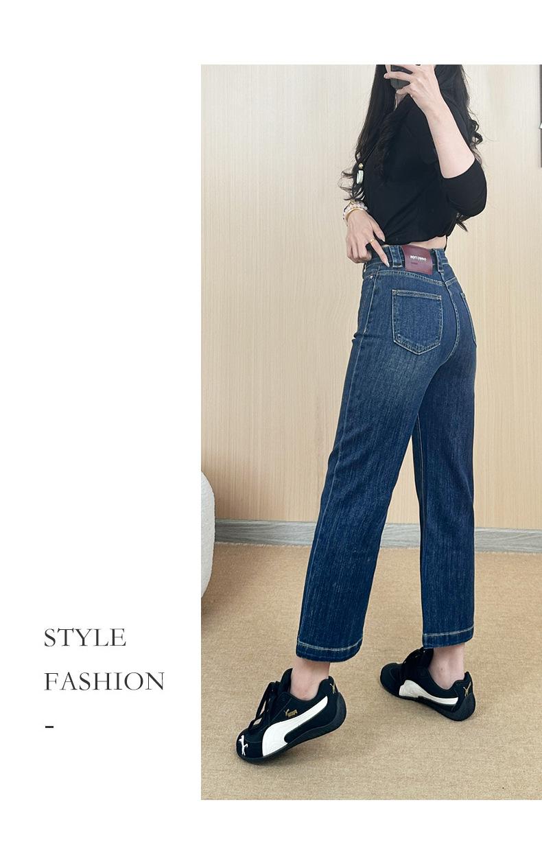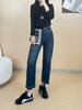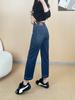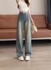 Otoño 2025 Nuevos Jeans Versátiles de Moda para Mujer Jeans de Cintura Alta Lavados de Pierna Ancha para Mujer Azul Oscuro
