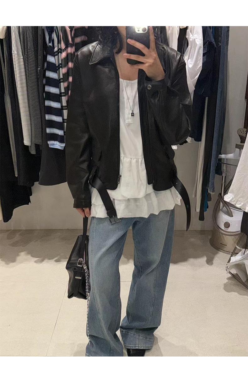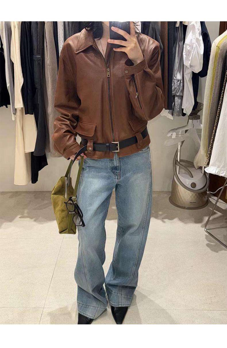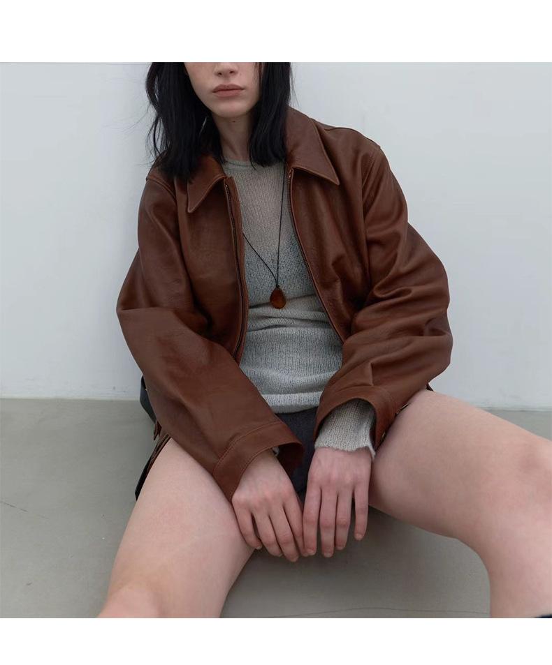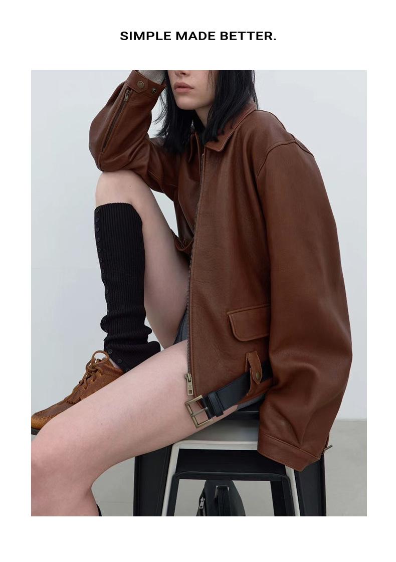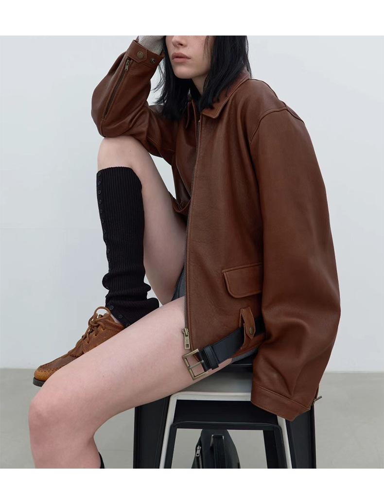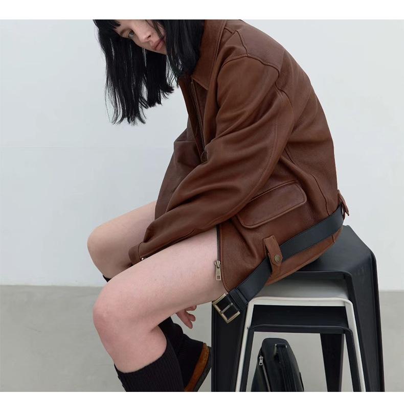 2025 otoño nuevo estilo retro coreano motocicleta guapo versátil adelgazante solapa chaqueta corta de cuero chaqueta mujer
