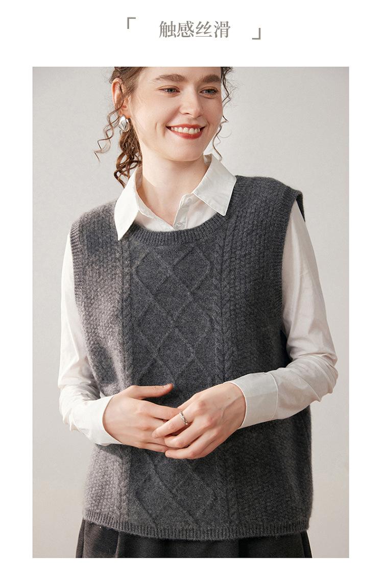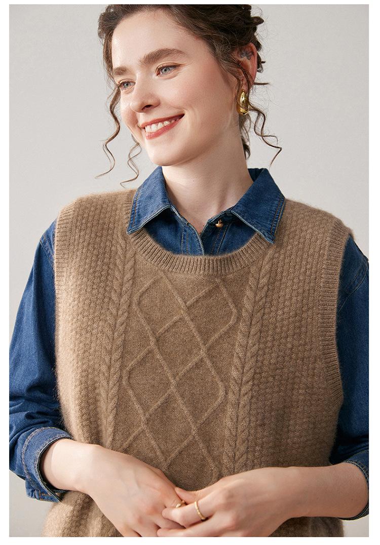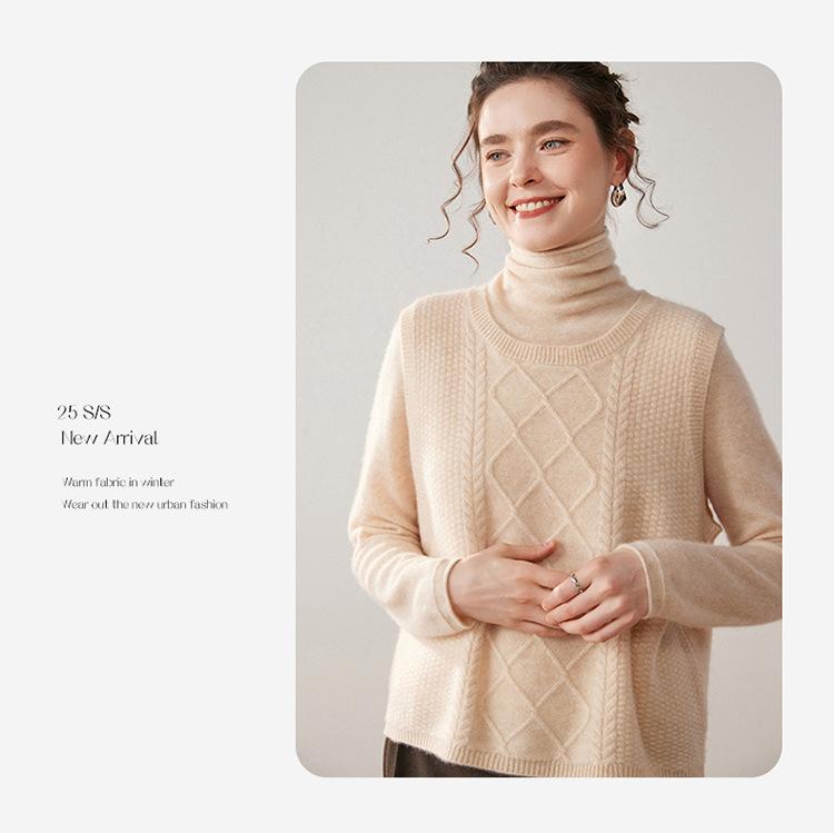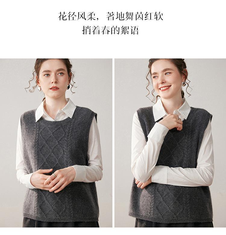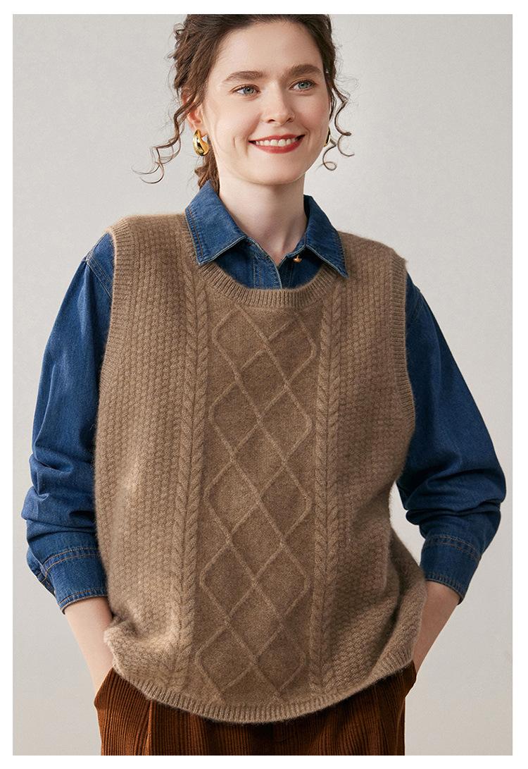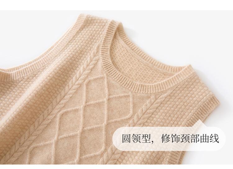 Nuevo Chaleco de Cachemira de Otoño e Invierno para Mujer Cuello Redondo Grueso Jacquard Sin Mangas Tejido Suelto Ropa Exterior Jersey Hombrera