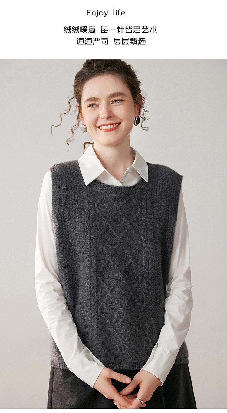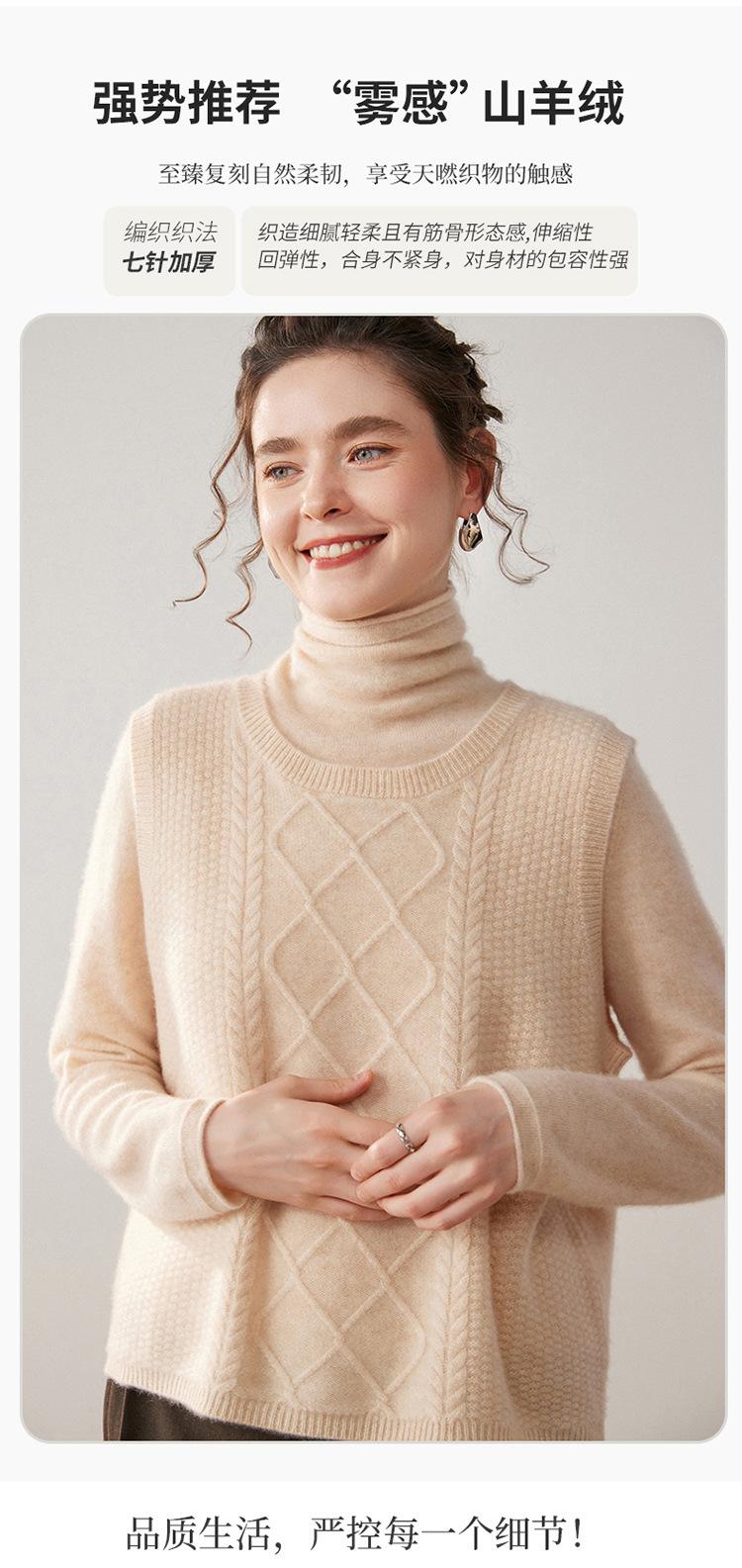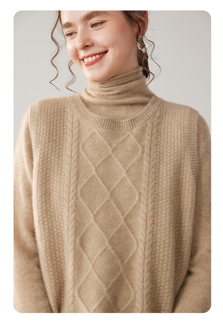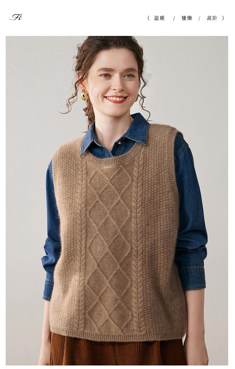 Nuevo Chaleco de Cachemira de Otoño e Invierno para Mujer Cuello Redondo Grueso Jacquard Sin Mangas Tejido Suelto Ropa Exterior Jersey Hombrera