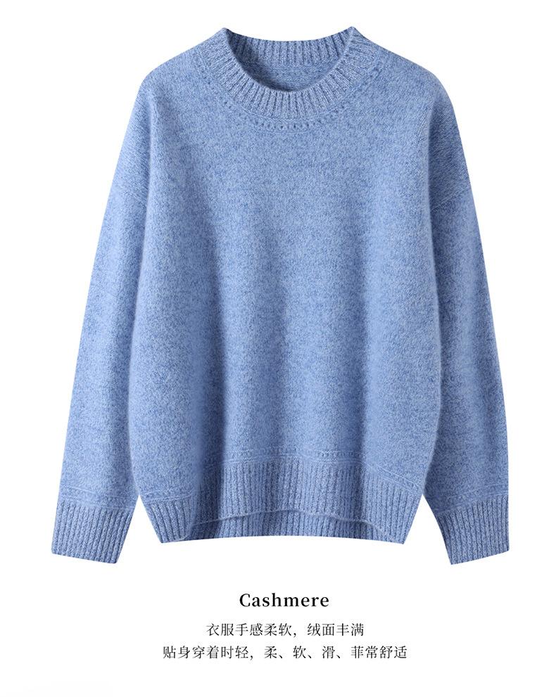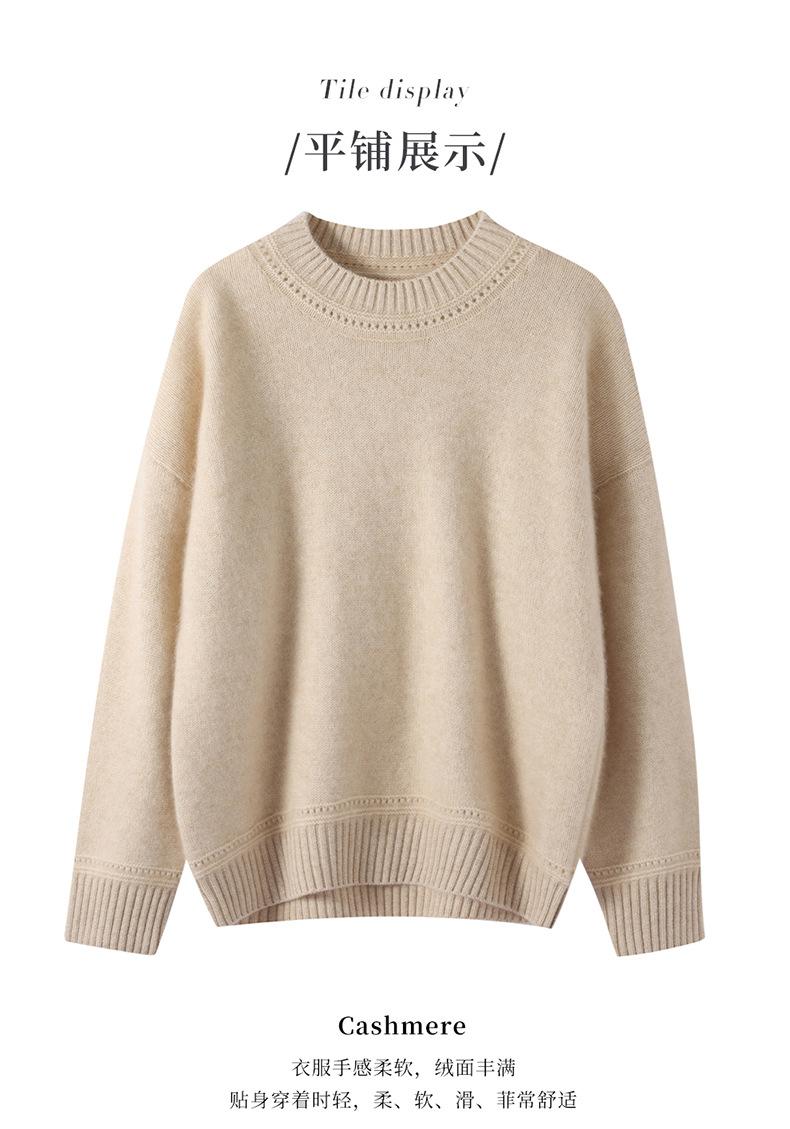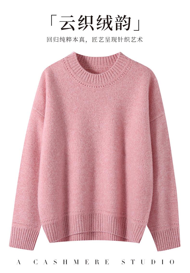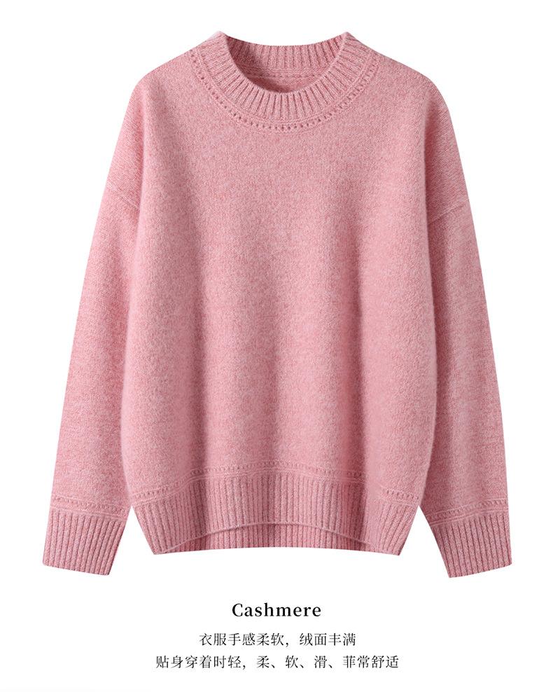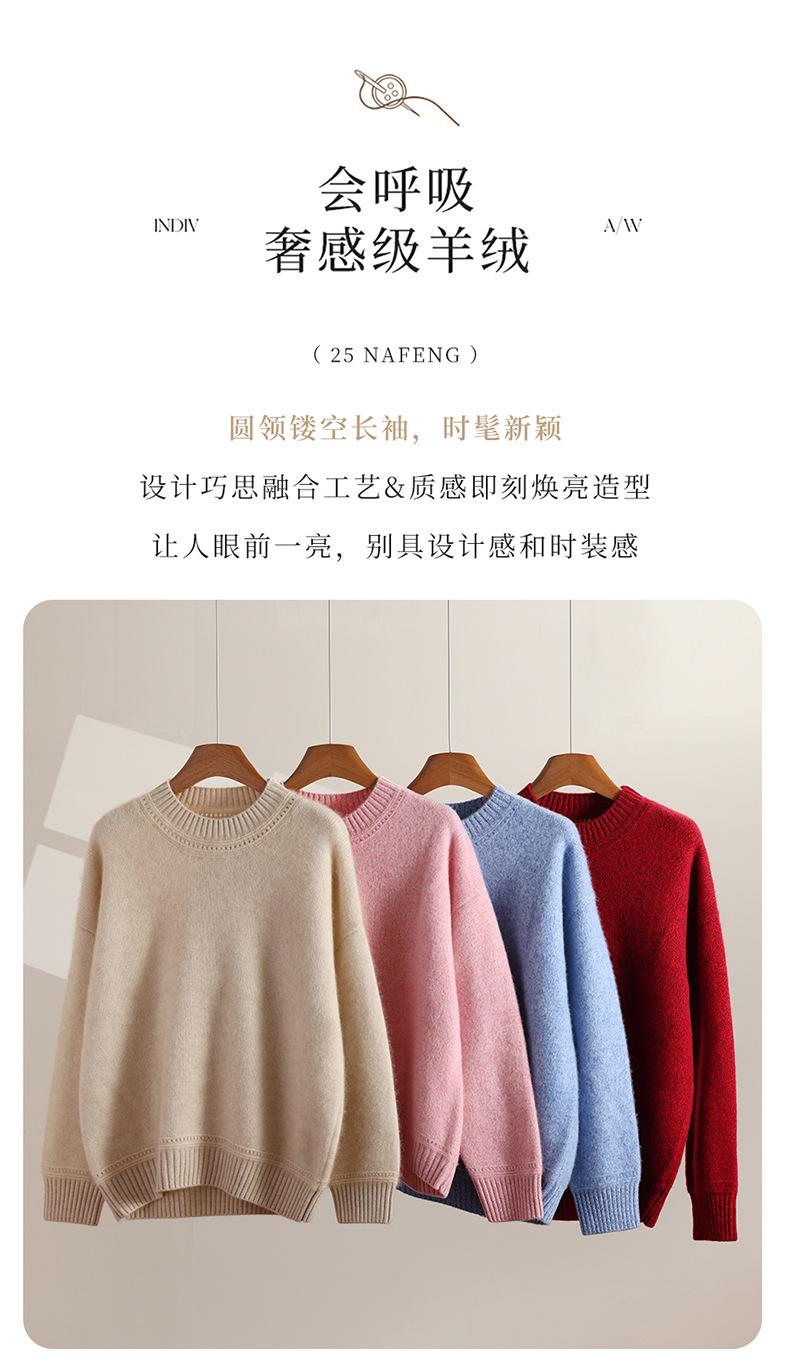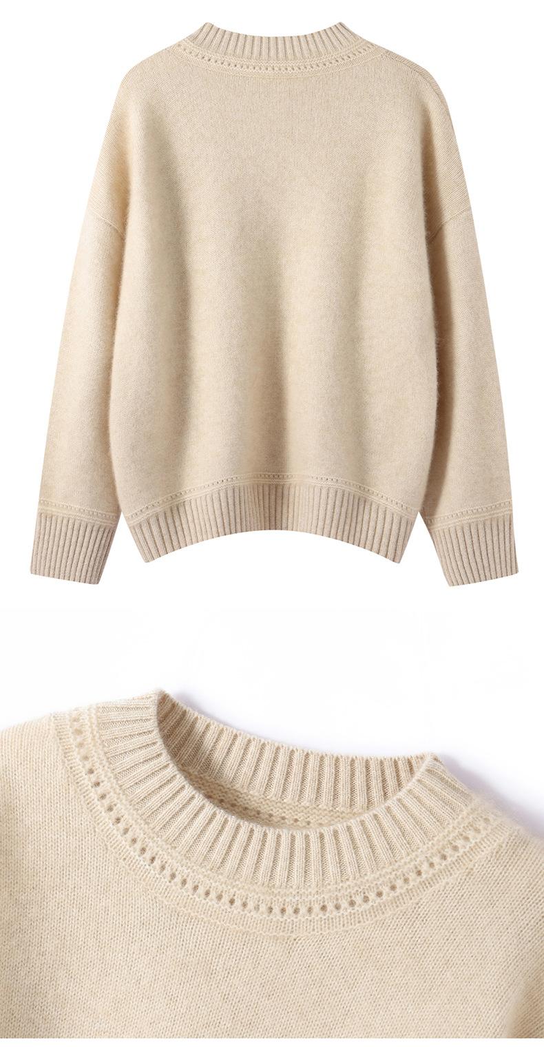 25 Otoño/Invierno Nuevo Suéter de Punto de Cachemira de Color Sólido Engrosado de Tres Hebras Capa Base Cuello Redondo Calado para Mujer Holgado Adelgazante