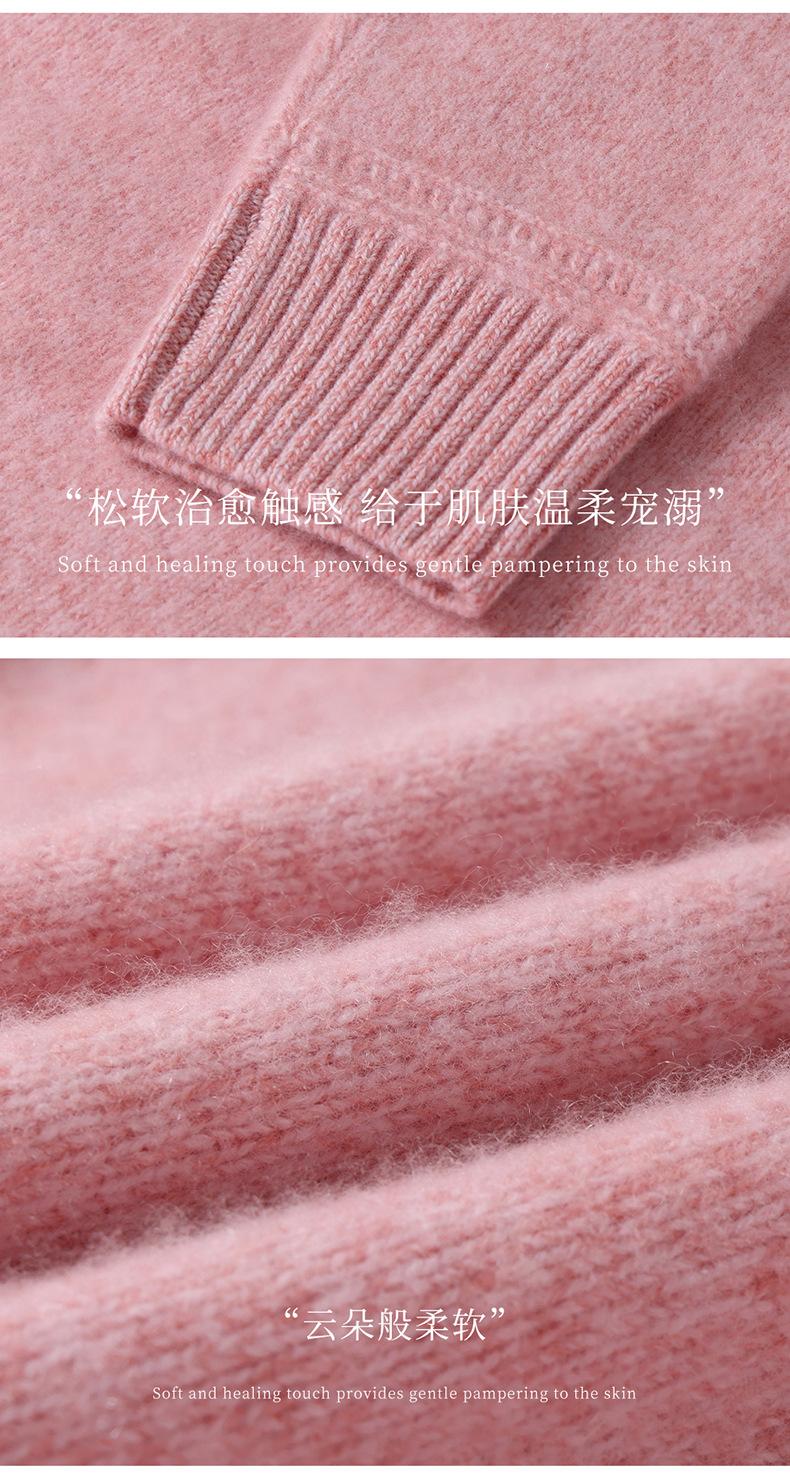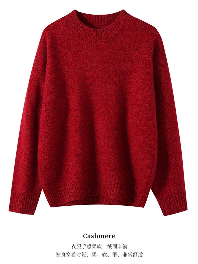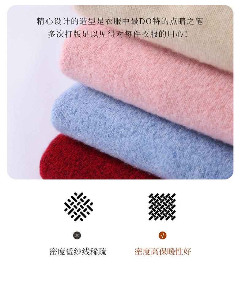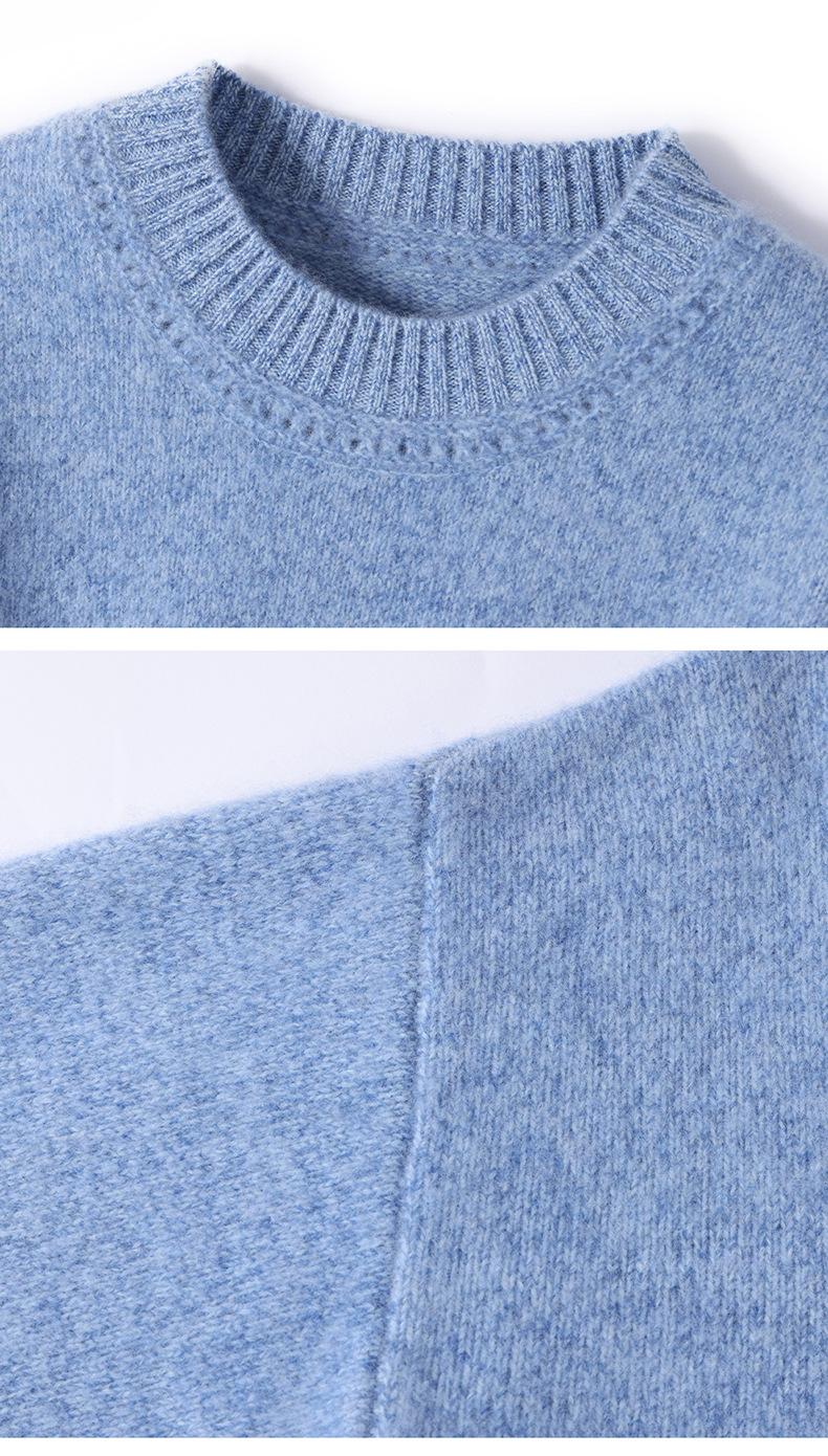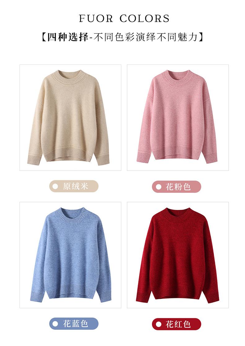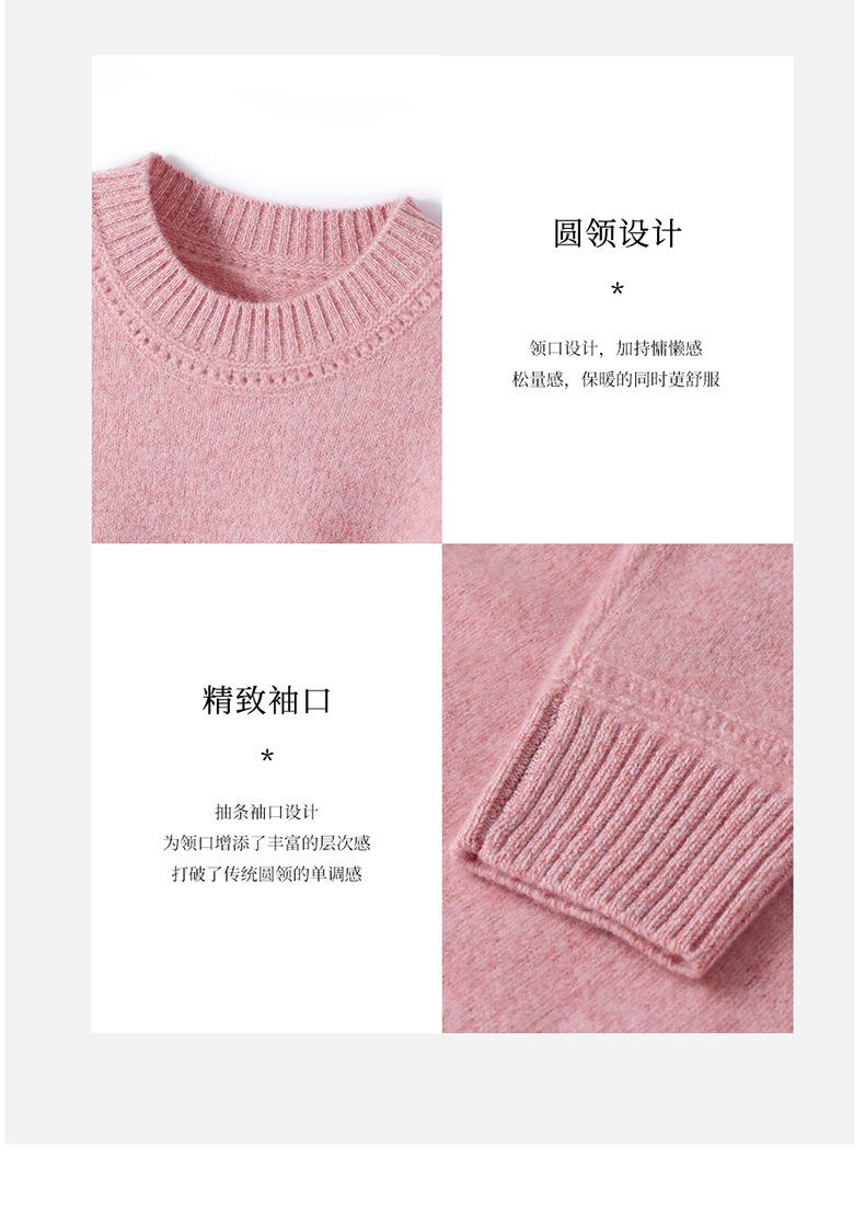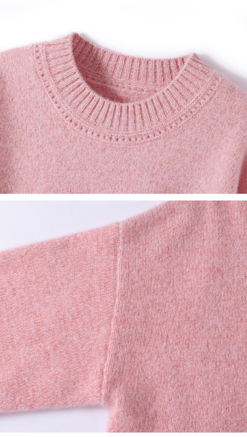 25 Otoño/Invierno Nuevo Suéter de Punto de Cachemira de Color Sólido Engrosado de Tres Hebras Capa Base Cuello Redondo Calado para Mujer Holgado Adelgazante