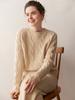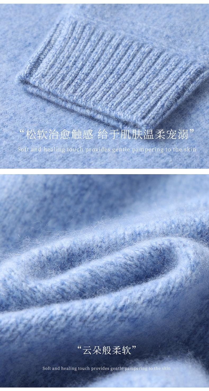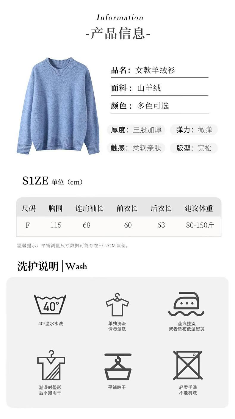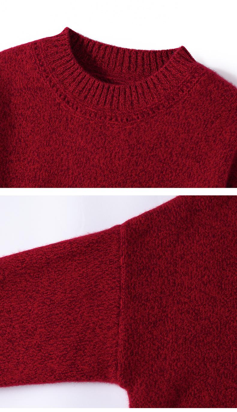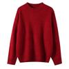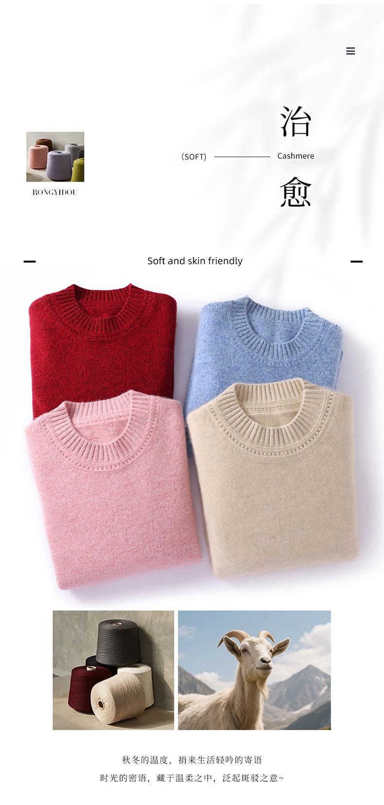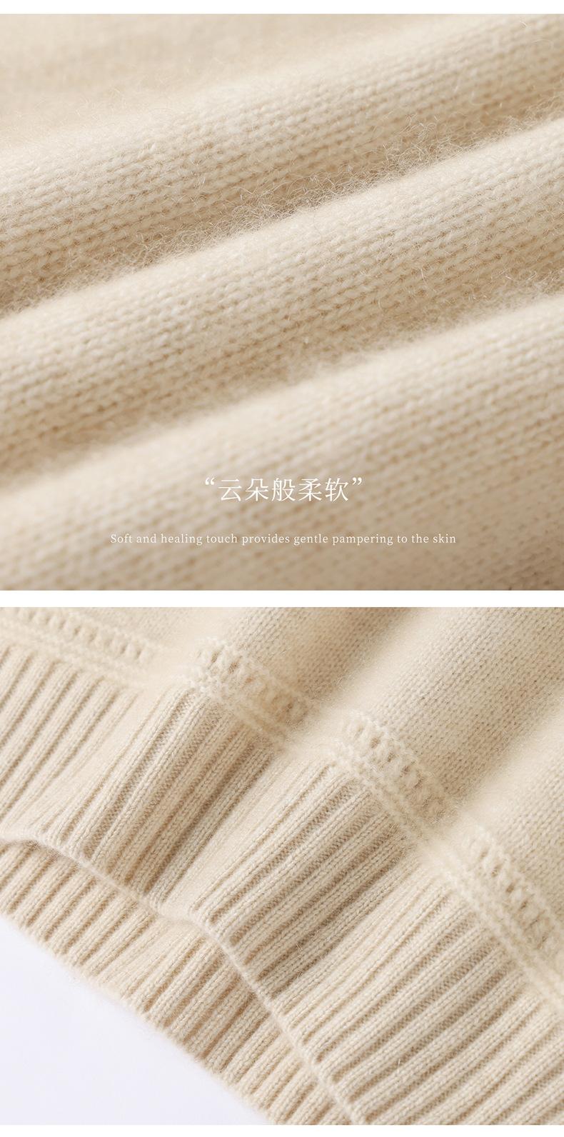 25 Otoño/Invierno Nuevo Suéter de Punto de Cachemira de Color Sólido Engrosado de Tres Hebras Capa Base Cuello Redondo Calado para Mujer Holgado Adelgazante