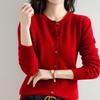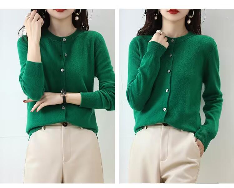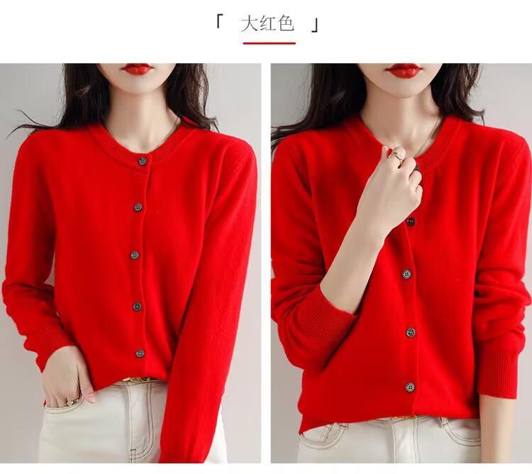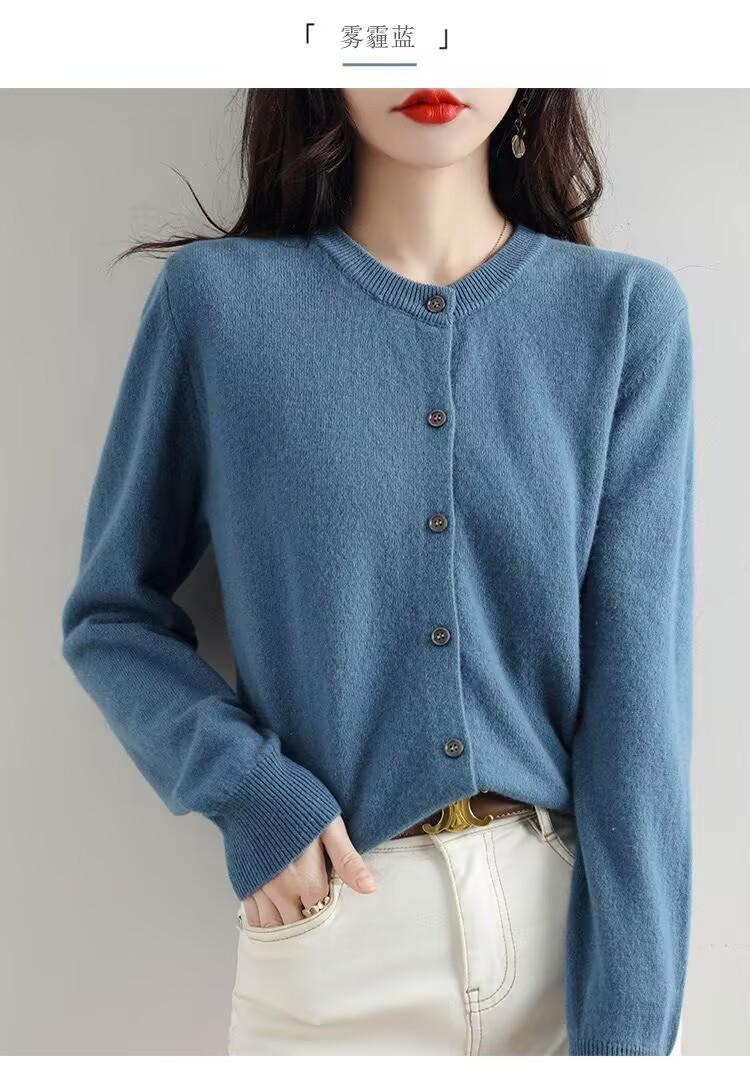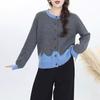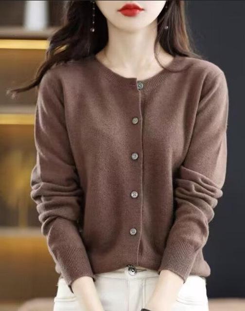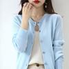 Nuevo Cárdigan de Punto de Cuello Redondo Estilo Coreano Abrigo Suéter Versátil Holgado a la Moda Top de Manga Larga para Mujer