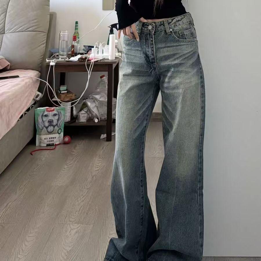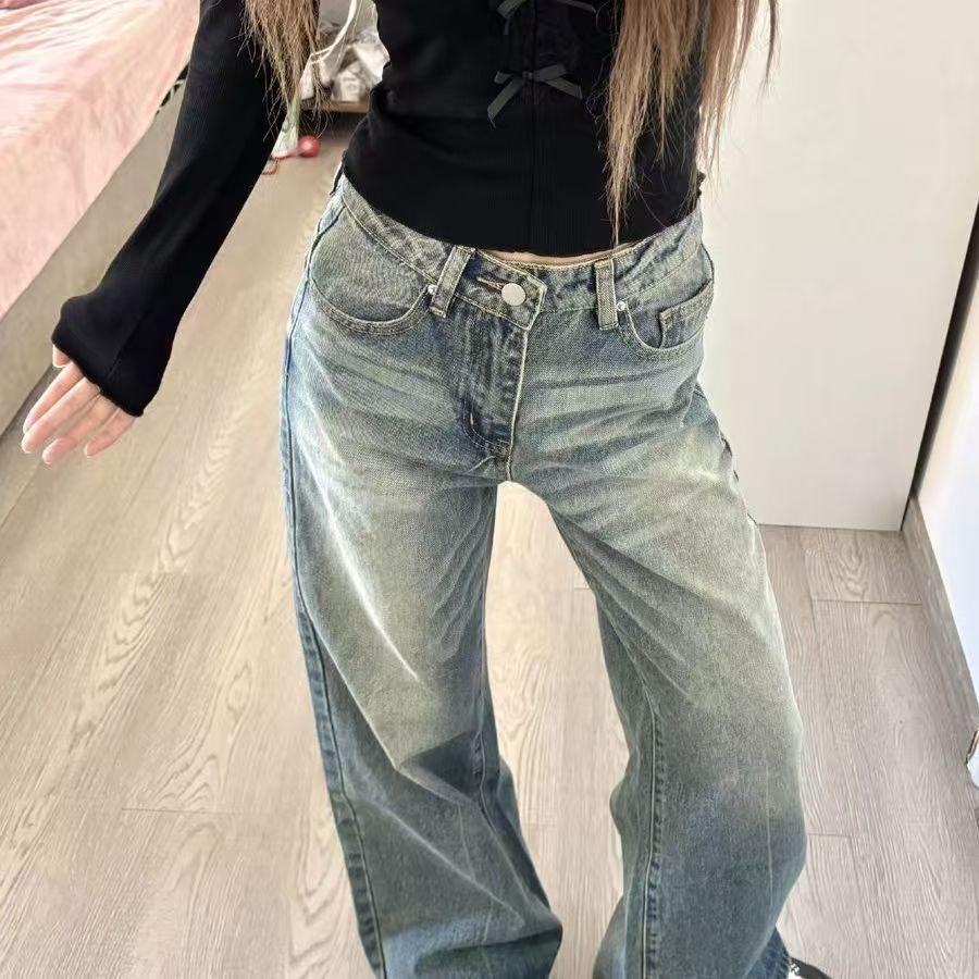 Jeans Petite American High Street Desgastados Micro Acampanados Mujer Chica Sexy Cintura Baja Sueltos Adelgazantes Versátiles Pierna Recta Pantalones Largos