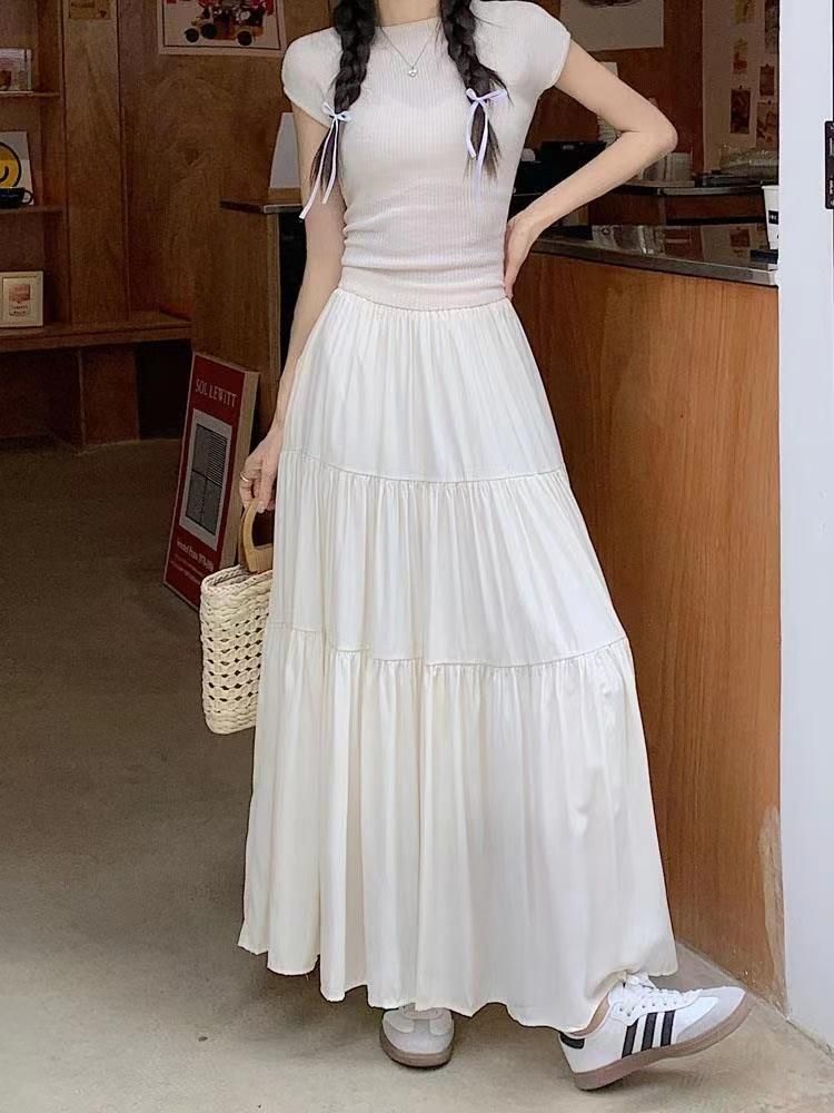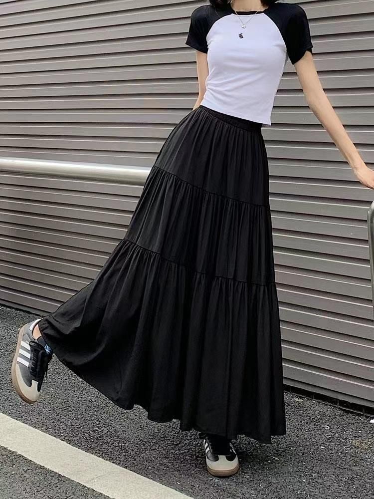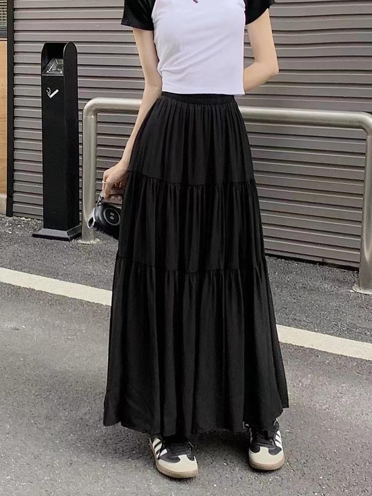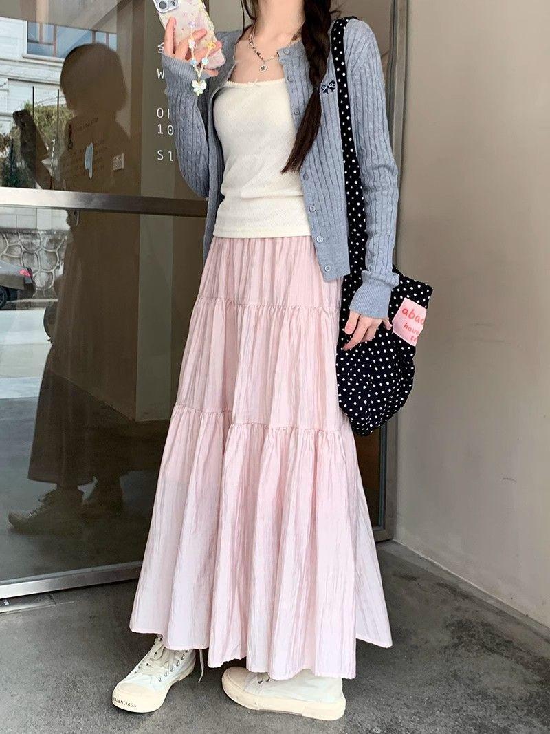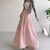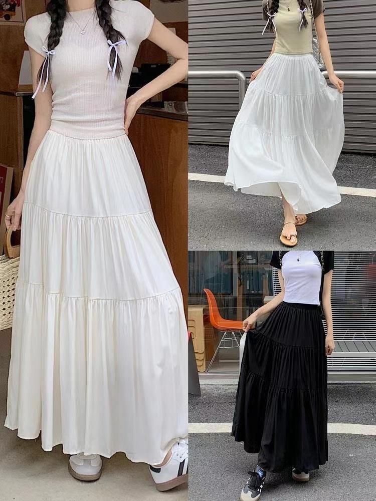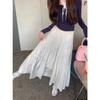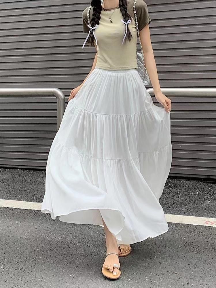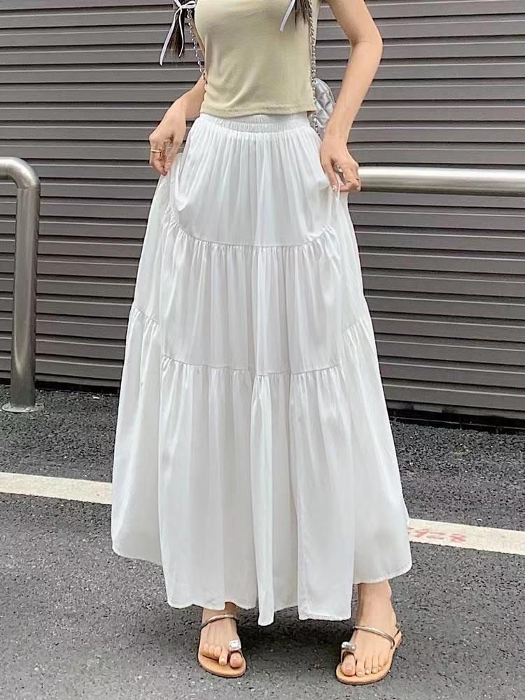 Falda Midi Primavera y Verano para Mujer Nueva Blanca Combinable Color Sólido Falda de Pastel Cintura Alta Adelgazante Falda Grande de Vuelo Línea A Falda Casual
