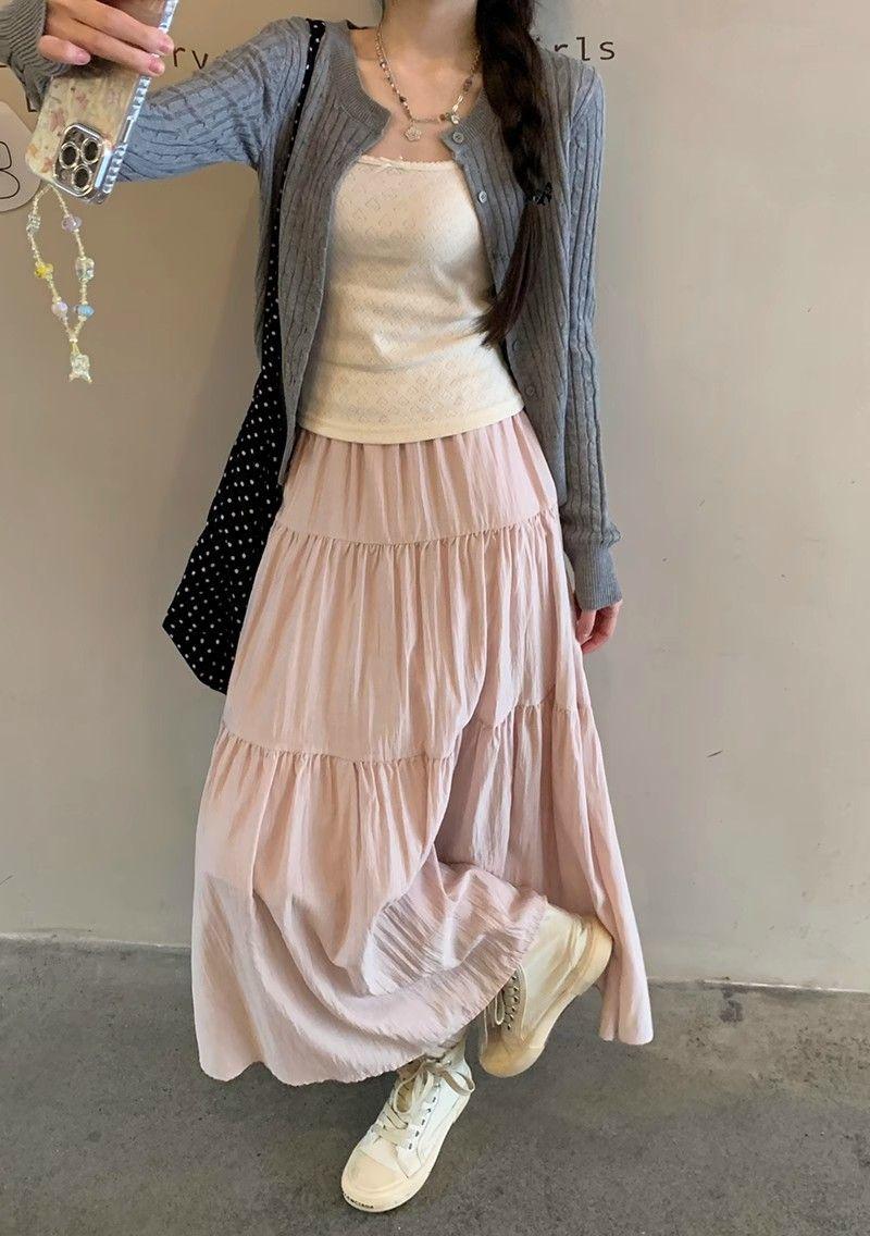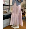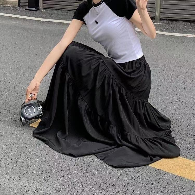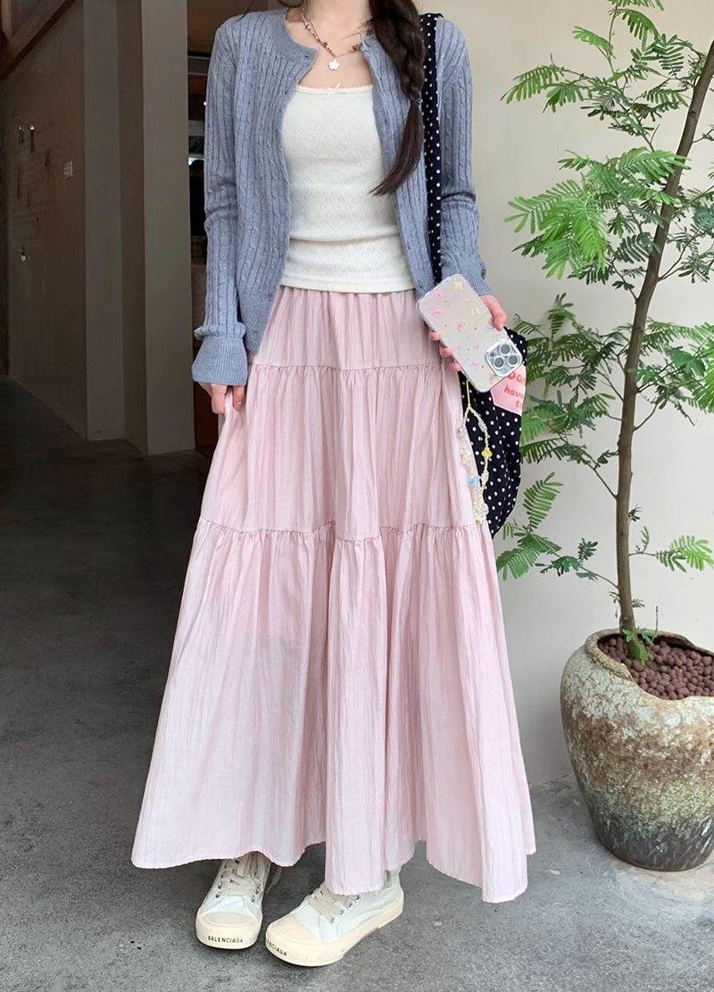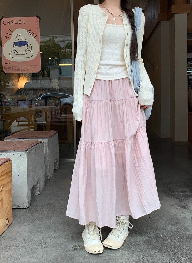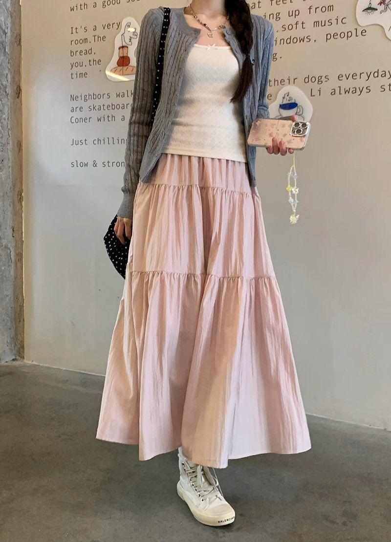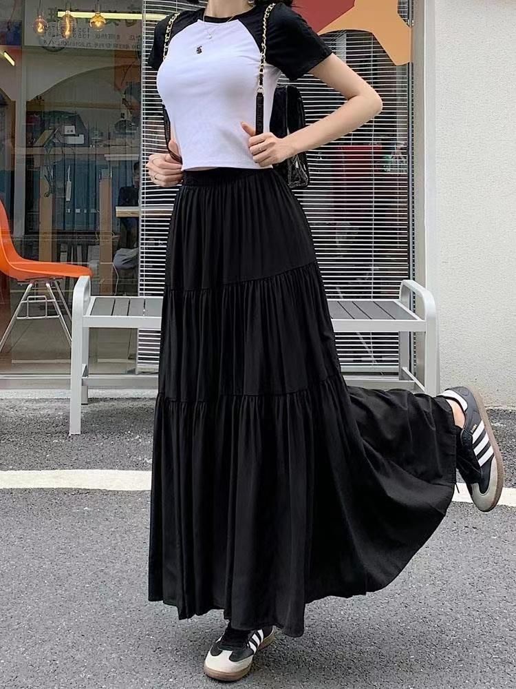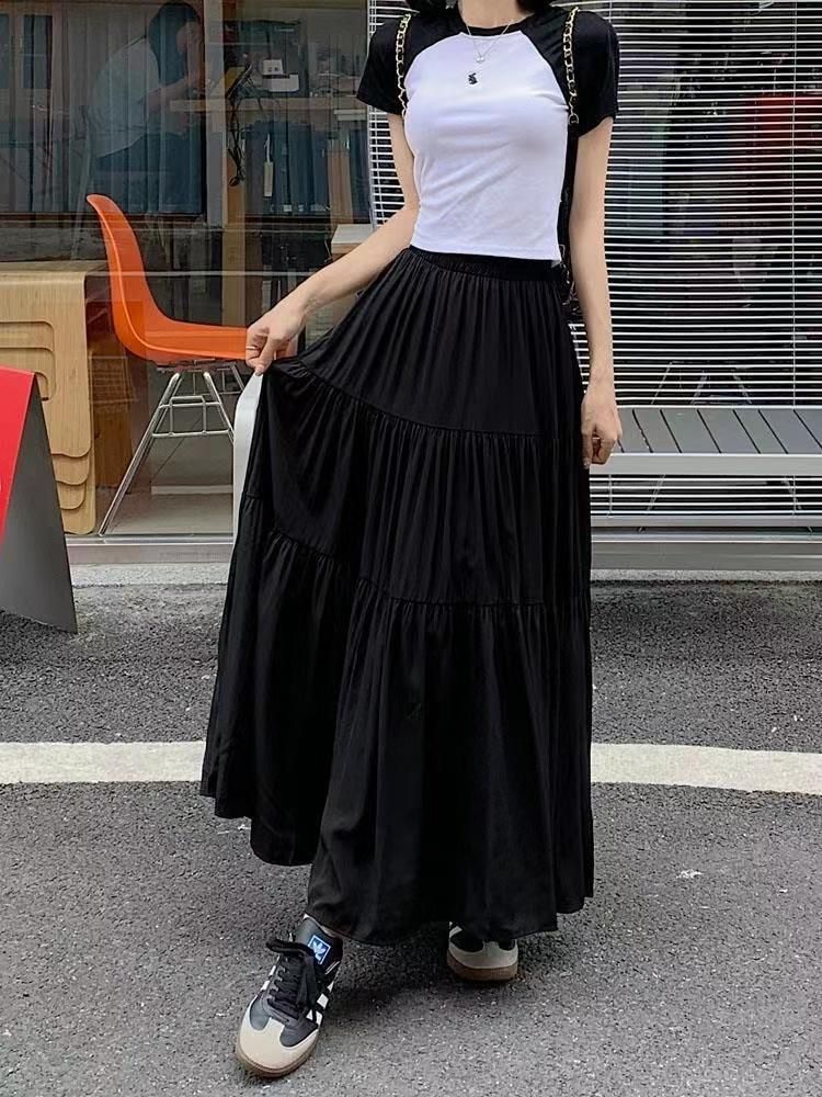 Falda Midi Primavera y Verano para Mujer Nueva Blanca Combinable Color Sólido Falda de Pastel Cintura Alta Adelgazante Falda Grande de Vuelo Línea A Falda Casual