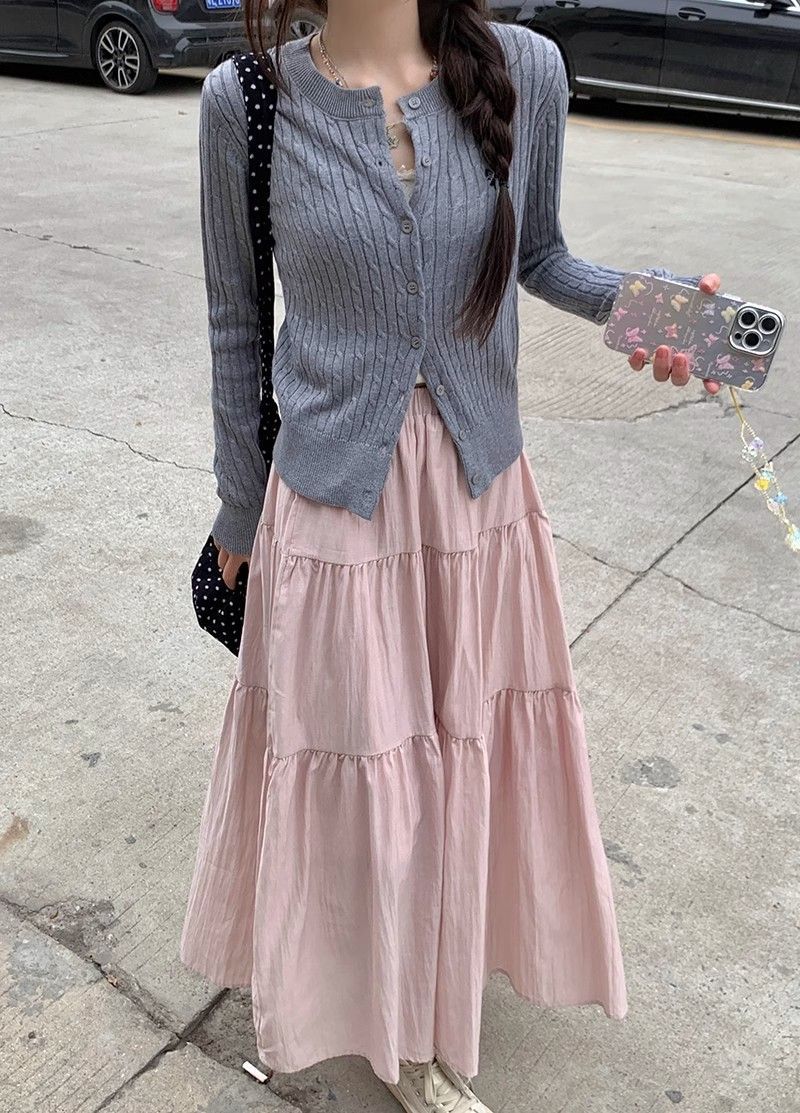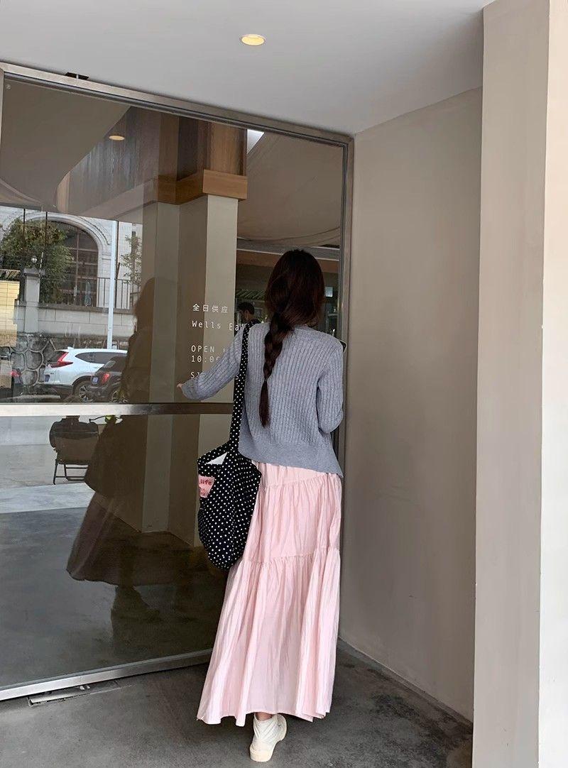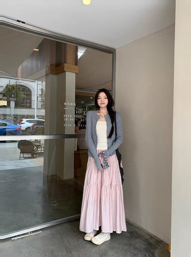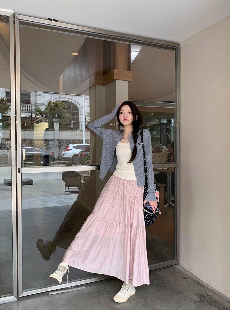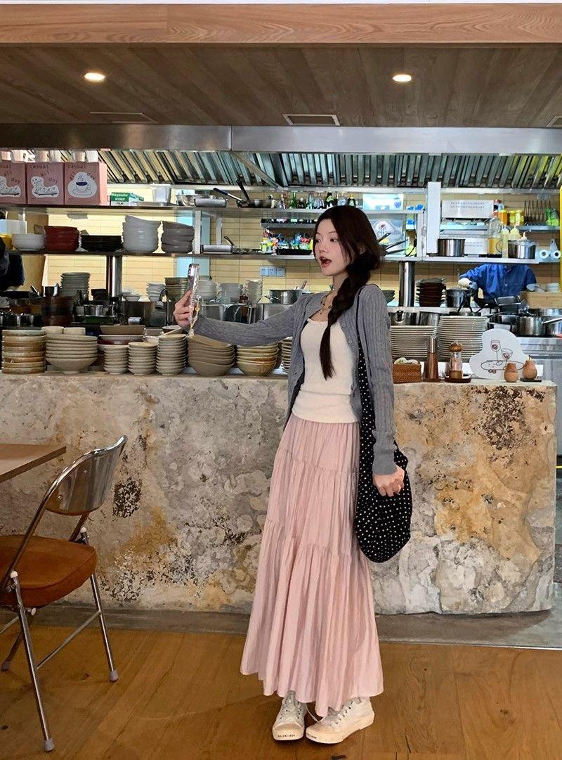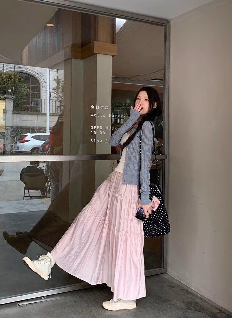 Falda Midi Primavera y Verano para Mujer Nueva Blanca Combinable Color Sólido Falda de Pastel Cintura Alta Adelgazante Falda Grande de Vuelo Línea A Falda Casual