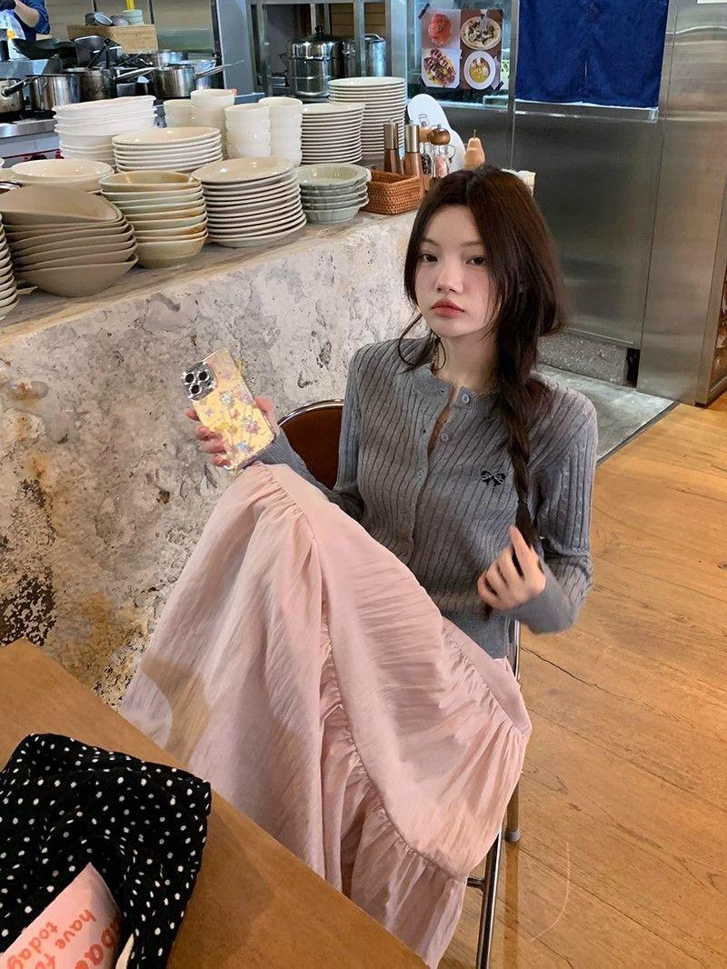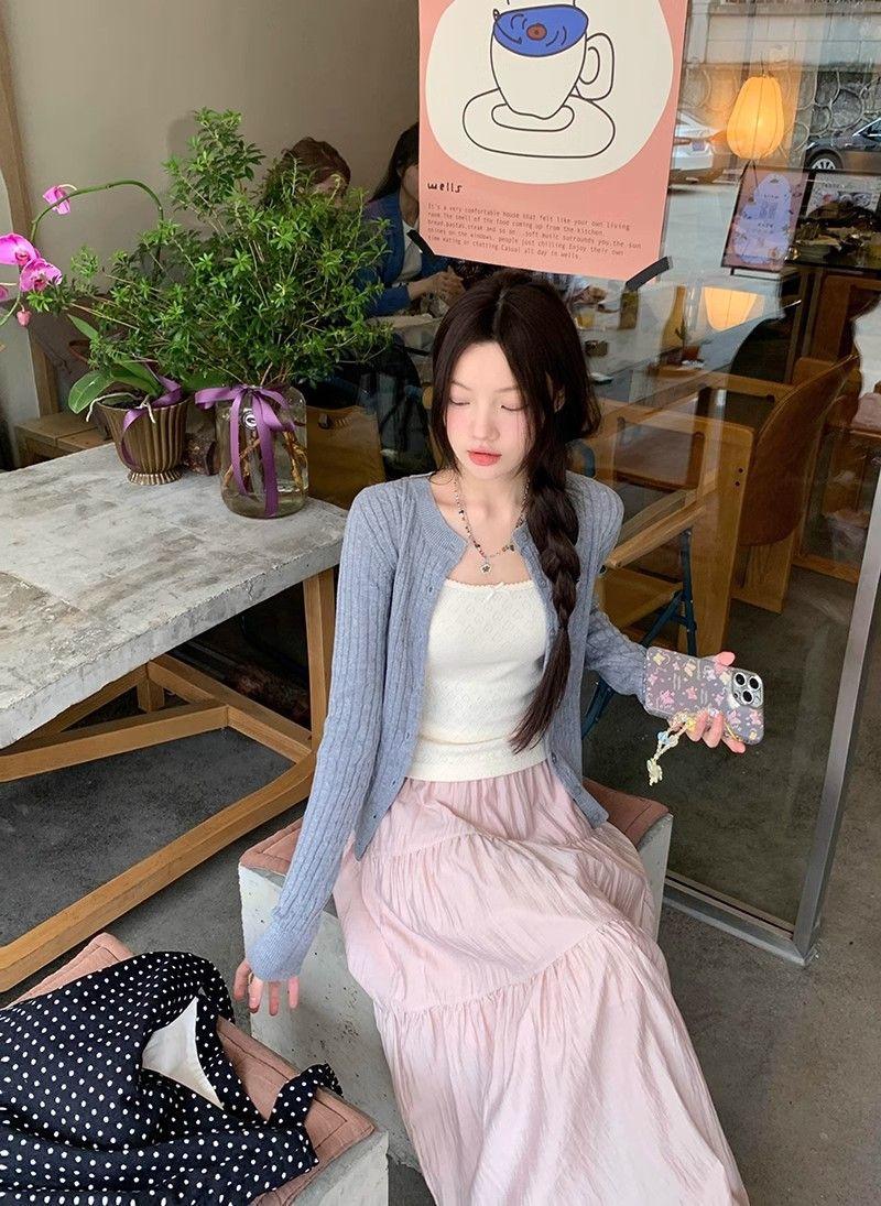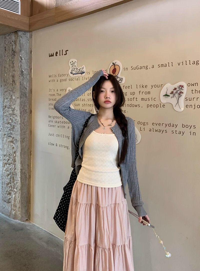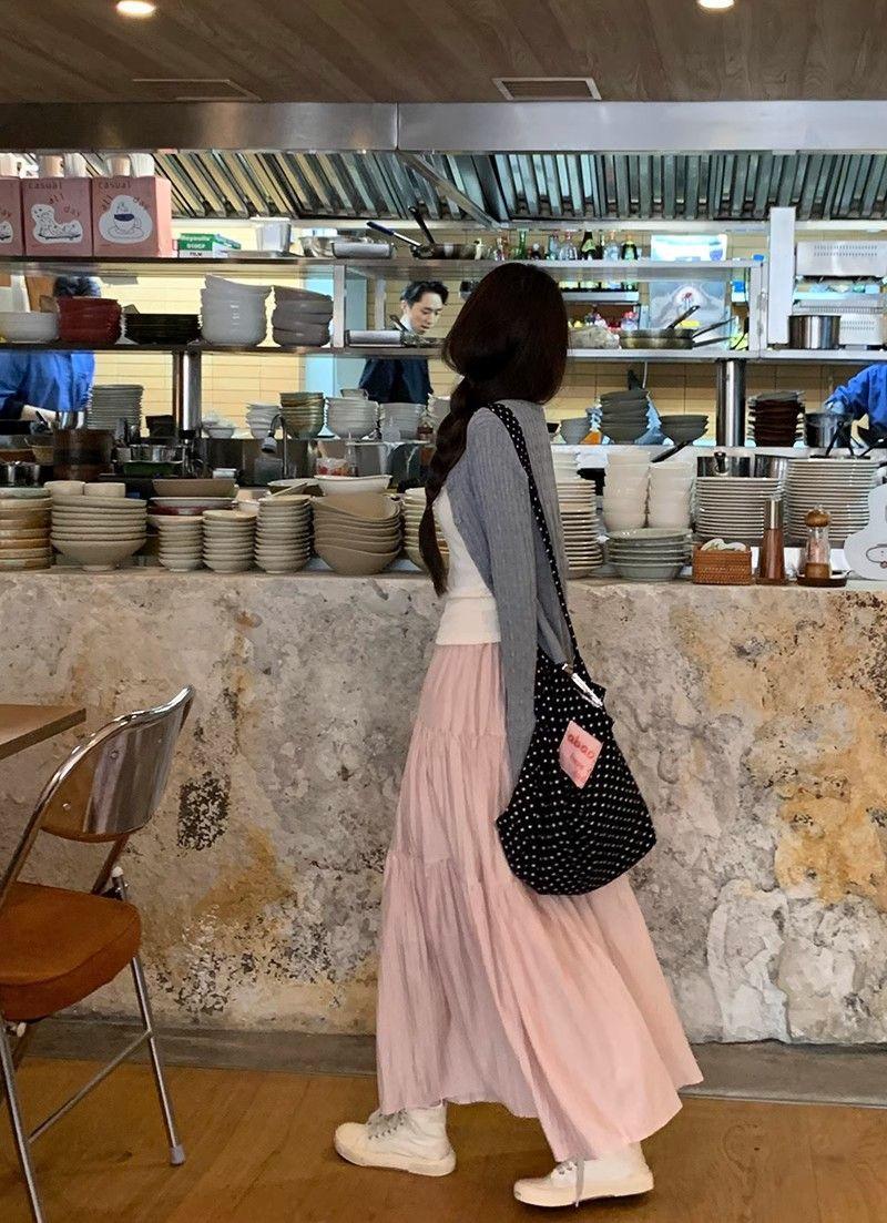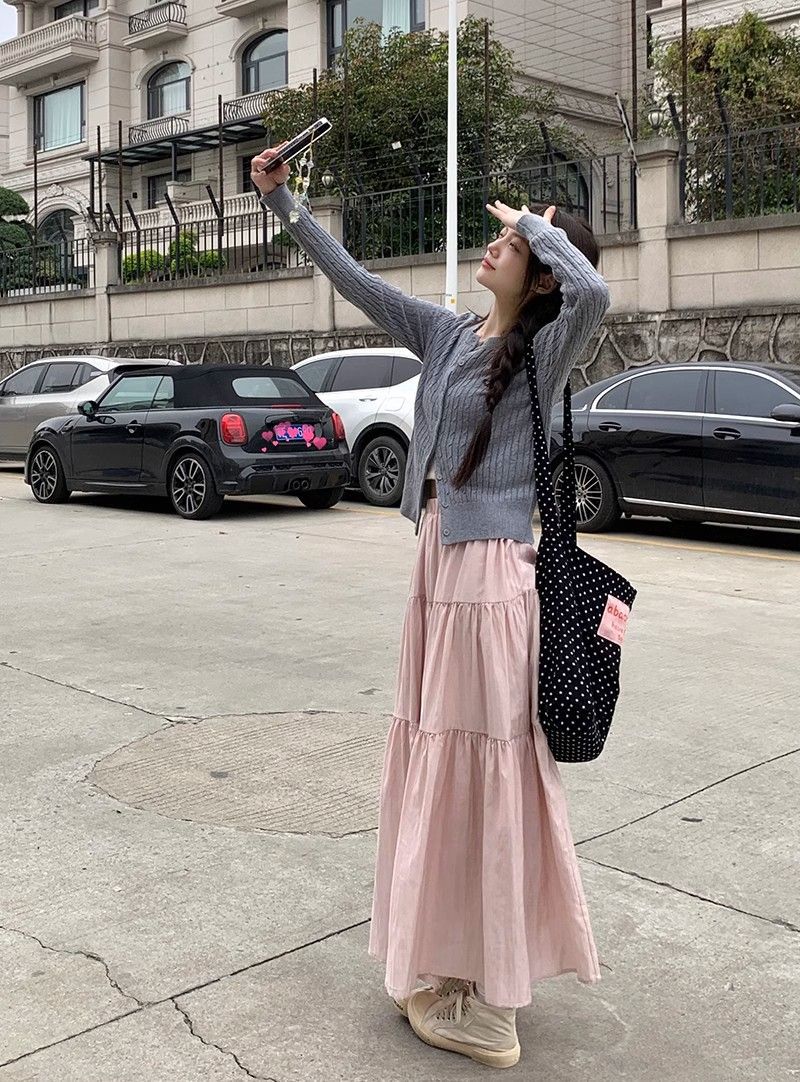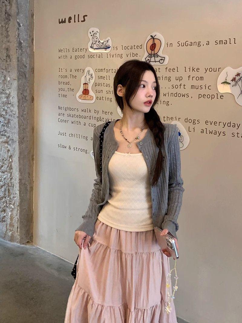 Falda Midi Primavera y Verano para Mujer Nueva Blanca Combinable Color Sólido Falda de Pastel Cintura Alta Adelgazante Falda Grande de Vuelo Línea A Falda Casual