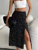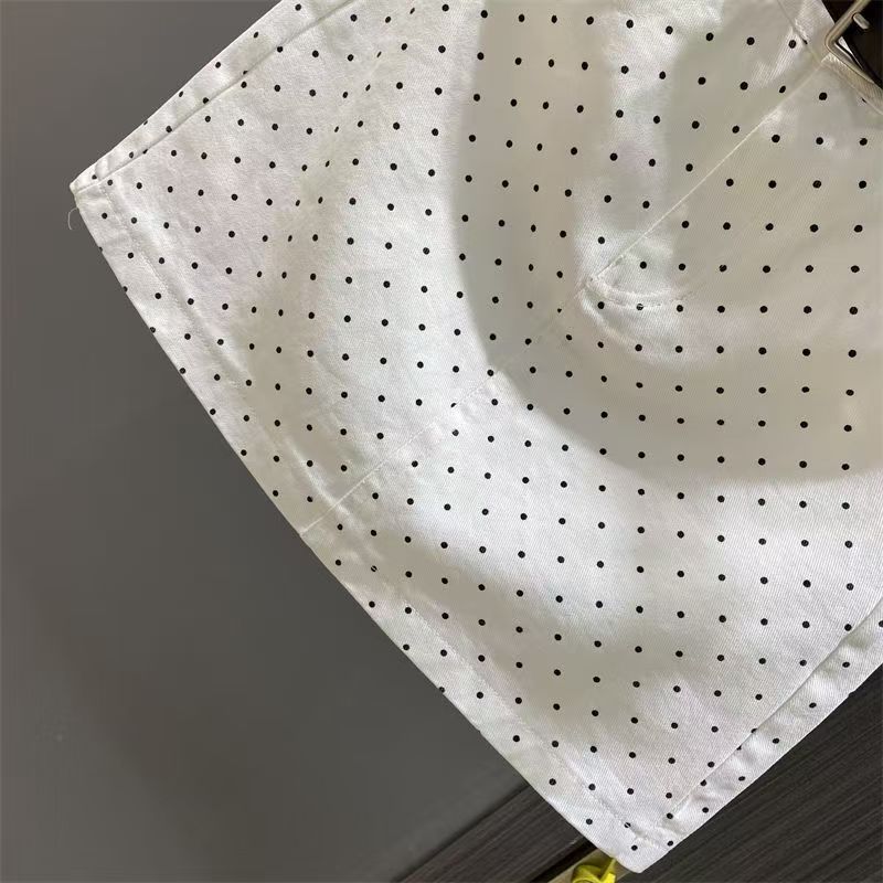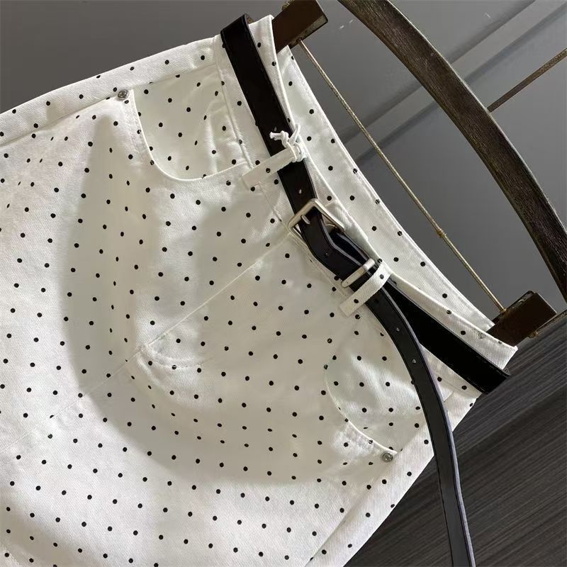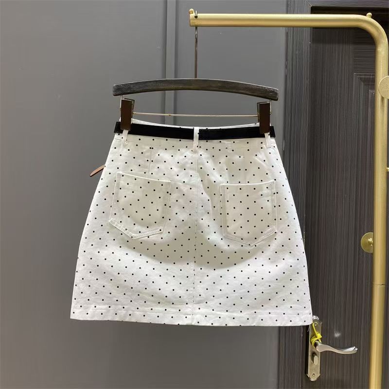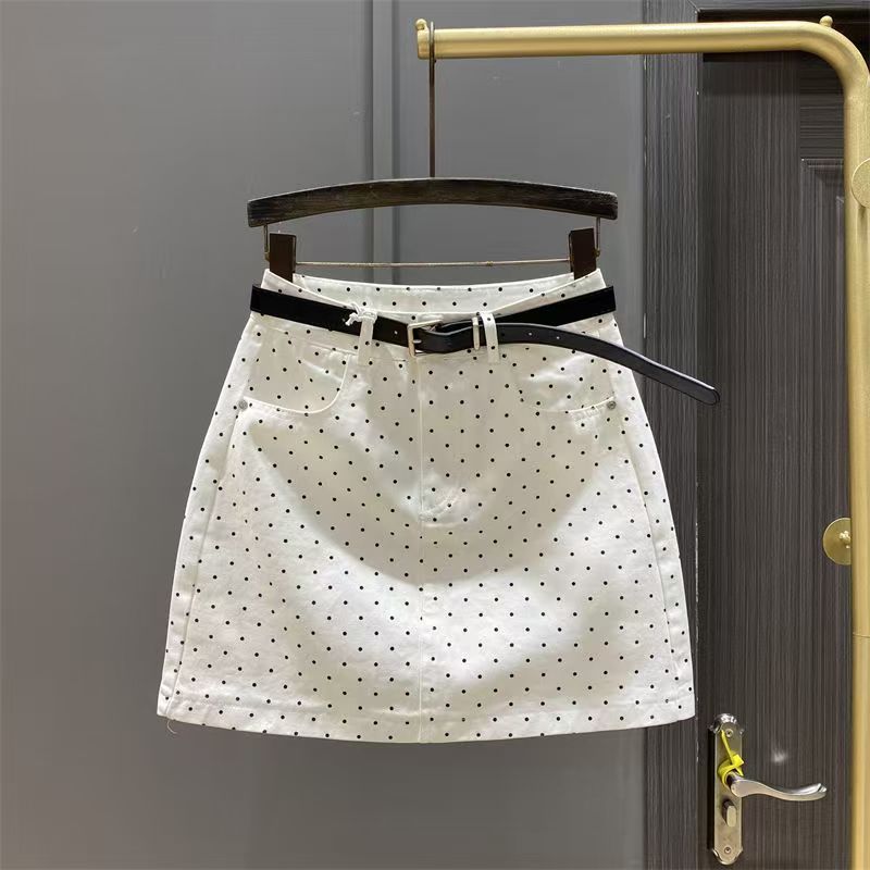 Falda midi blanca de lunares para mujer verano 2025 nueva falda línea A de cintura alta petite adelgazante temperamento ceñida a las caderas falda corta