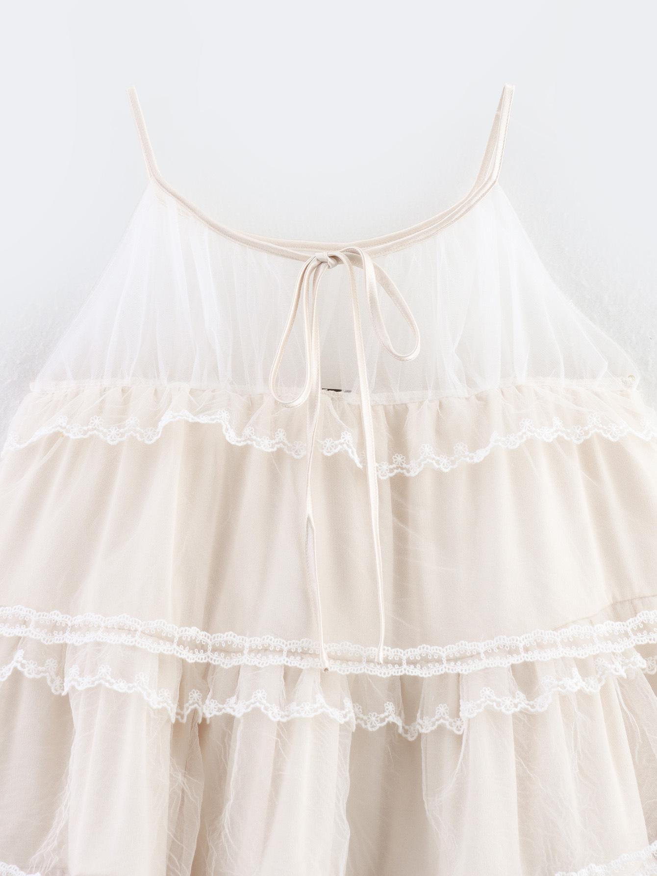 Ropa de mujer transfronteriza al por mayor Vestido francés de malla con tirantes Vestido de princesa abullonado de estilo vacacional dulce y suave para mujer