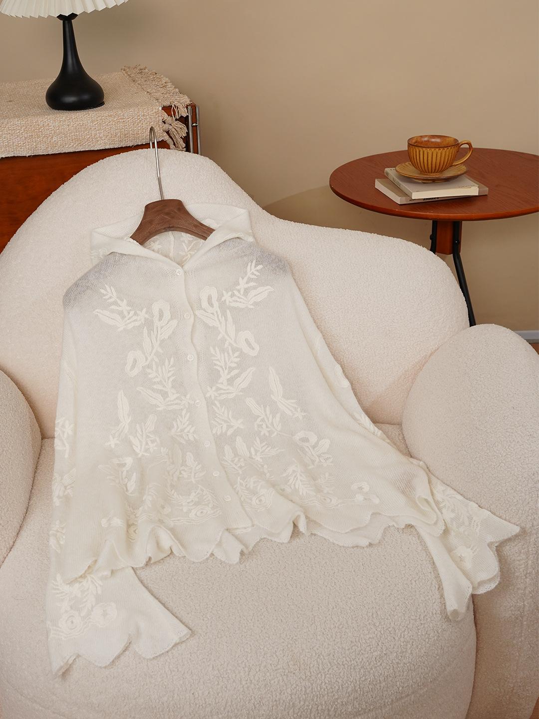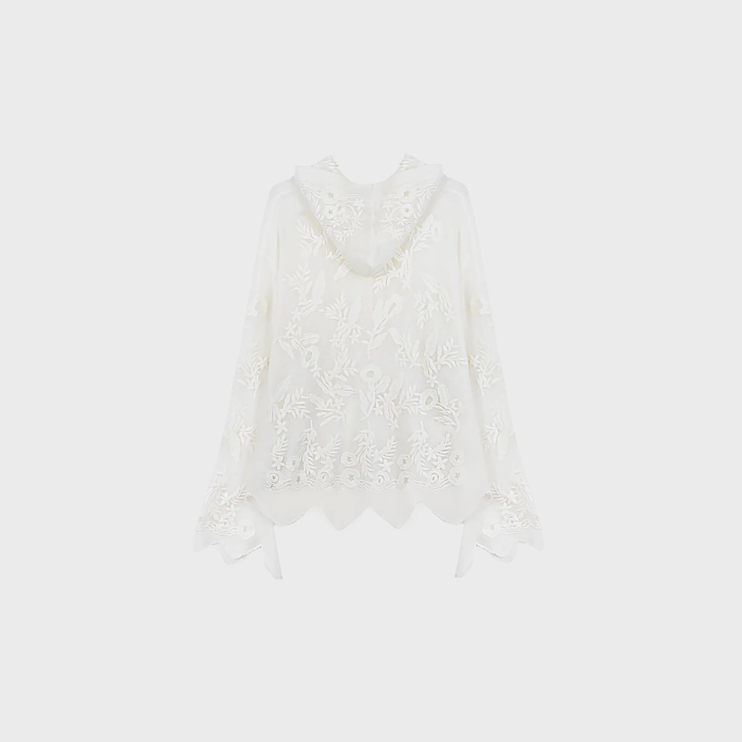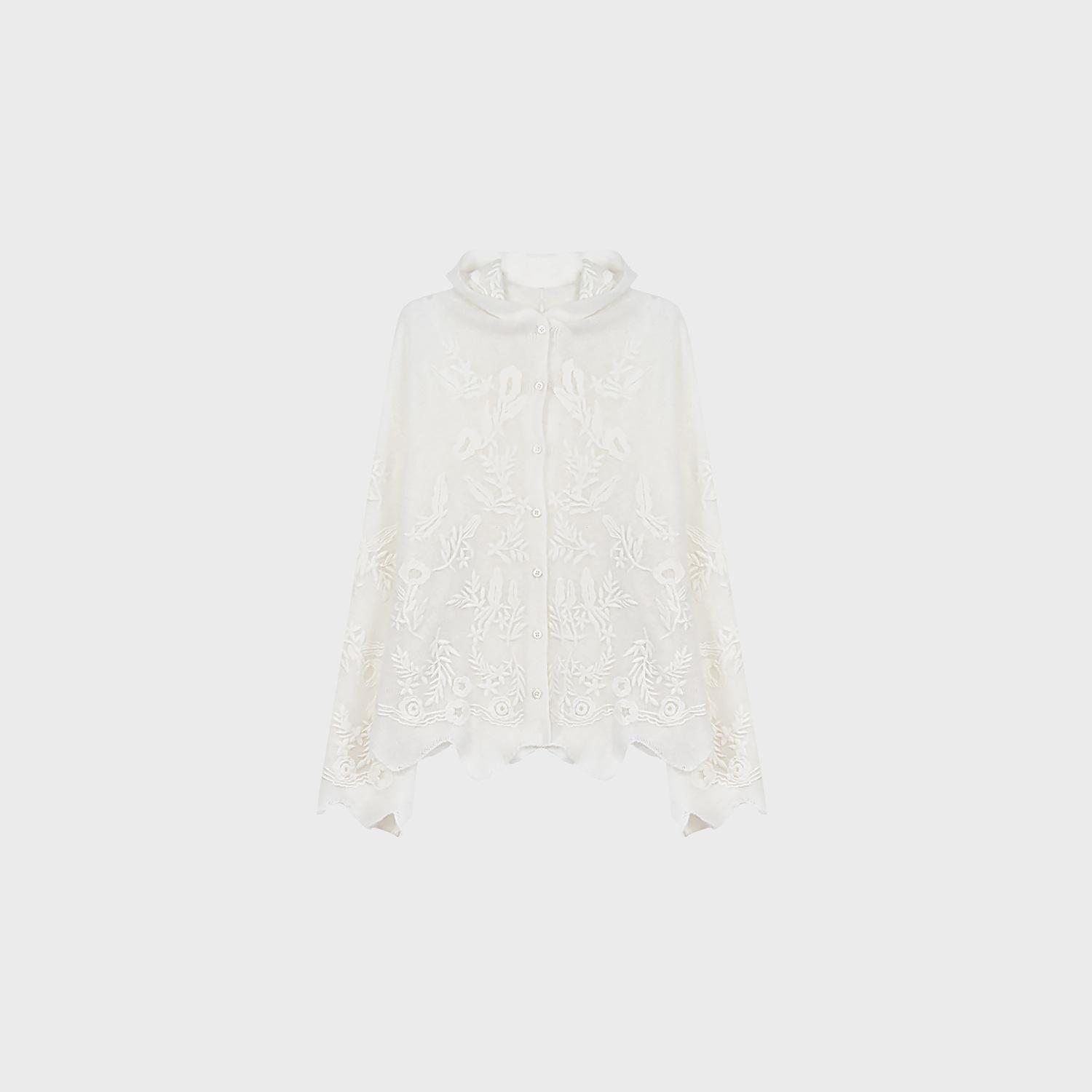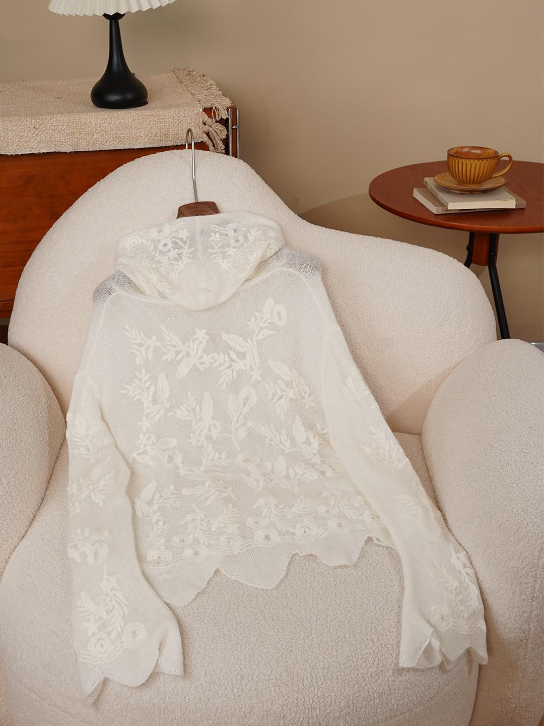 2025 Nuevo Día de Luz de Luna Seda Cachemira Bordado Floral Manga Campana Sudor de Lana para Mujer con Capucha 3762