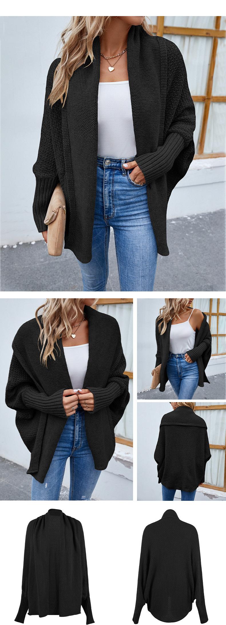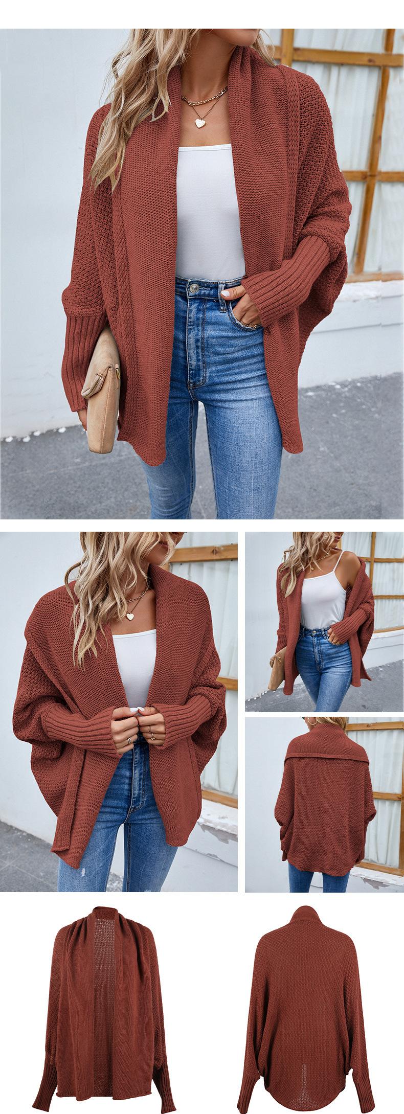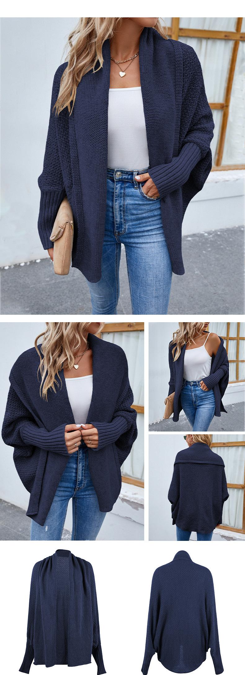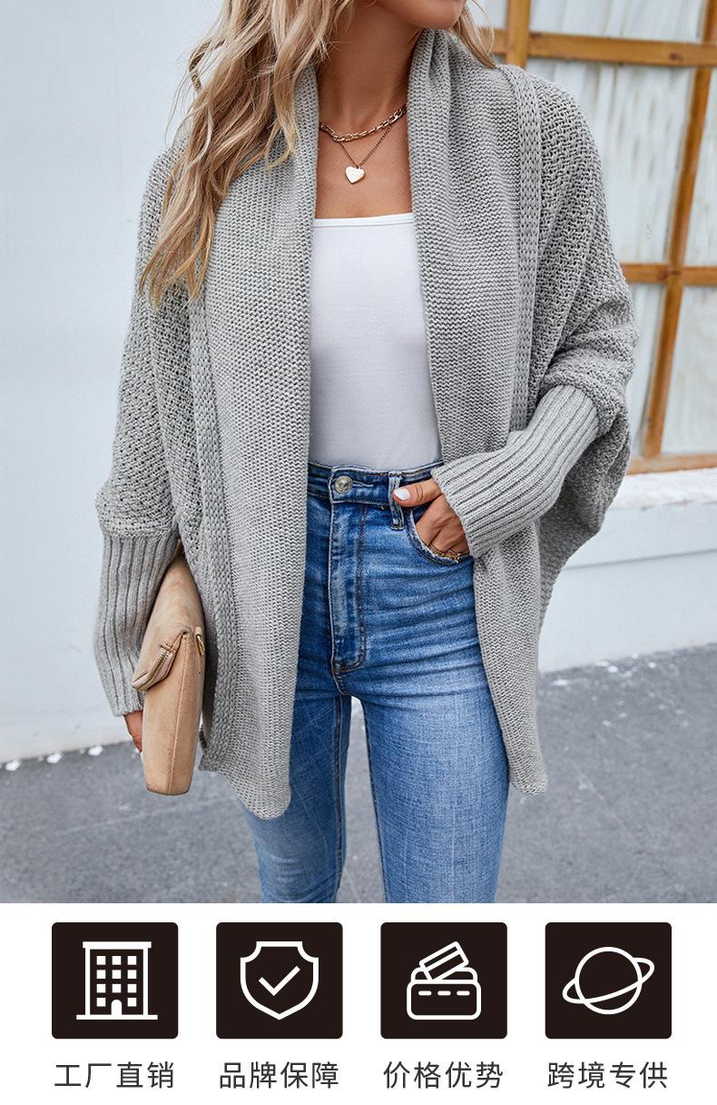 Suéter de Punto para Mujer de Estilo Nuevo Otoño/Invierno 2025 de Comercio Exterior, Color Sólido, Manga Murciélago, Suéter Europeo y Americano, Cárdigan, Abrigo para Mujer