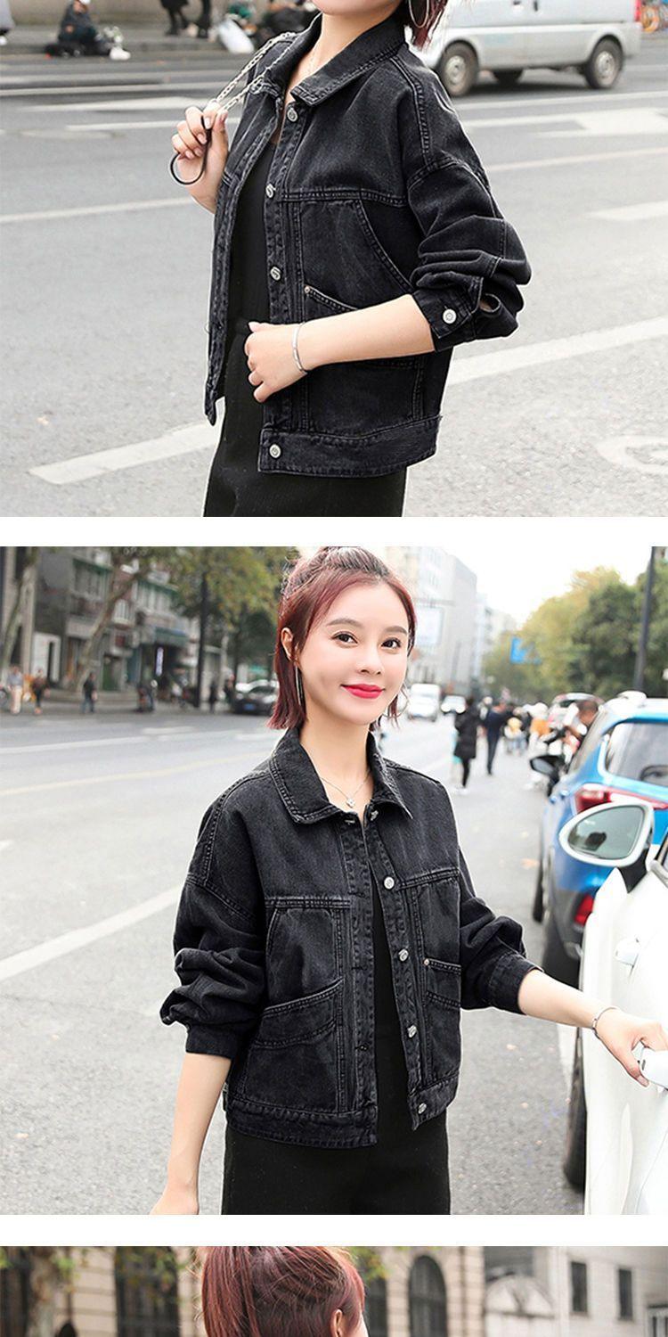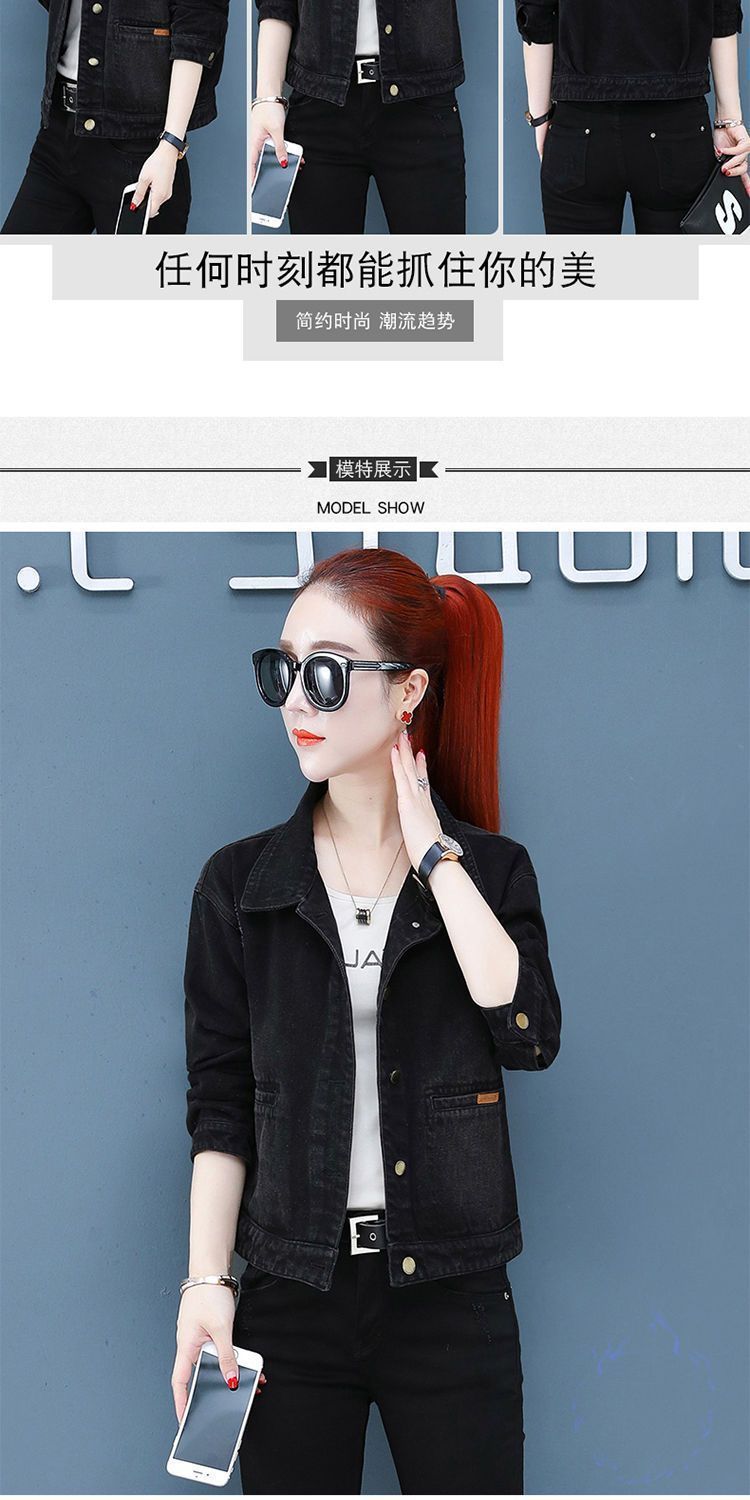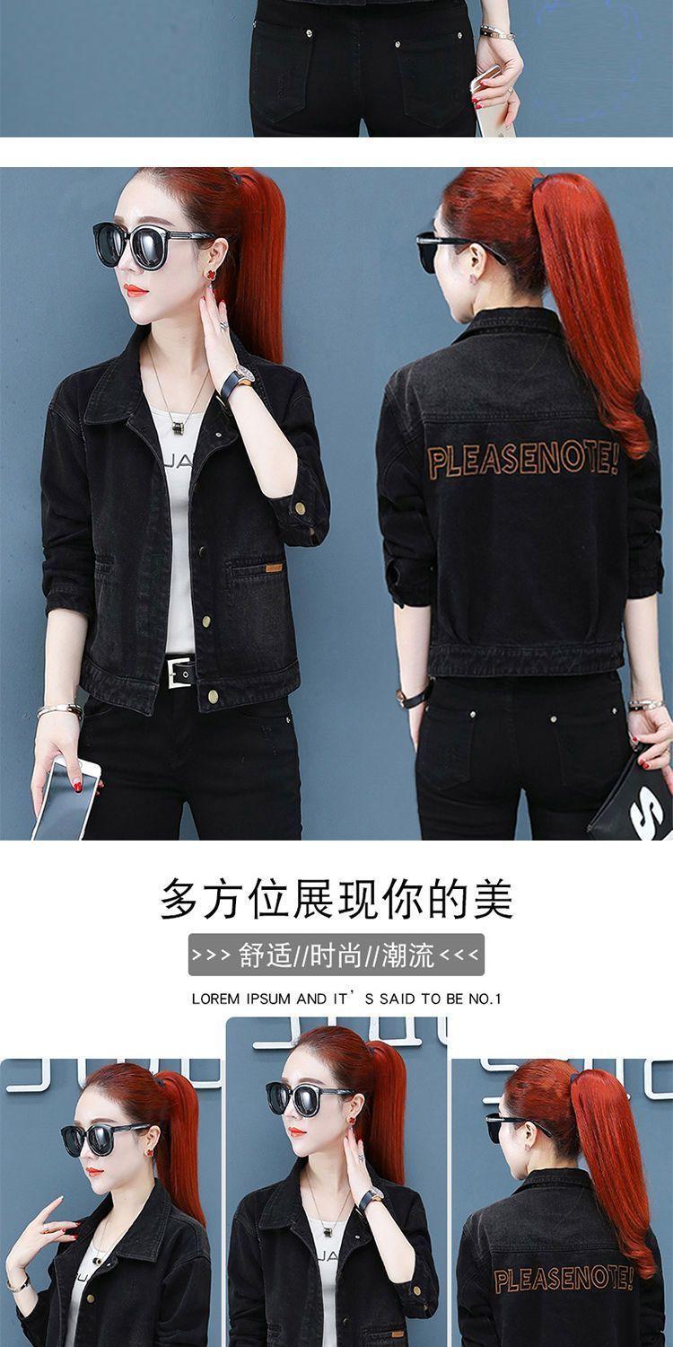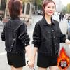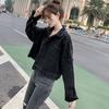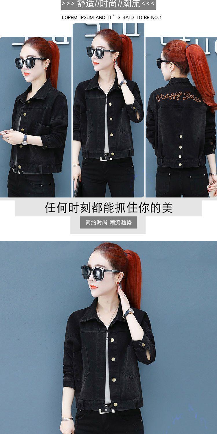 Talla petite estilo otoñal negro talla grande top chaqueta de mezclilla mujer corta mezclilla otoño ropa exterior mujer primavera y otoño versátil