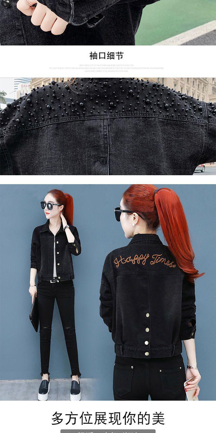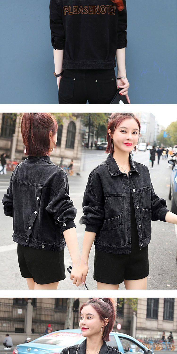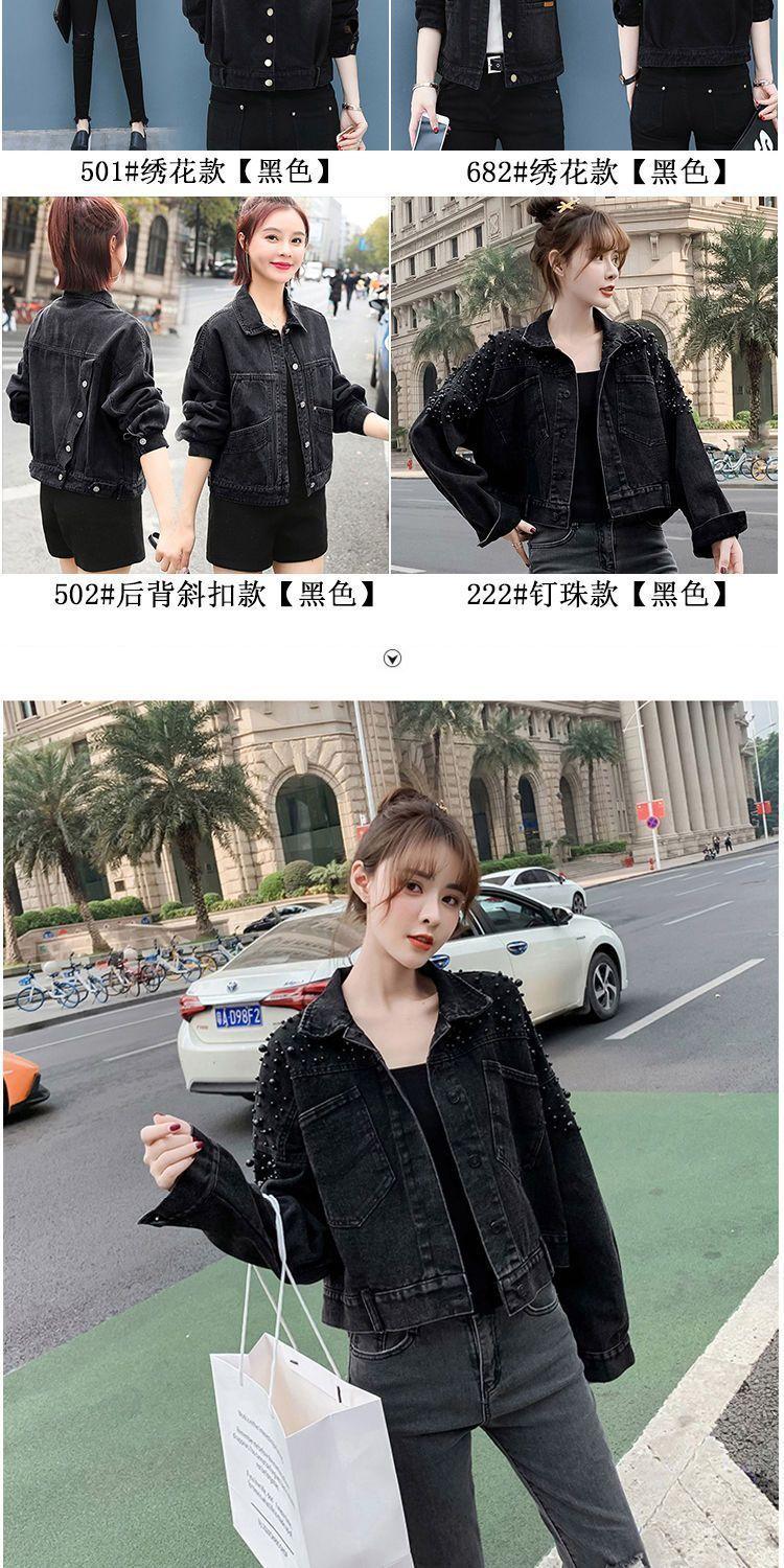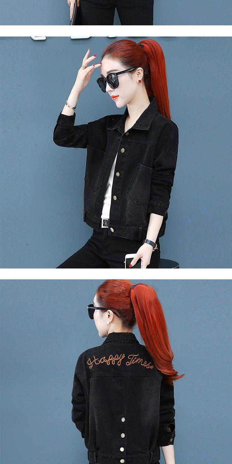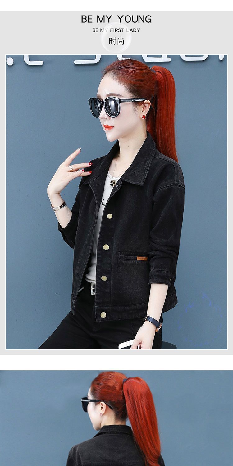 Talla petite estilo otoñal negro talla grande top chaqueta de mezclilla mujer corta mezclilla otoño ropa exterior mujer primavera y otoño versátil