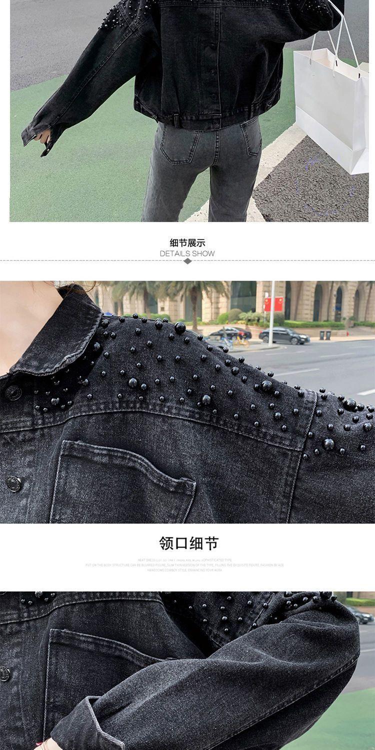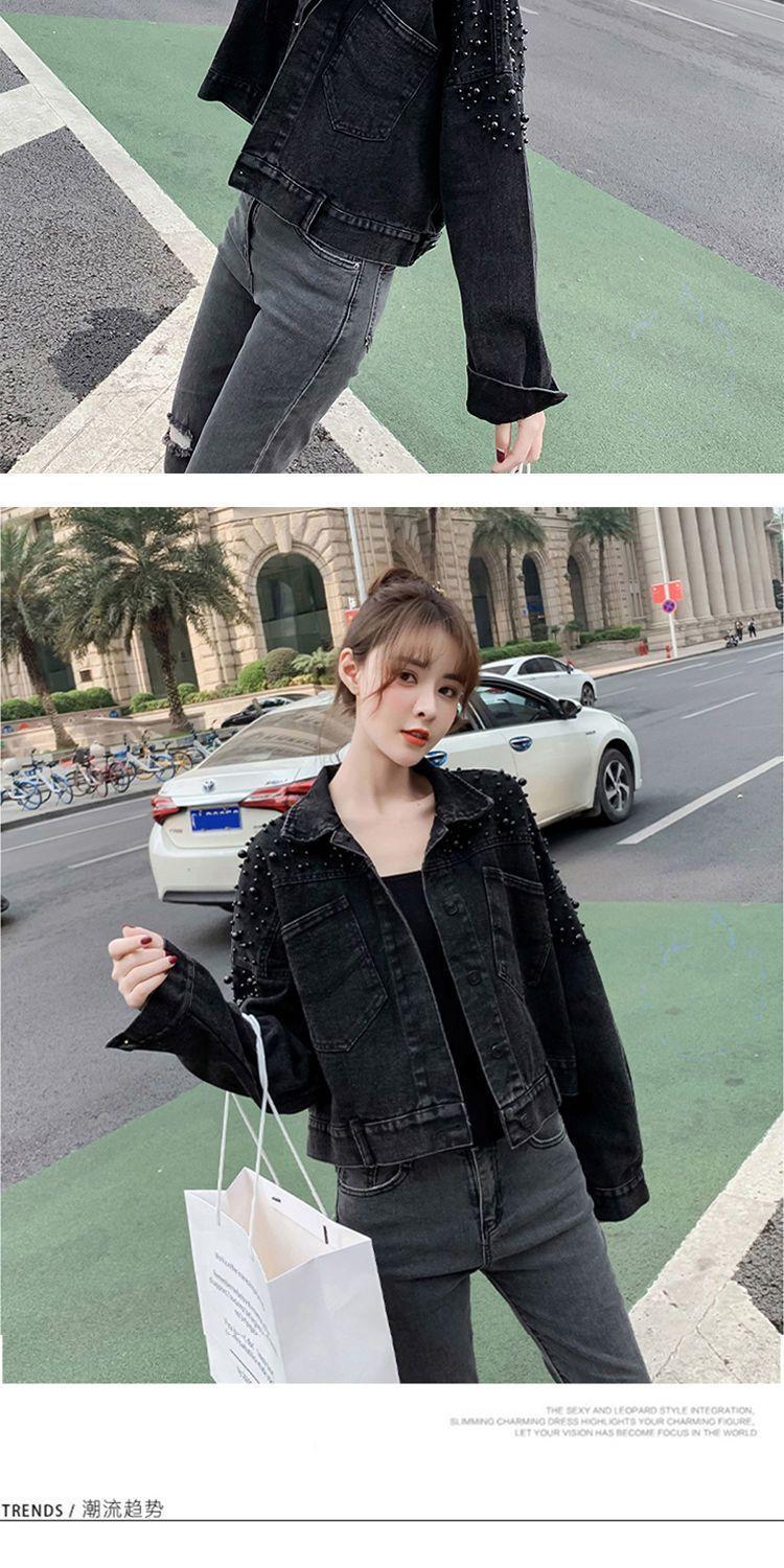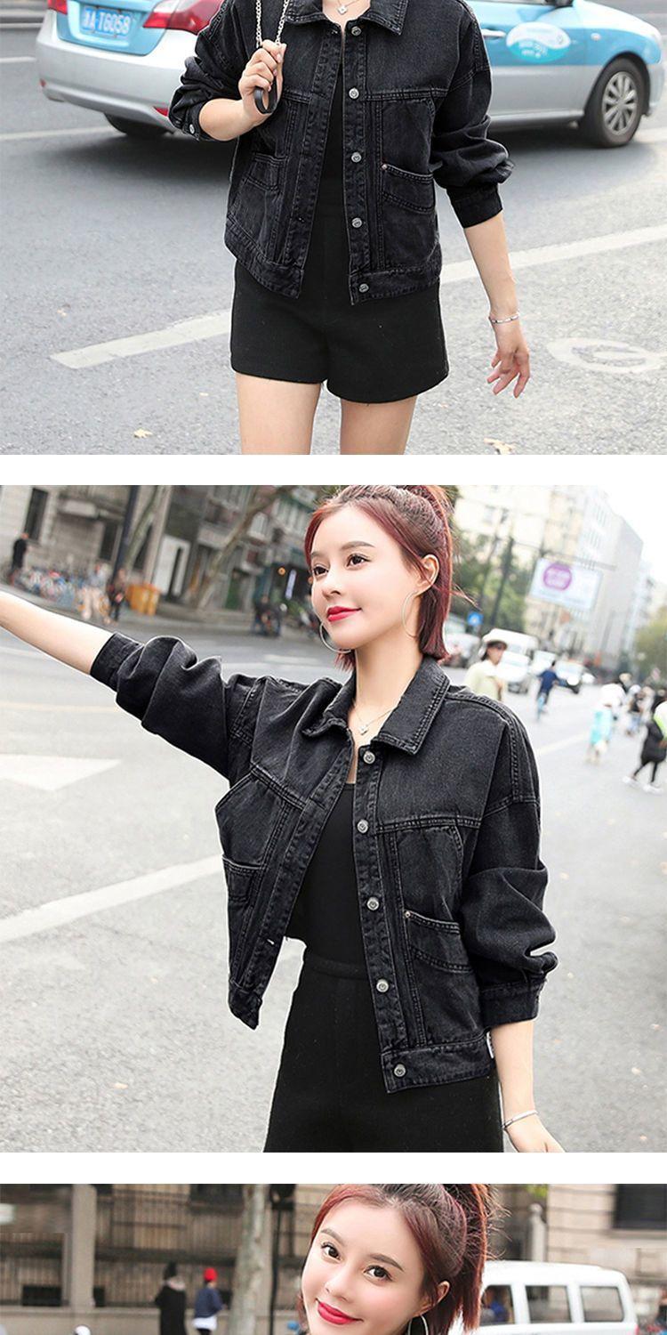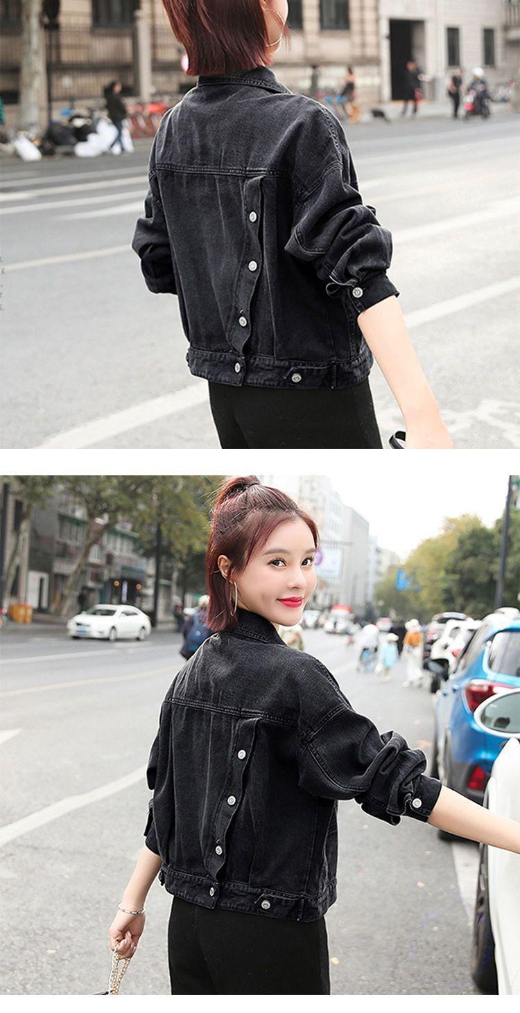 Talla petite estilo otoñal negro talla grande top chaqueta de mezclilla mujer corta mezclilla otoño ropa exterior mujer primavera y otoño versátil