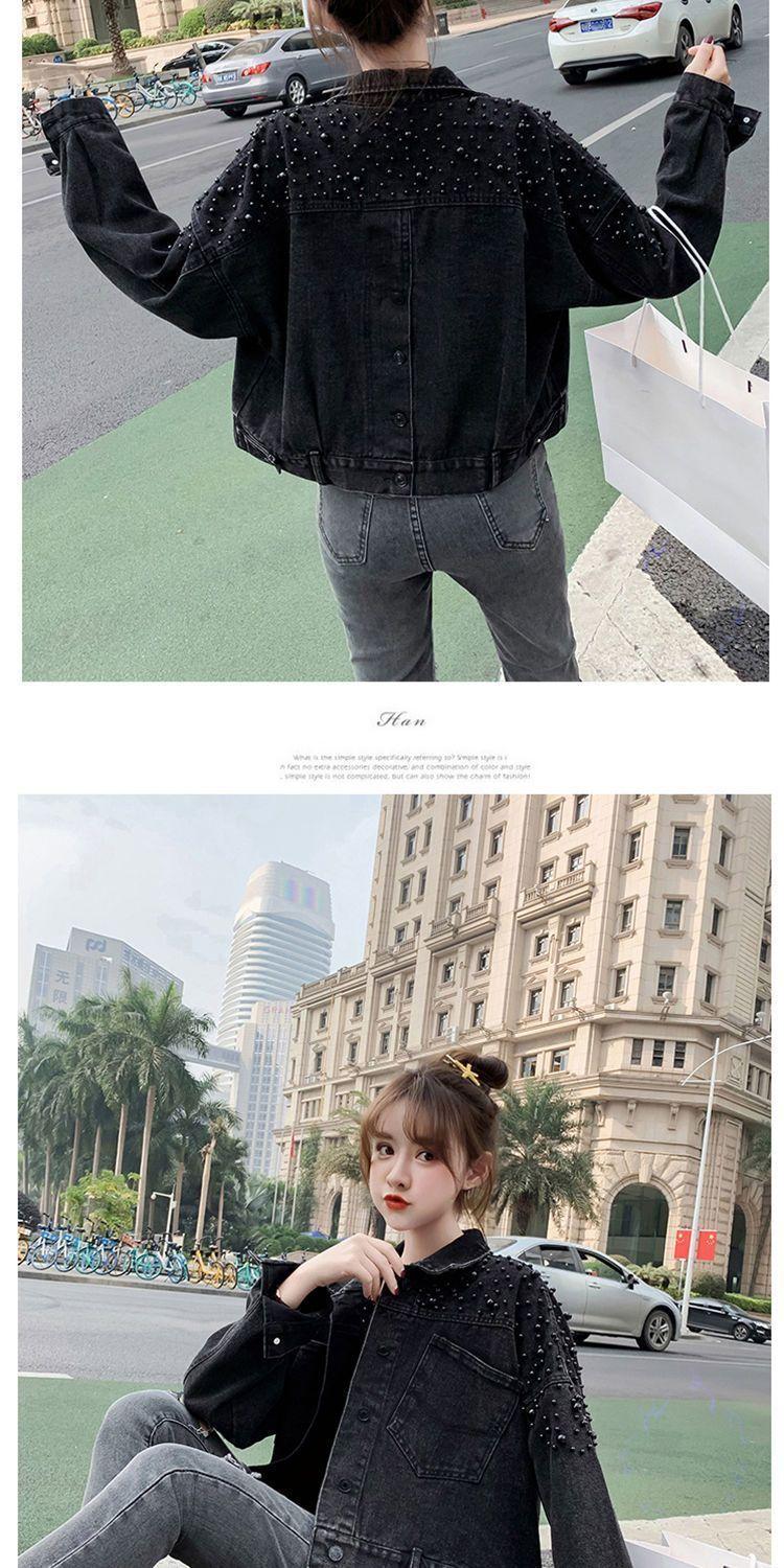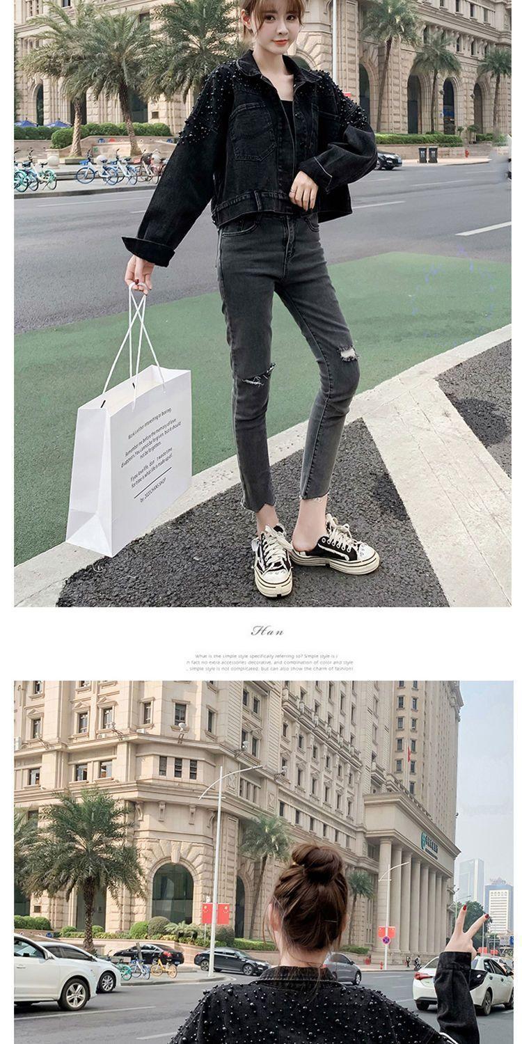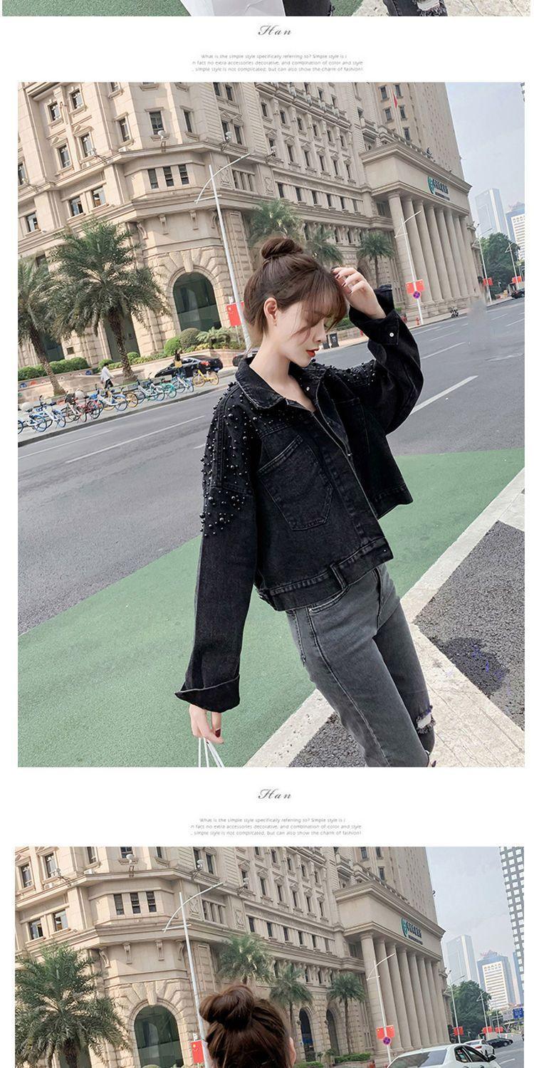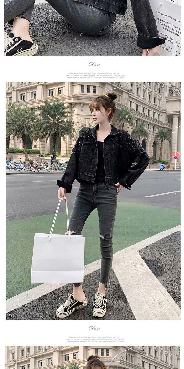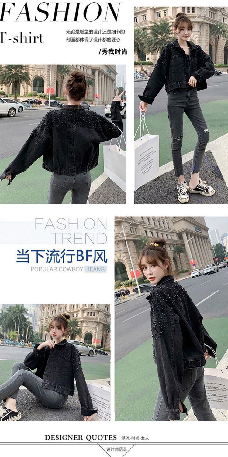 Talla petite estilo otoñal negro talla grande top chaqueta de mezclilla mujer corta mezclilla otoño ropa exterior mujer primavera y otoño versátil
