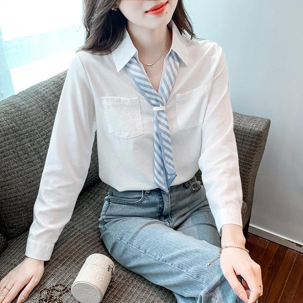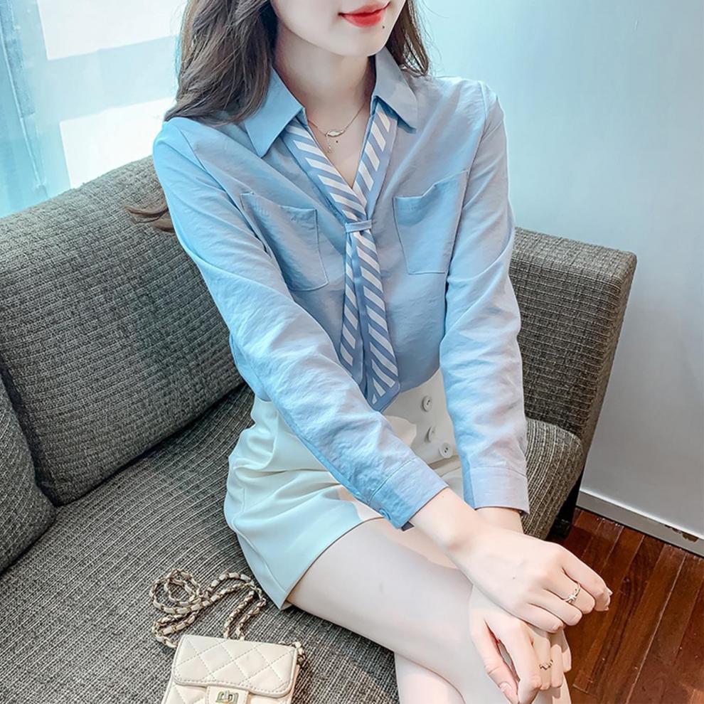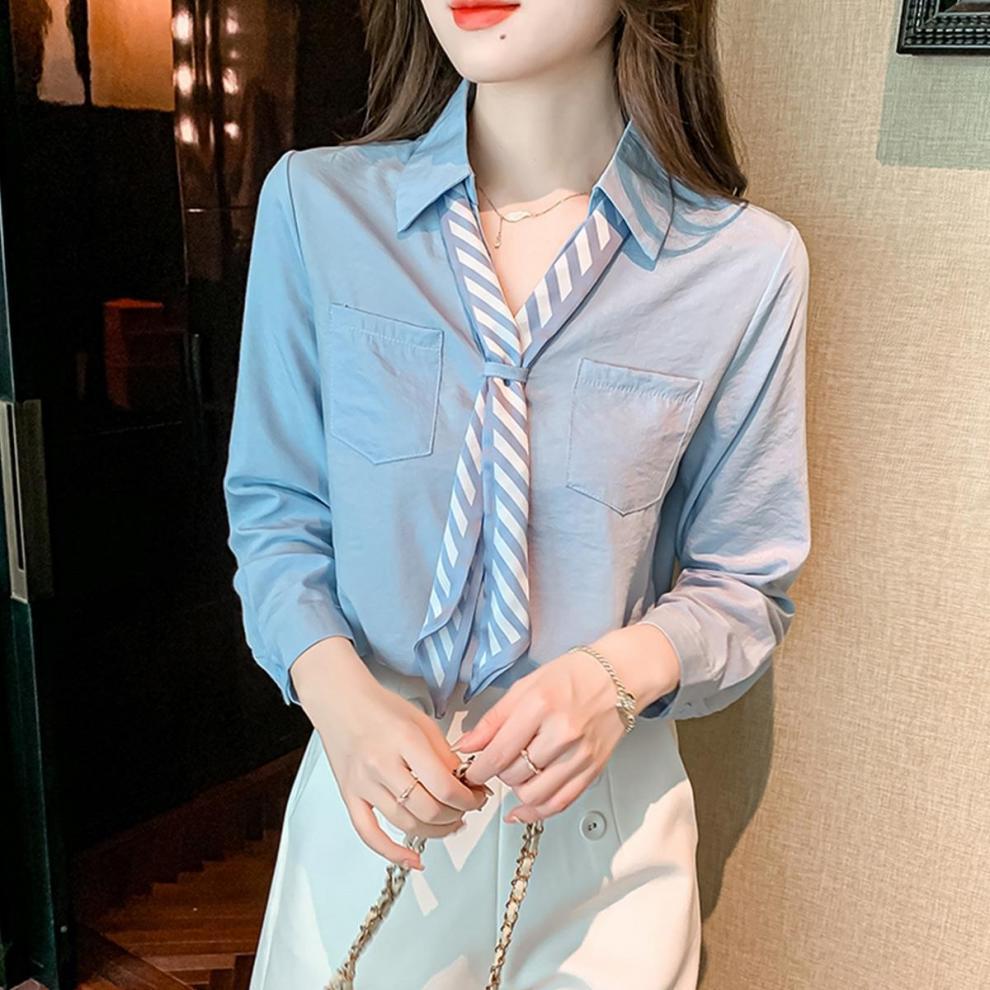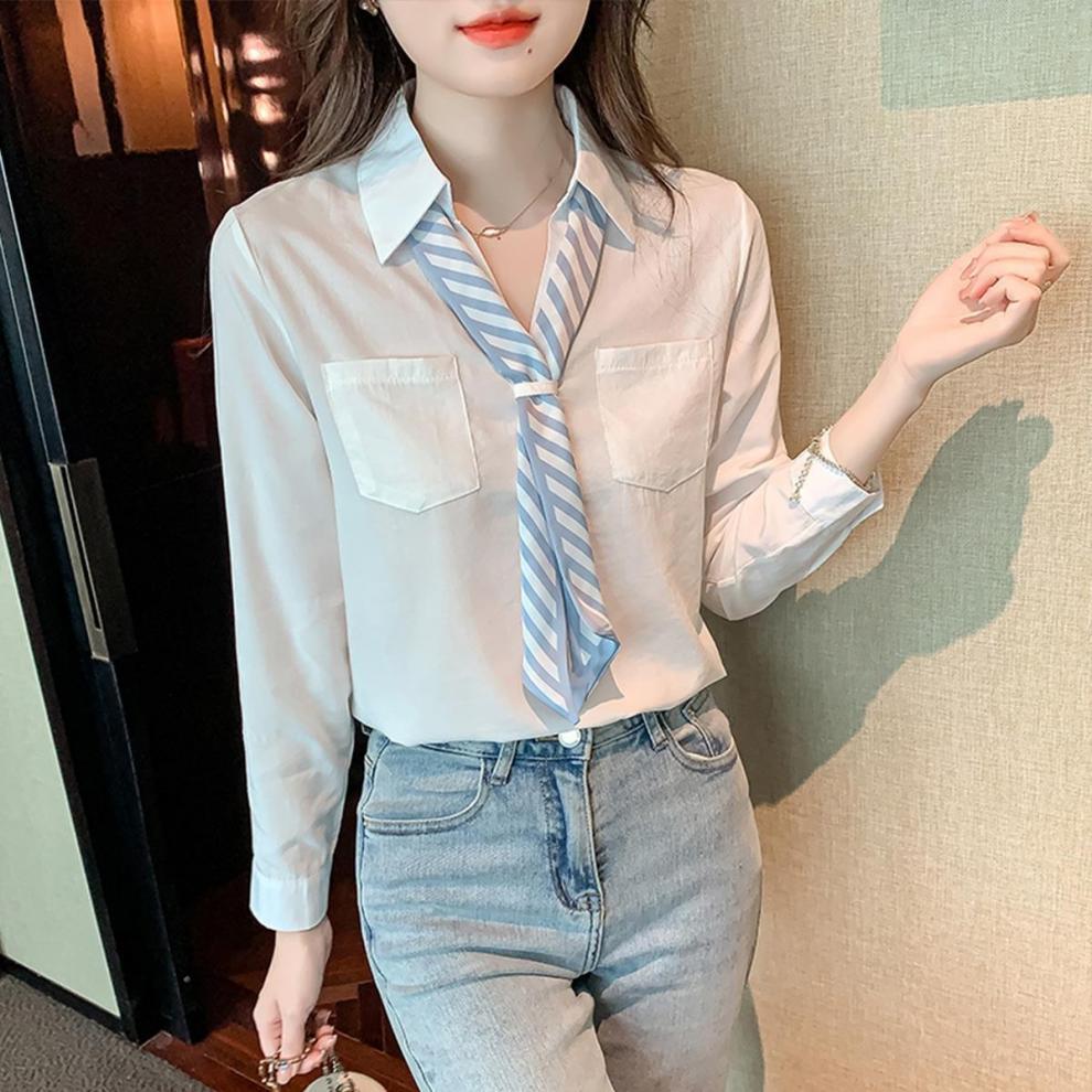 2025 Nueva Blusa de Chifón de Manga Larga para Otoño para Mujer Estilo Otoñal Primavera y Otoño Tops Petite para Dama Camisa Casual