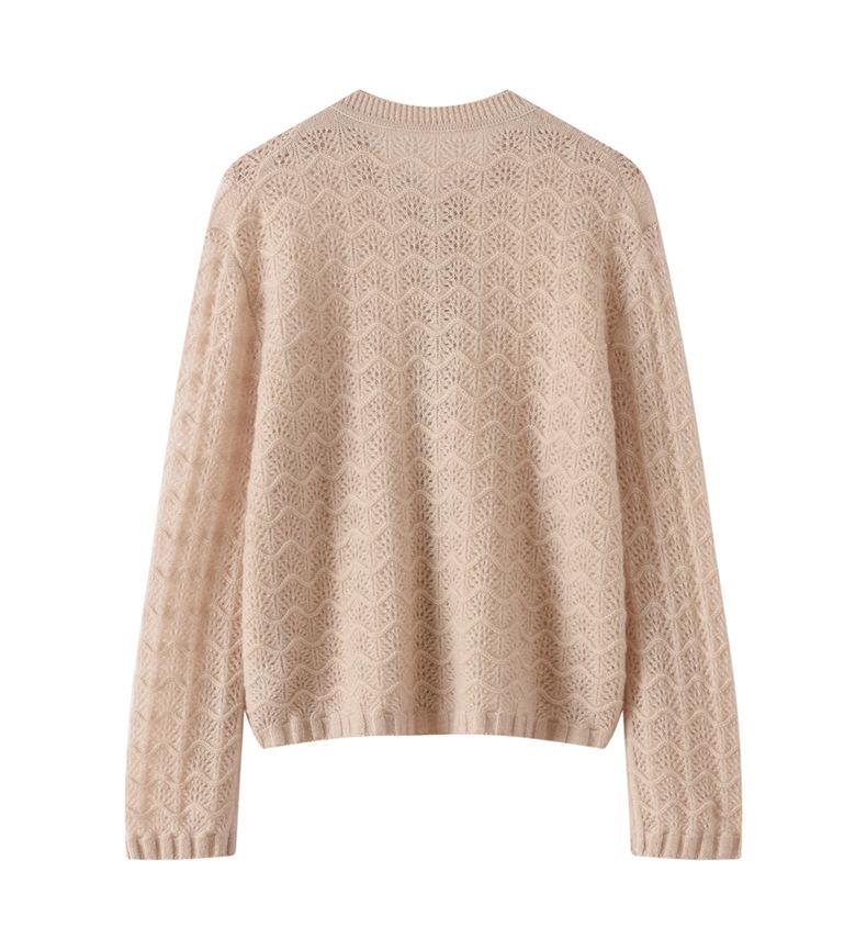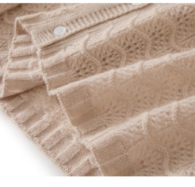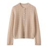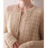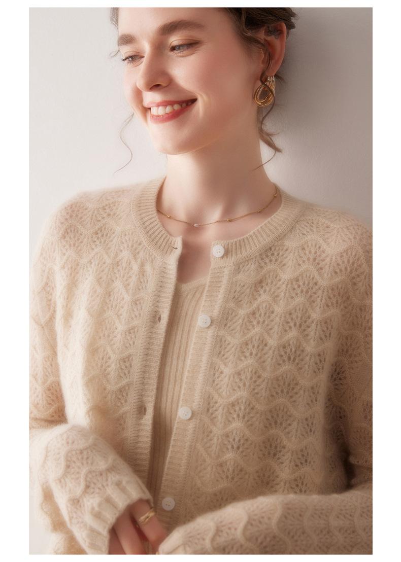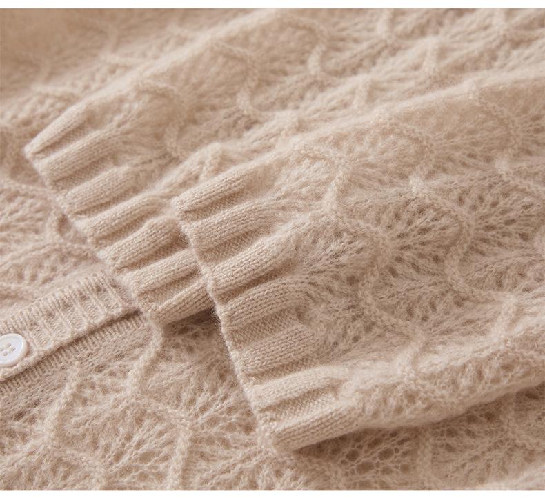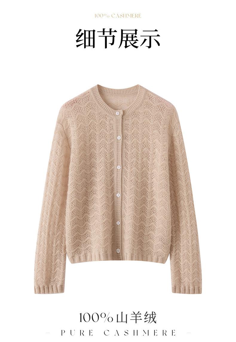 Cárdigan de Calado de Cachemira Pura para Mujer Otoño e Invierno Nuevo Cuello Redondo Suave Moda Manga Larga Suéter Tejido Abrigo