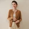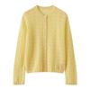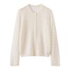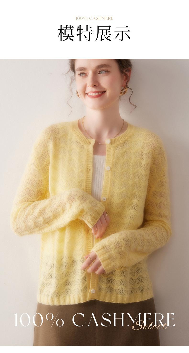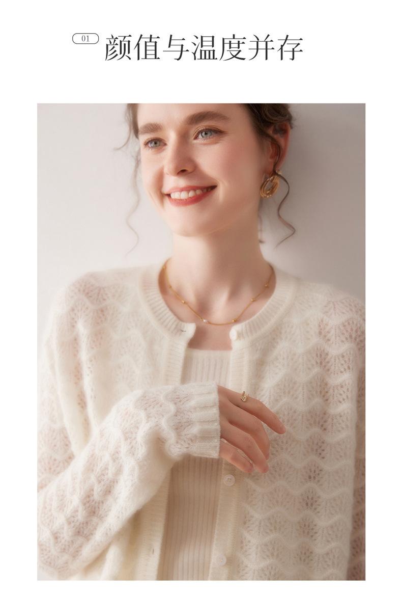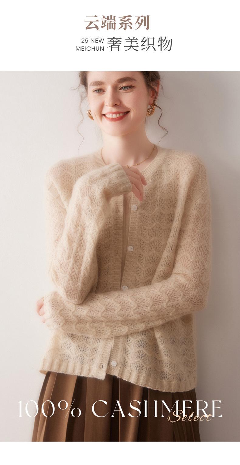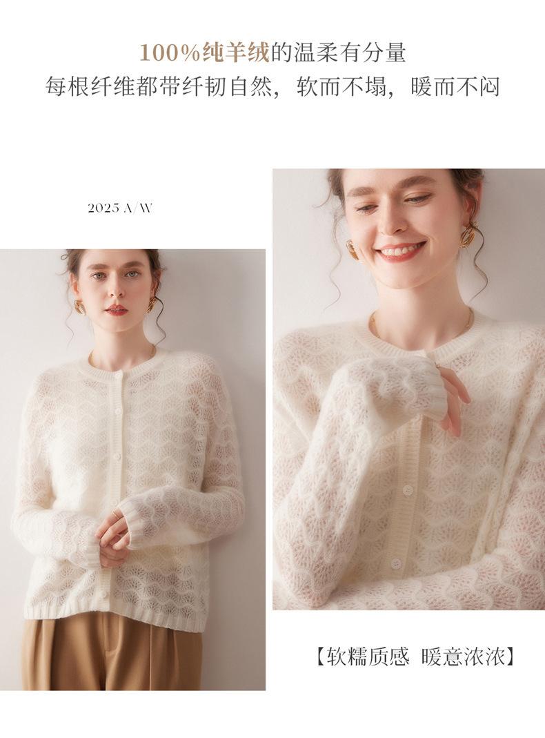 Cárdigan de Calado de Cachemira Pura para Mujer Otoño e Invierno Nuevo Cuello Redondo Suave Moda Manga Larga Suéter Tejido Abrigo