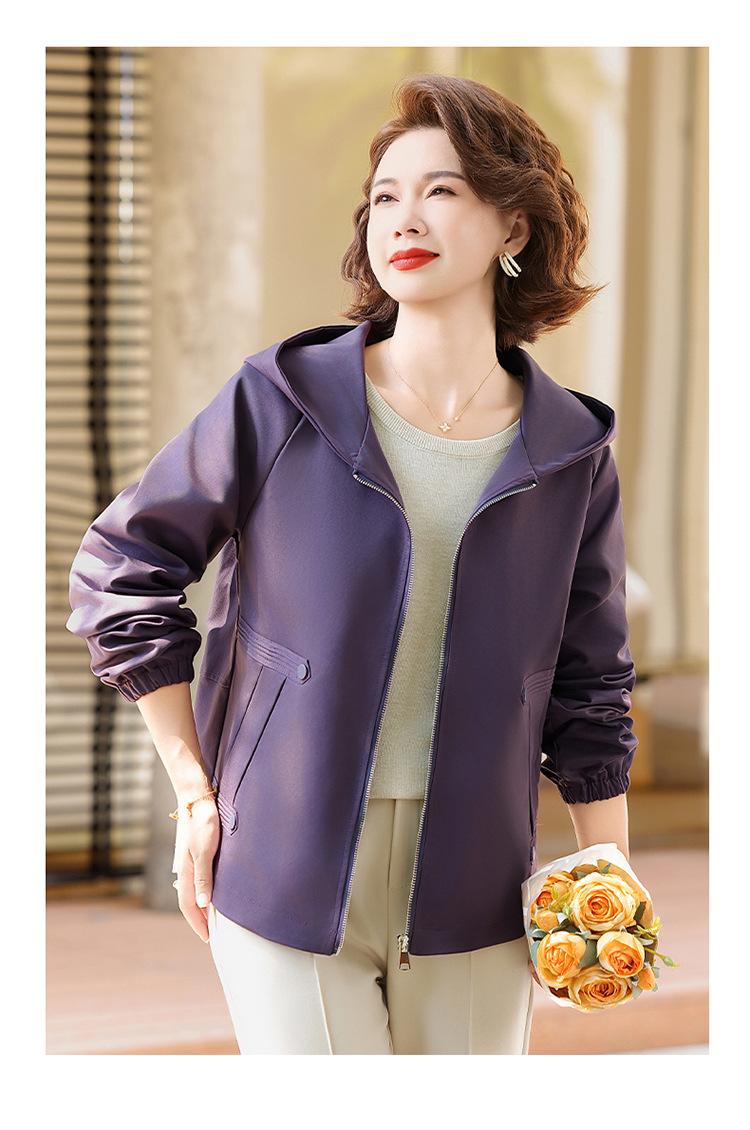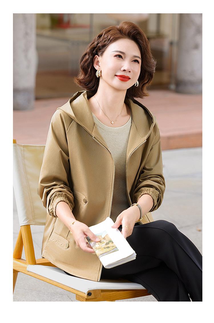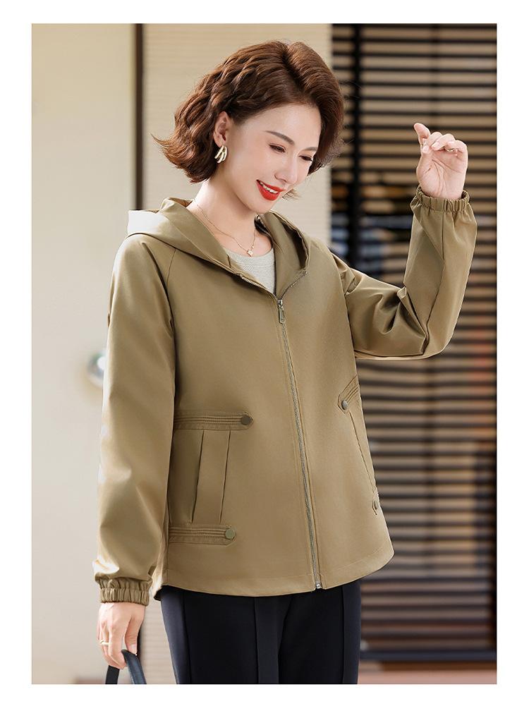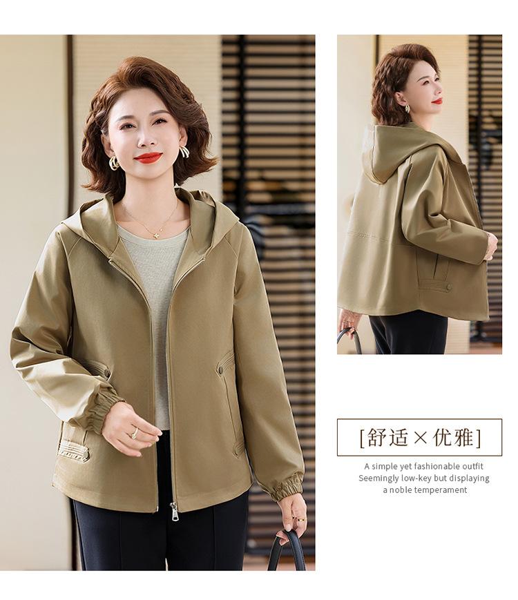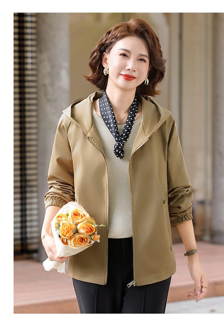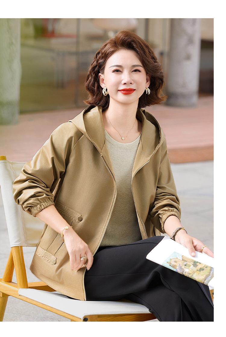 Chaqueta con capucha de moda de otoño para mamá joven, talla grande, holgada, estilo nuevo 2025, chaqueta de moda para mujeres de mediana edad para primavera y otoño