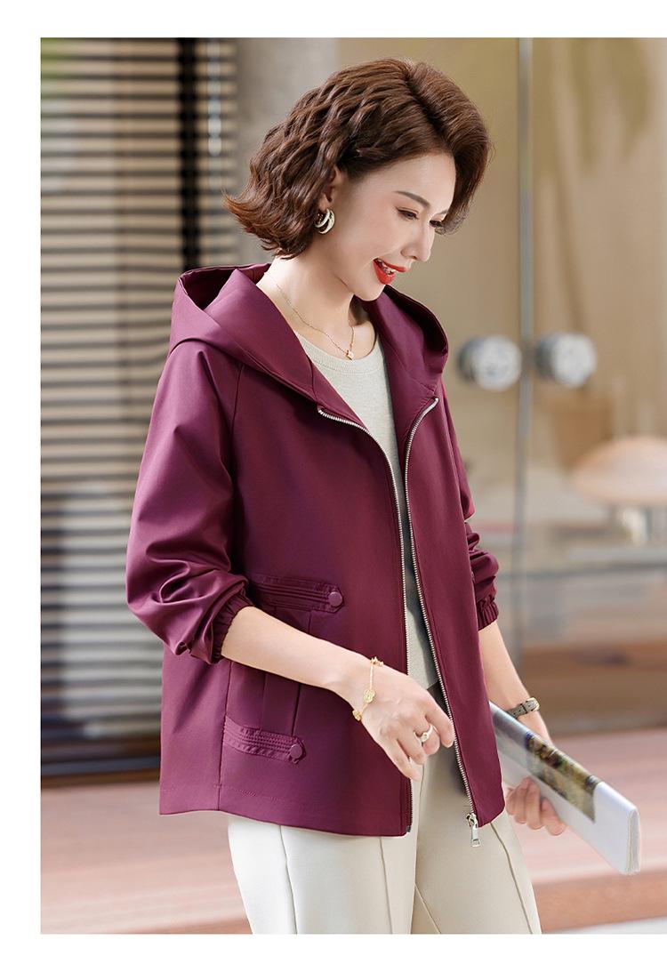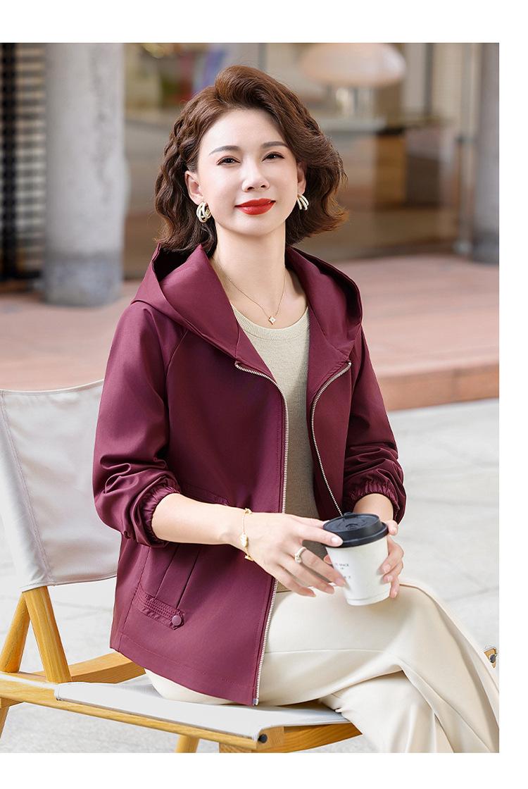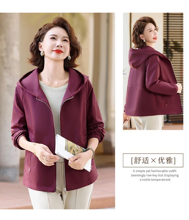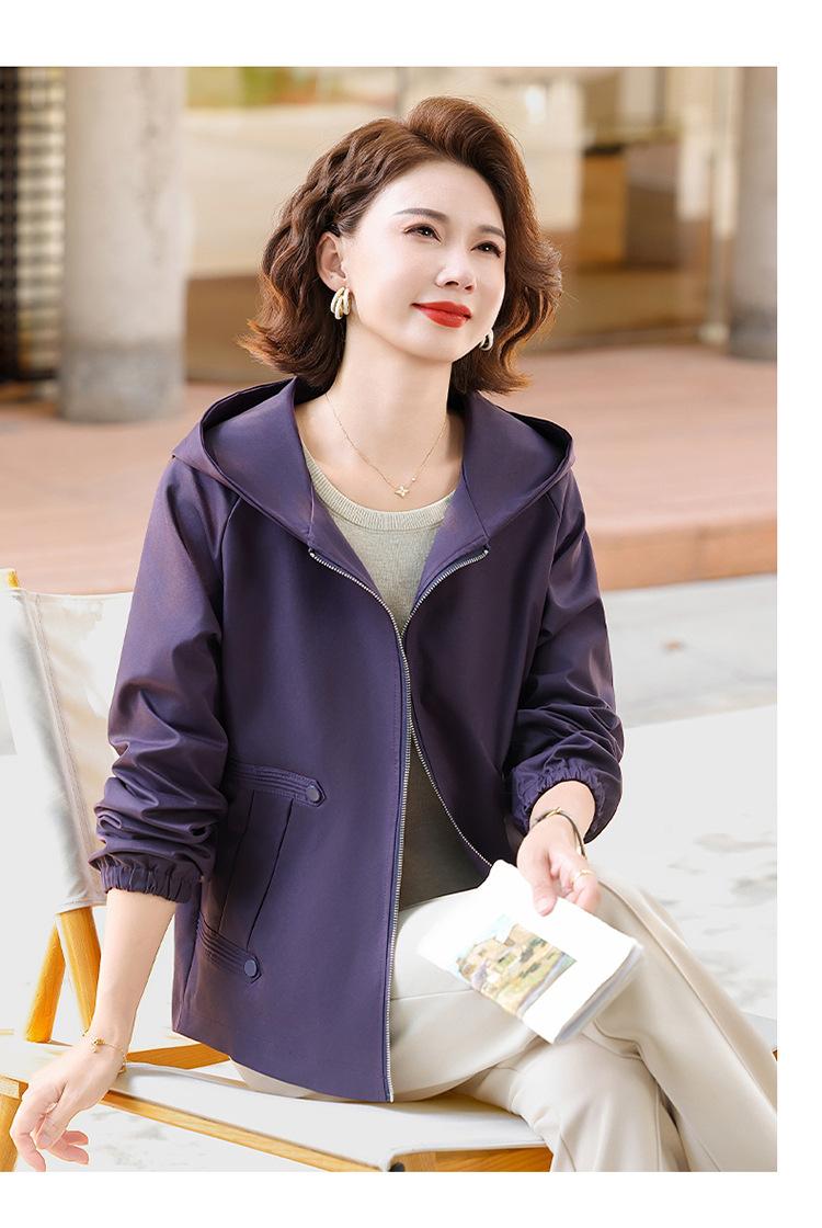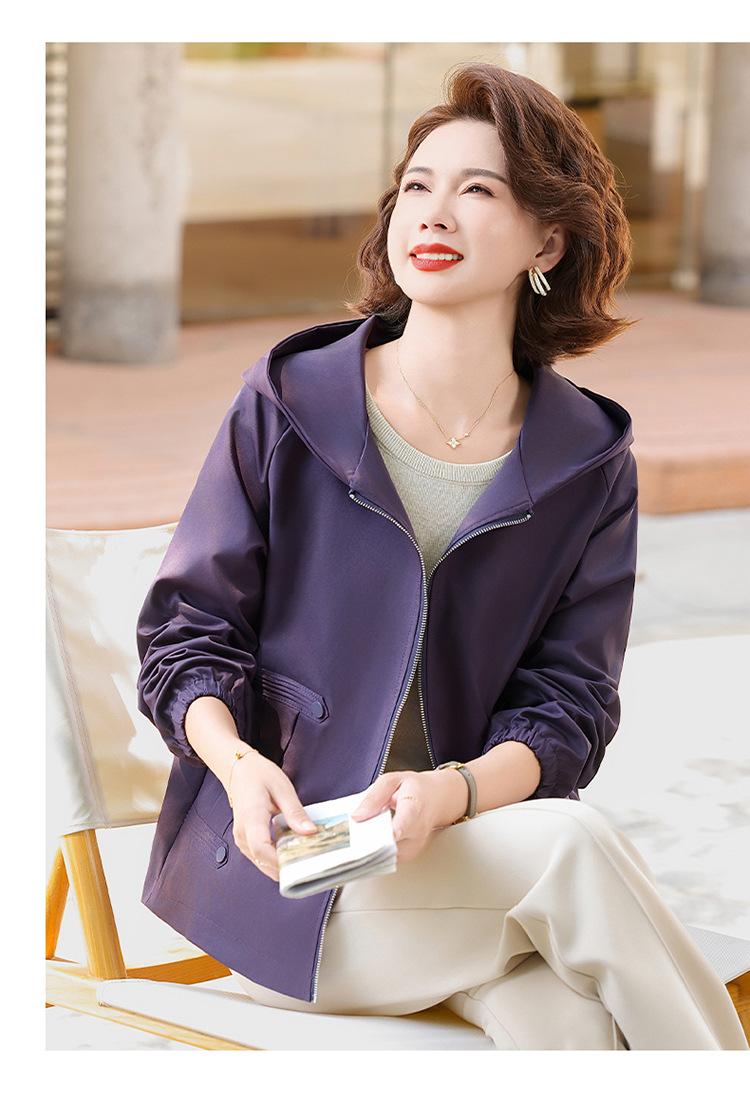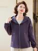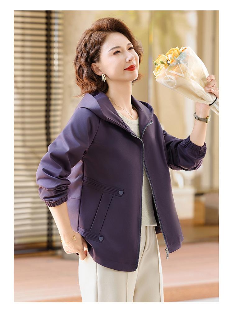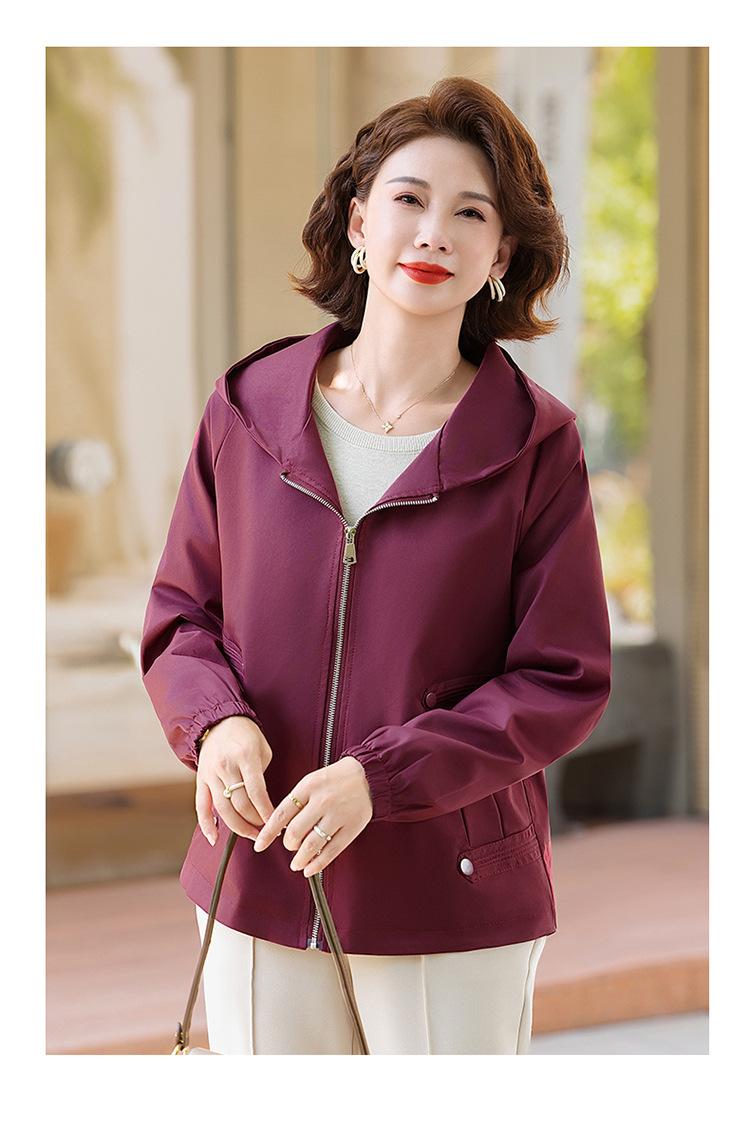 Chaqueta con capucha de moda de otoño para mamá joven, talla grande, holgada, estilo nuevo 2025, chaqueta de moda para mujeres de mediana edad para primavera y otoño