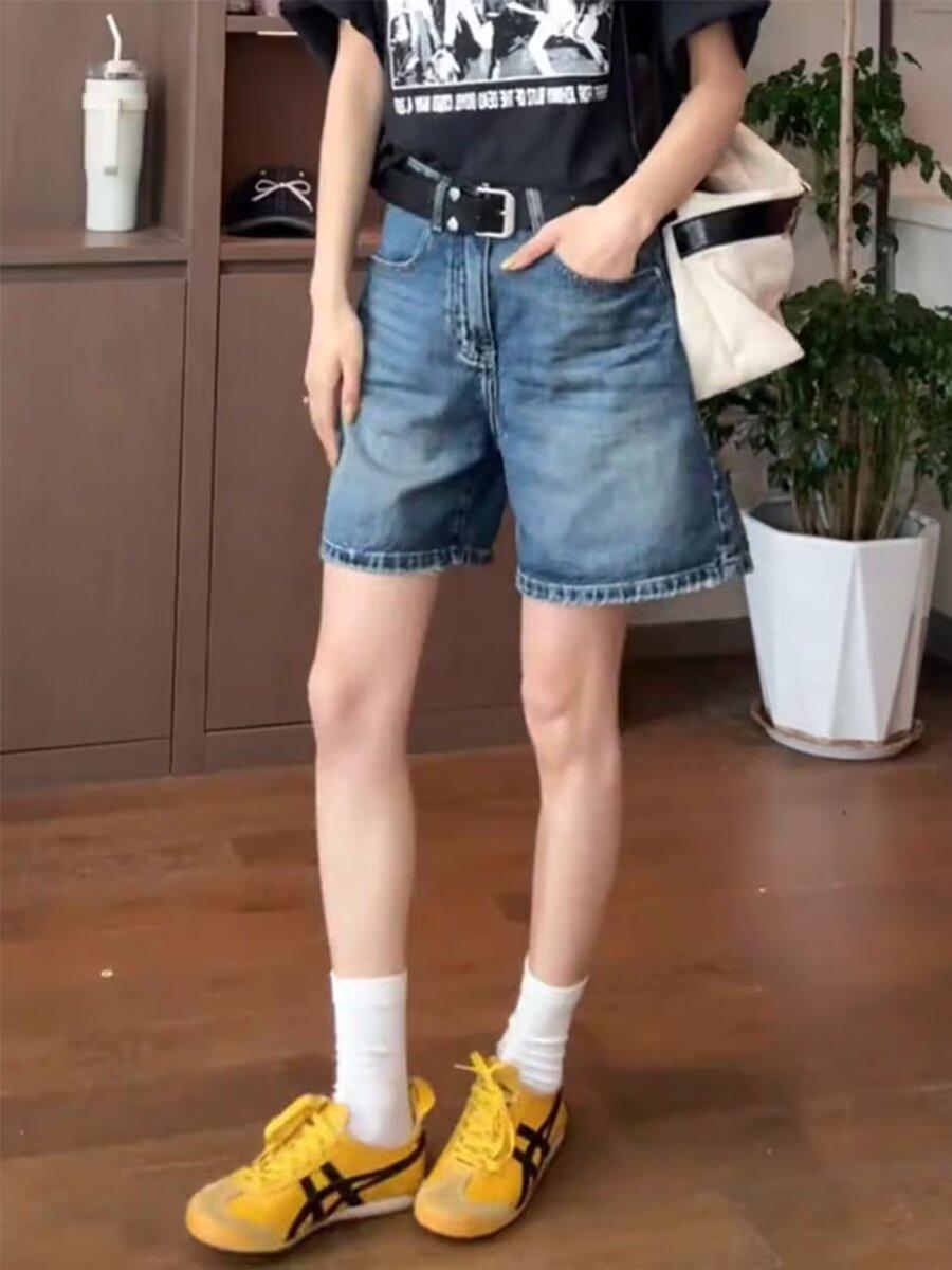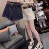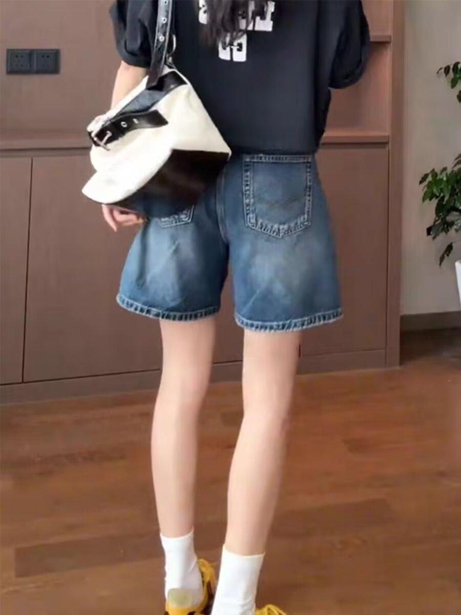 Shorts de Mezclilla Retro Azules Mujer Verano Delgados Talla Grande MM Petite Cintura Alta Adelgazantes Línea A Pierna Ancha Hot Pants
