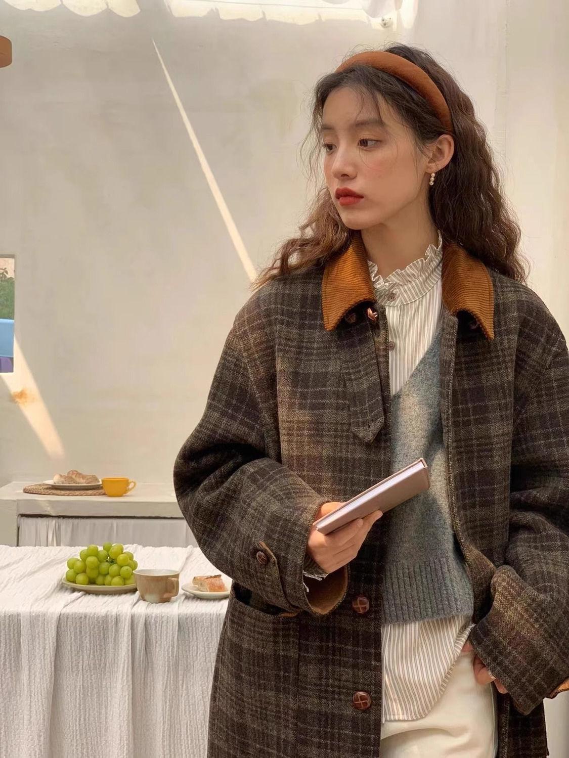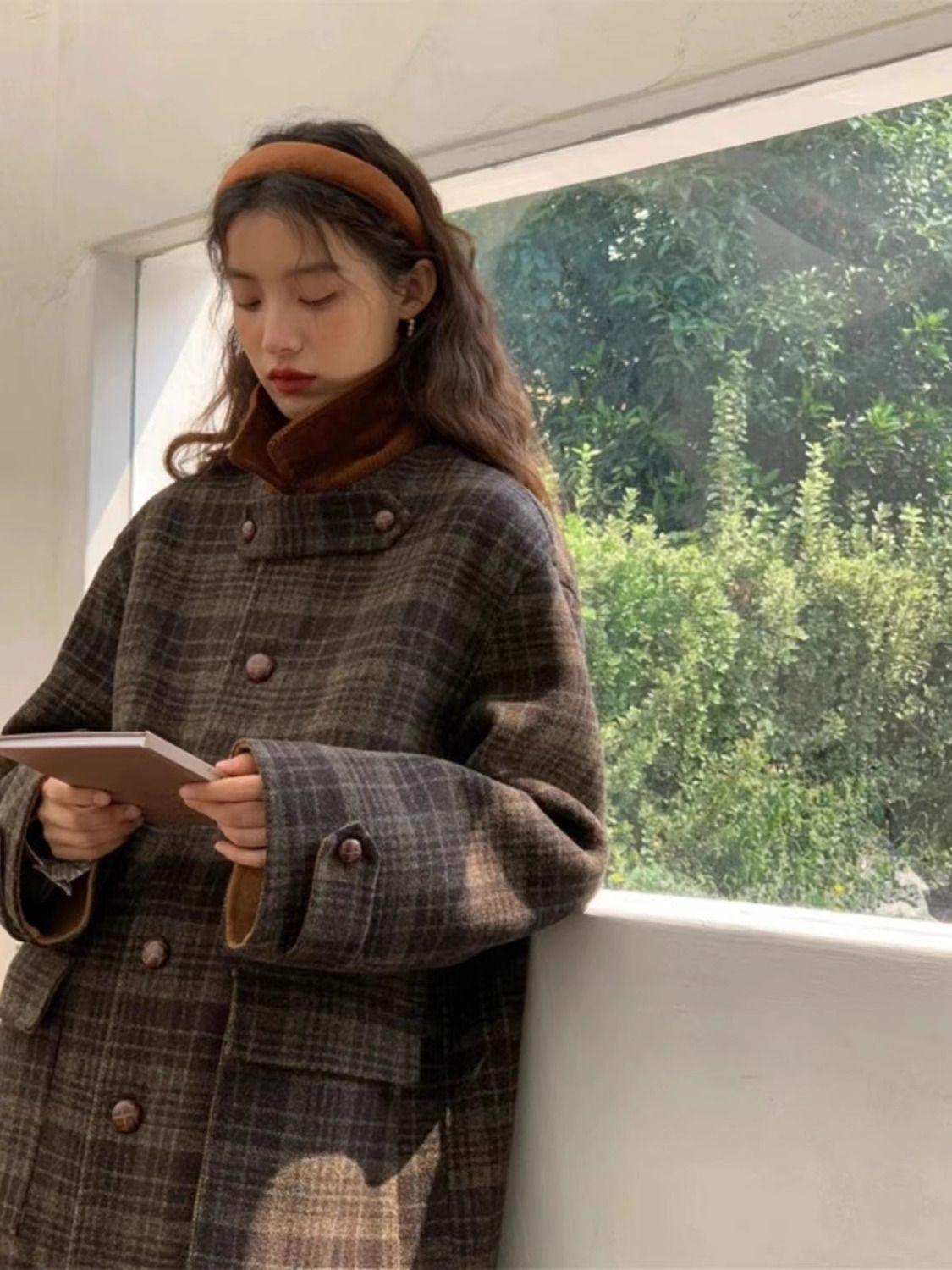 Abrigo de lana para mujer 2025 otoño e invierno nuevo estilo coreano petite estilo Hepburn temperamento de alta gama abrigo de lana grueso