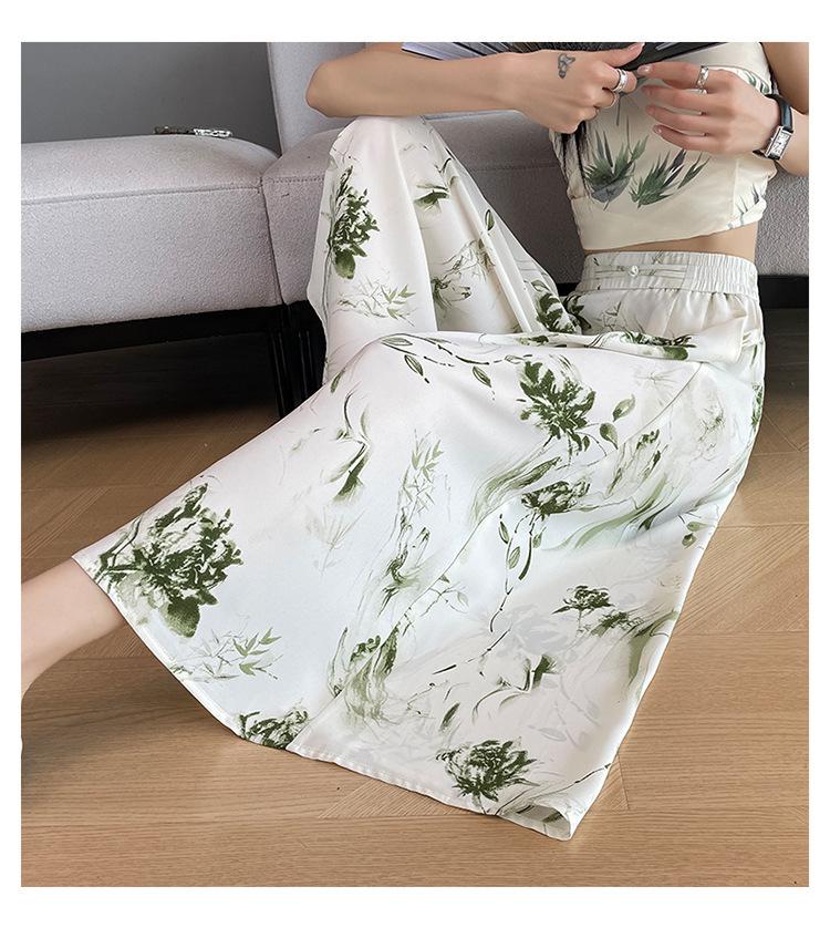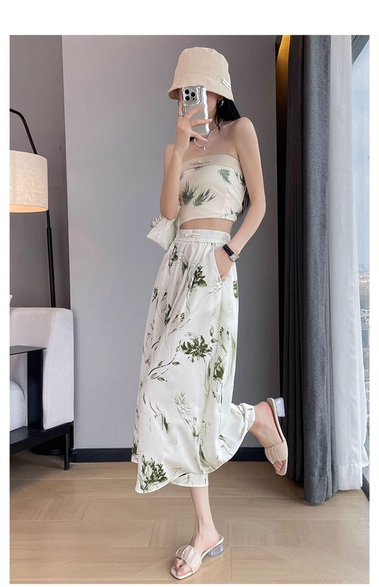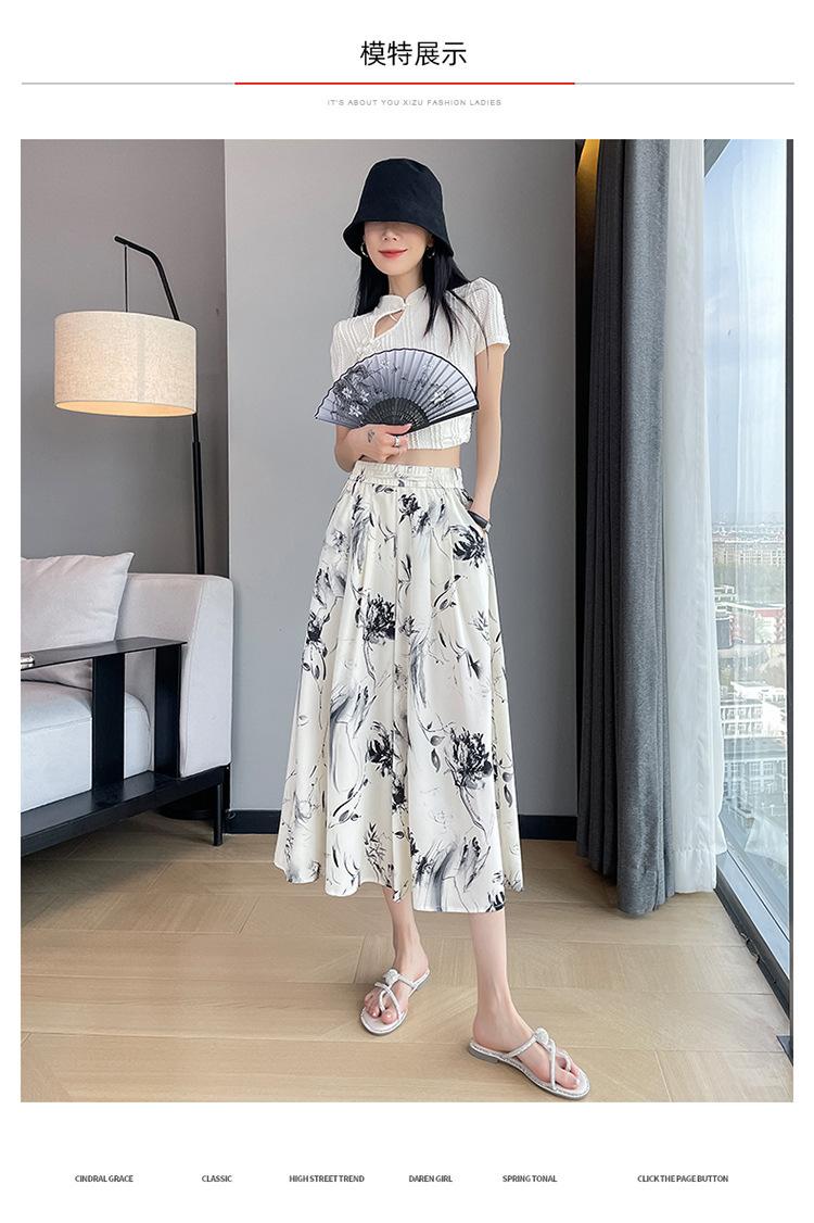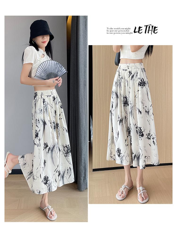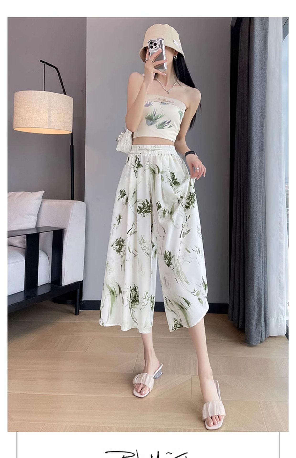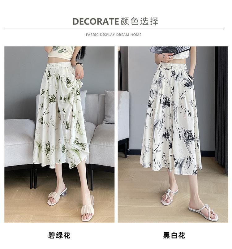 Pantalones de Falda de Verano de Cintura Alta para Mujer 2025 Nuevo Holgado y con Caída Moda Petite Casual Pantalones Anchos de Tres Puntos