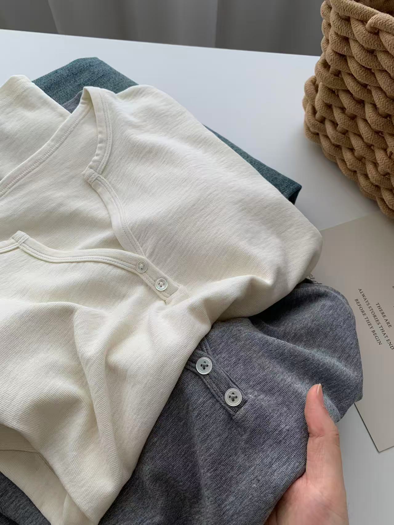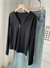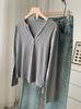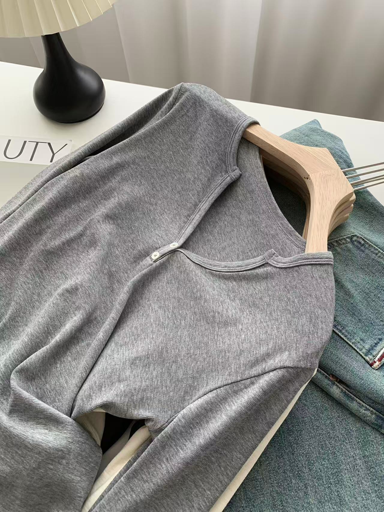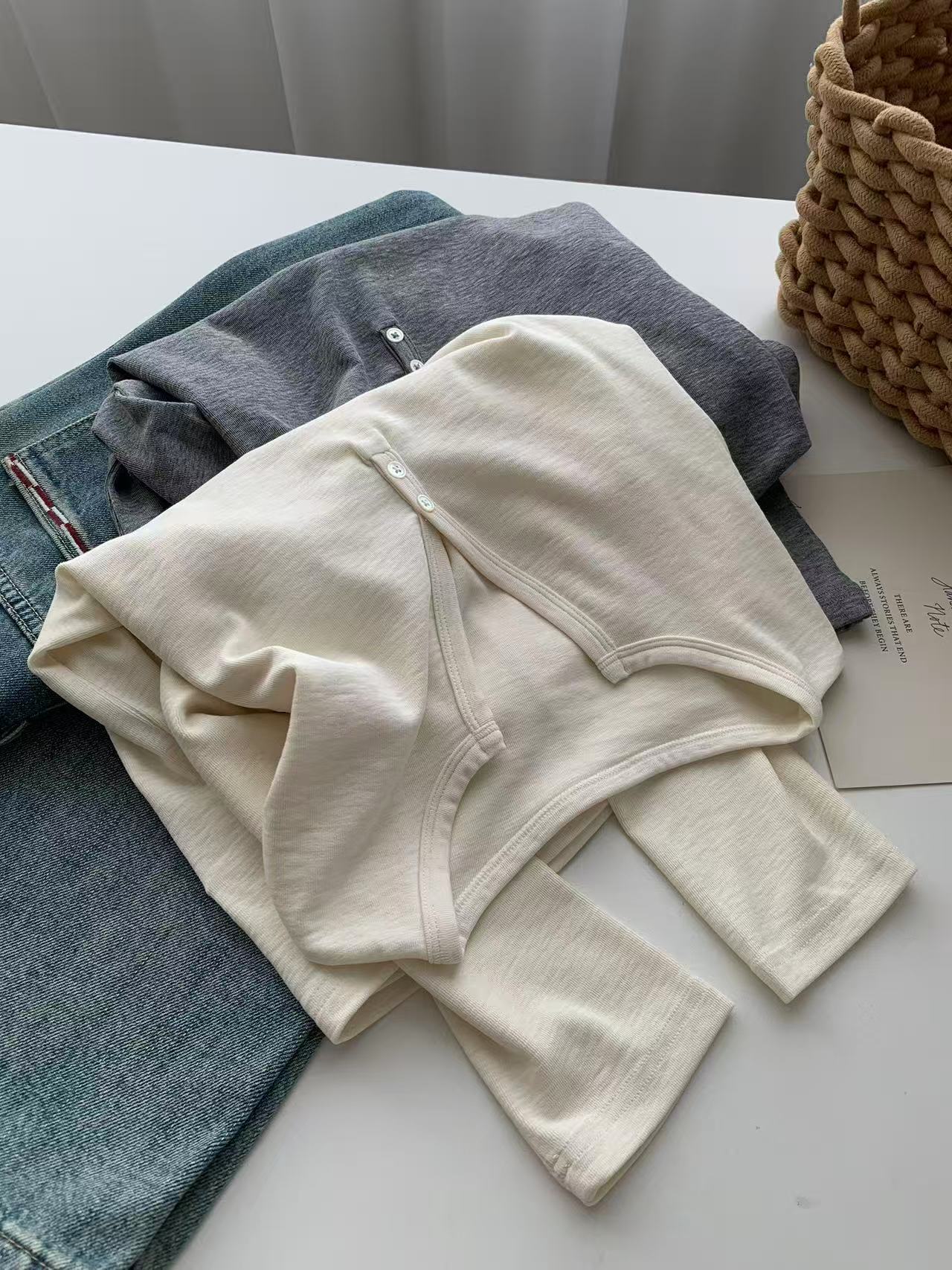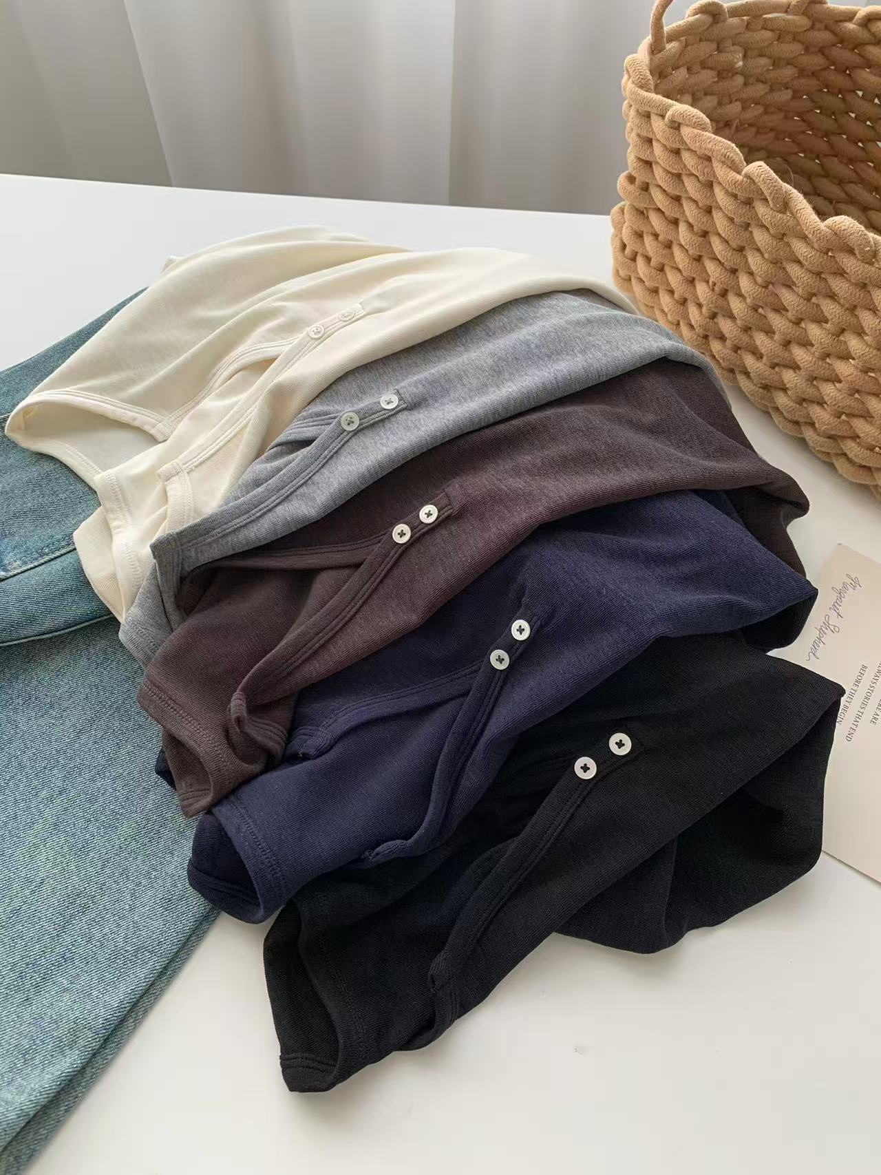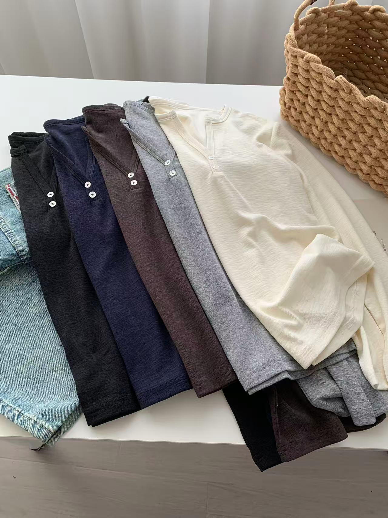 ¡ju muestra delgadez~Camiseta de manga larga con cuello en V y dos botones de Lenzing Tencel para mujer! Top base versátil de otoño elástico ajustado puro y sexy