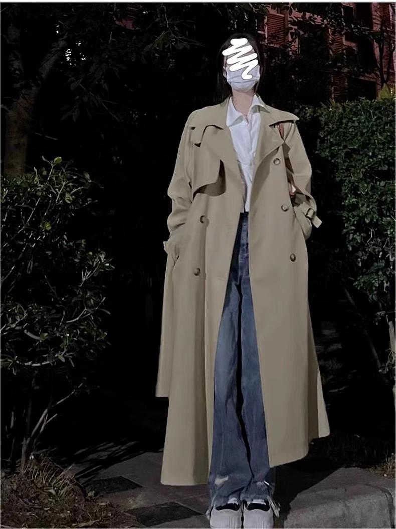 Gabardina caqui para mujer primavera y otoño petite 2025 nueva moderna de longitud media abrigo de primavera otoño