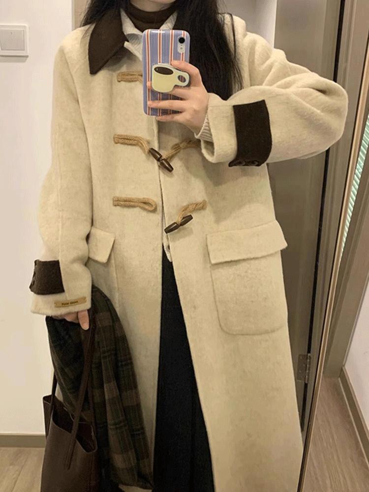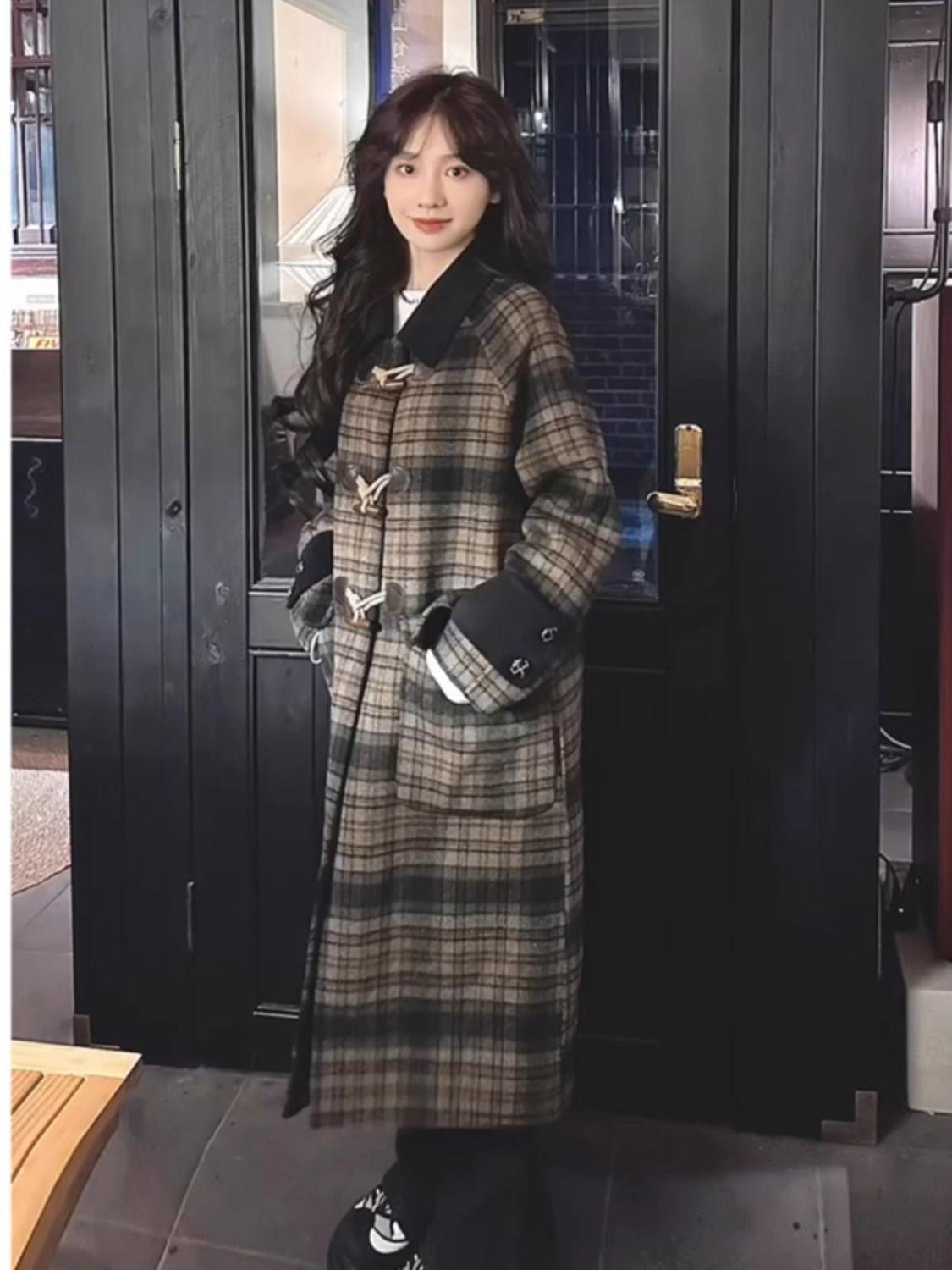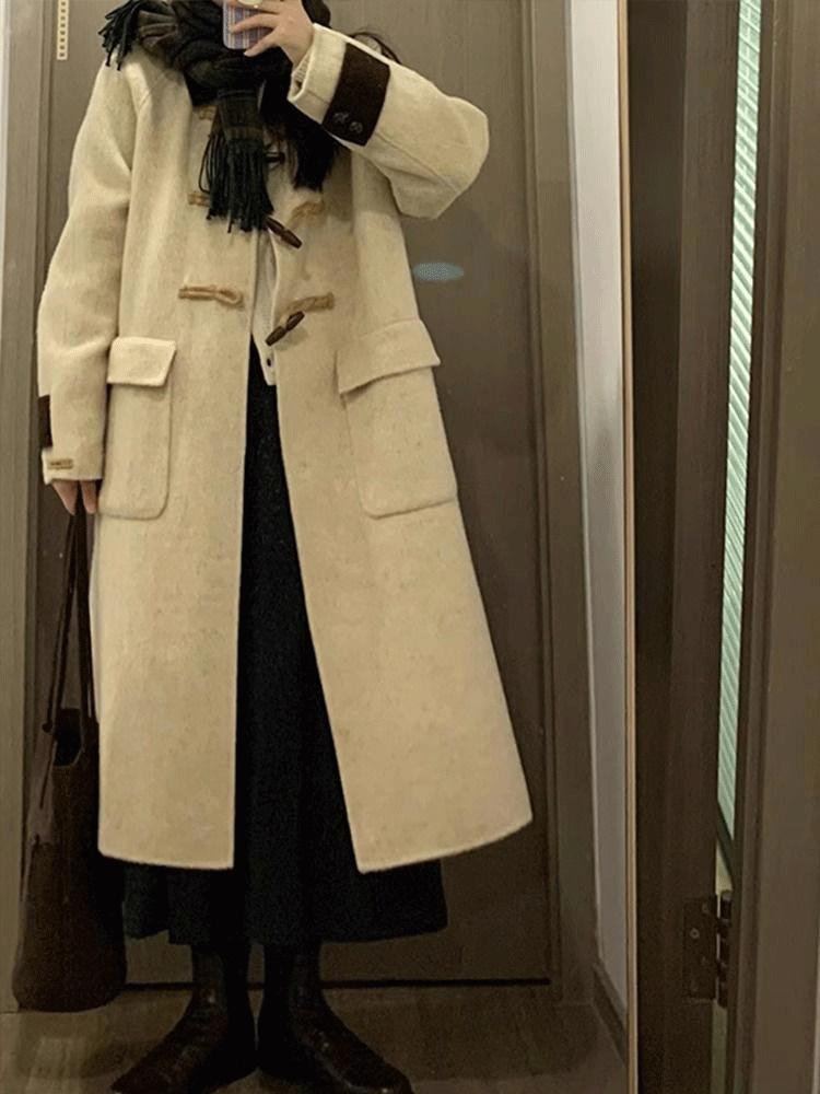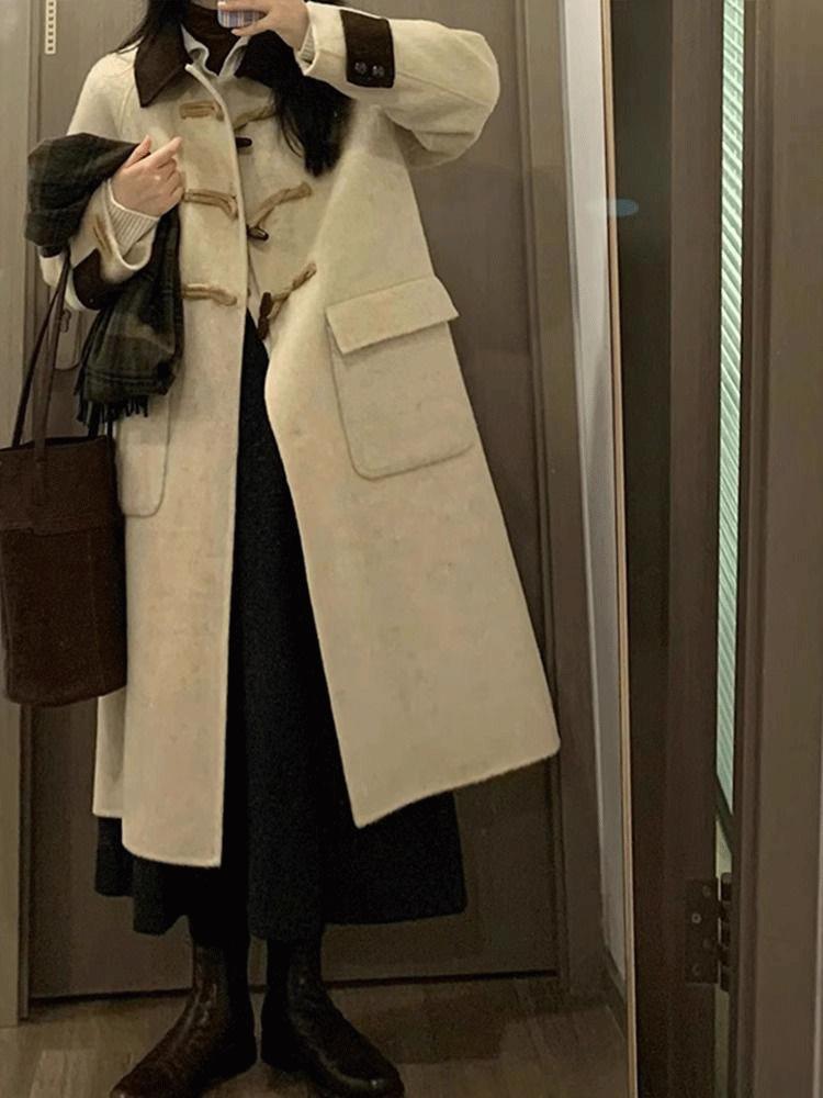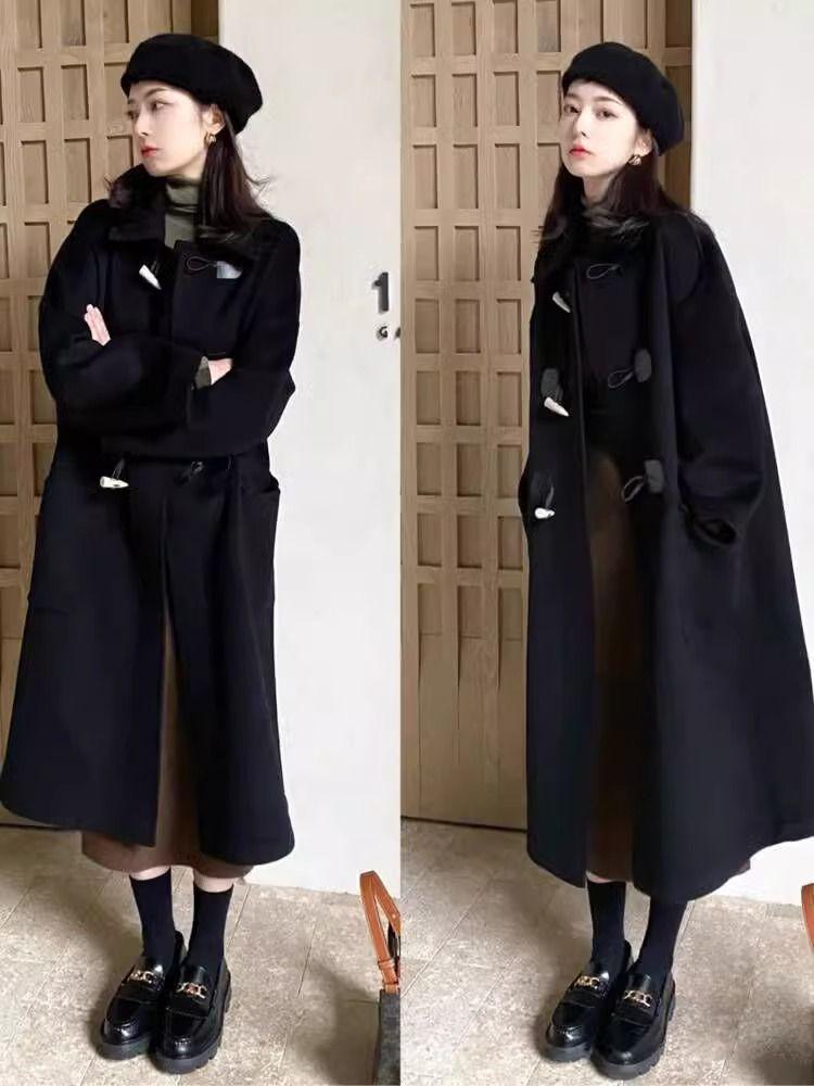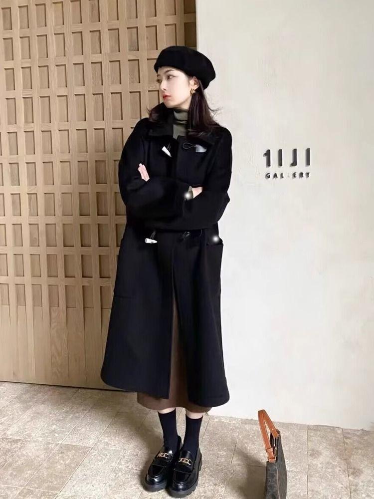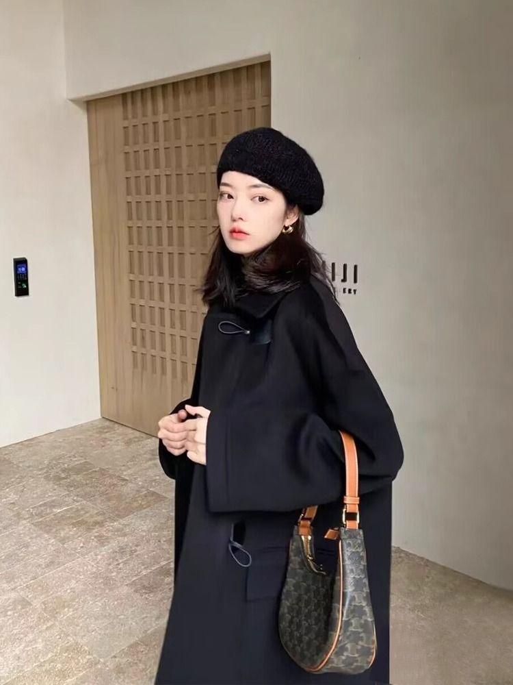 Abrigo de Lana con Botón de Cuerno para Mujer 2025 Nueva Ropa de Invierno de Alta Gama para Personas Pequeñas Abrigo de Lana Estilo Coreano Hepburn