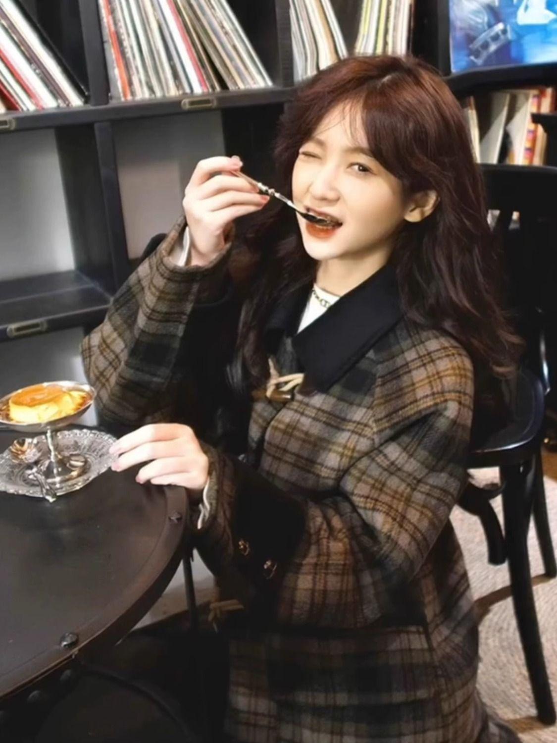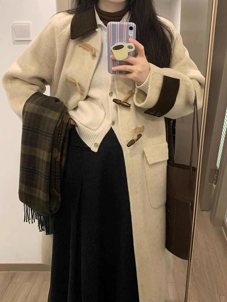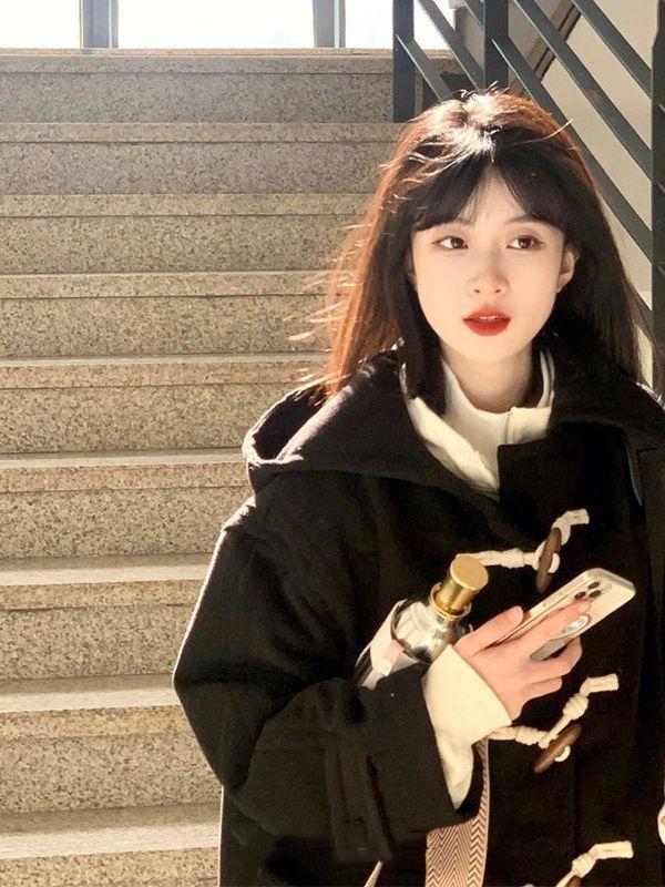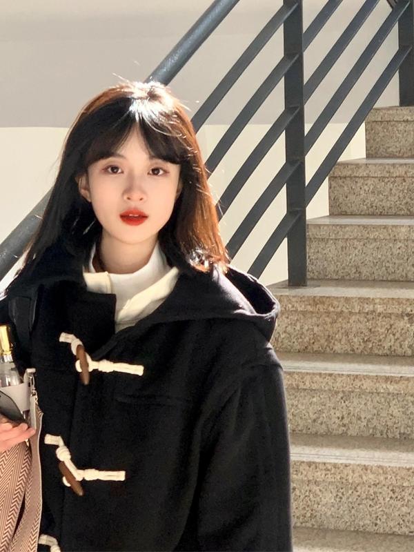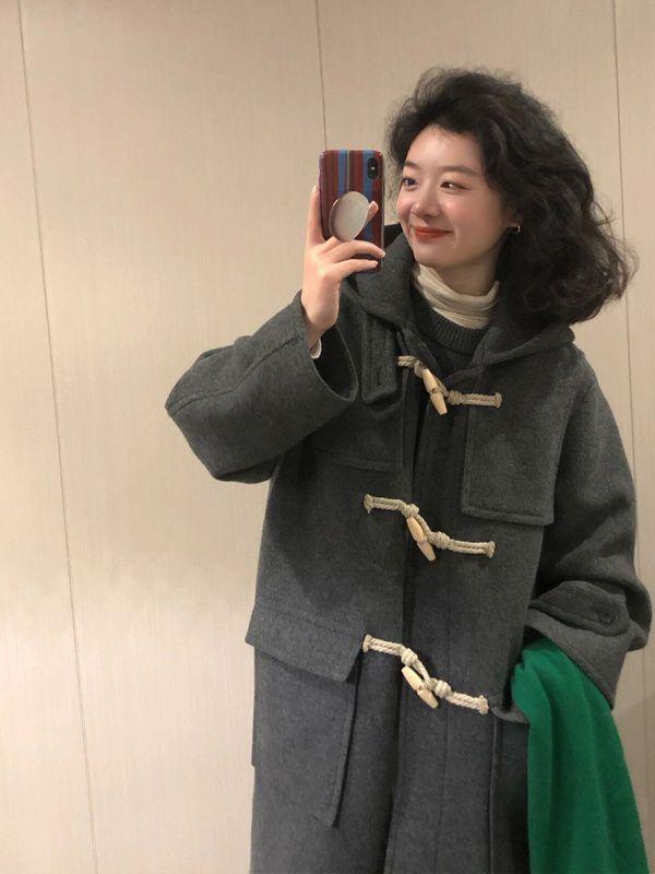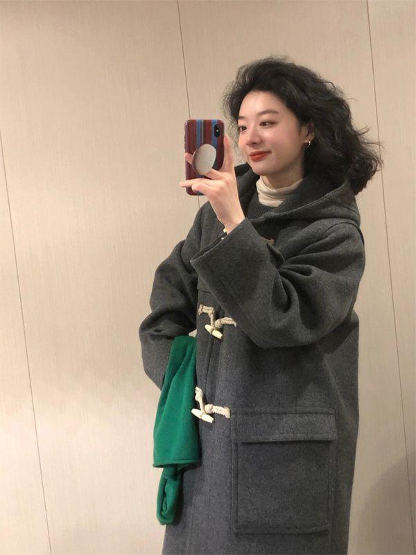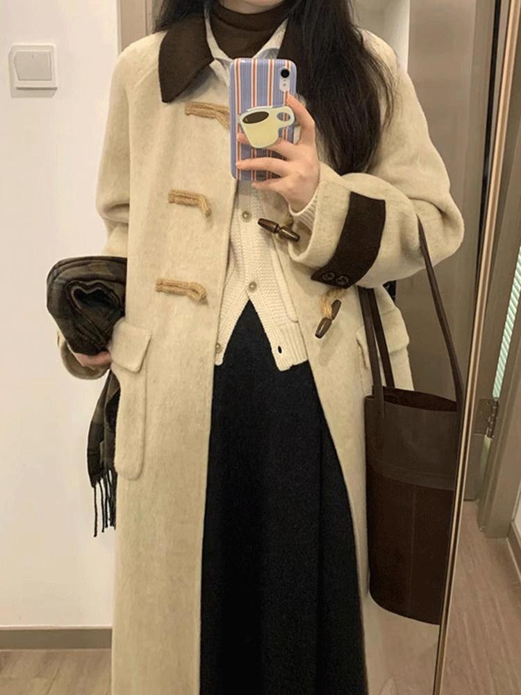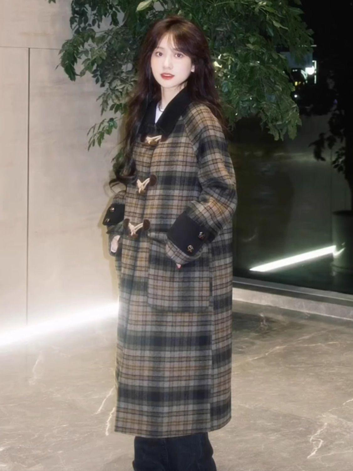 Abrigo de Lana con Botón de Cuerno para Mujer 2025 Nueva Ropa de Invierno de Alta Gama para Personas Pequeñas Abrigo de Lana Estilo Coreano Hepburn