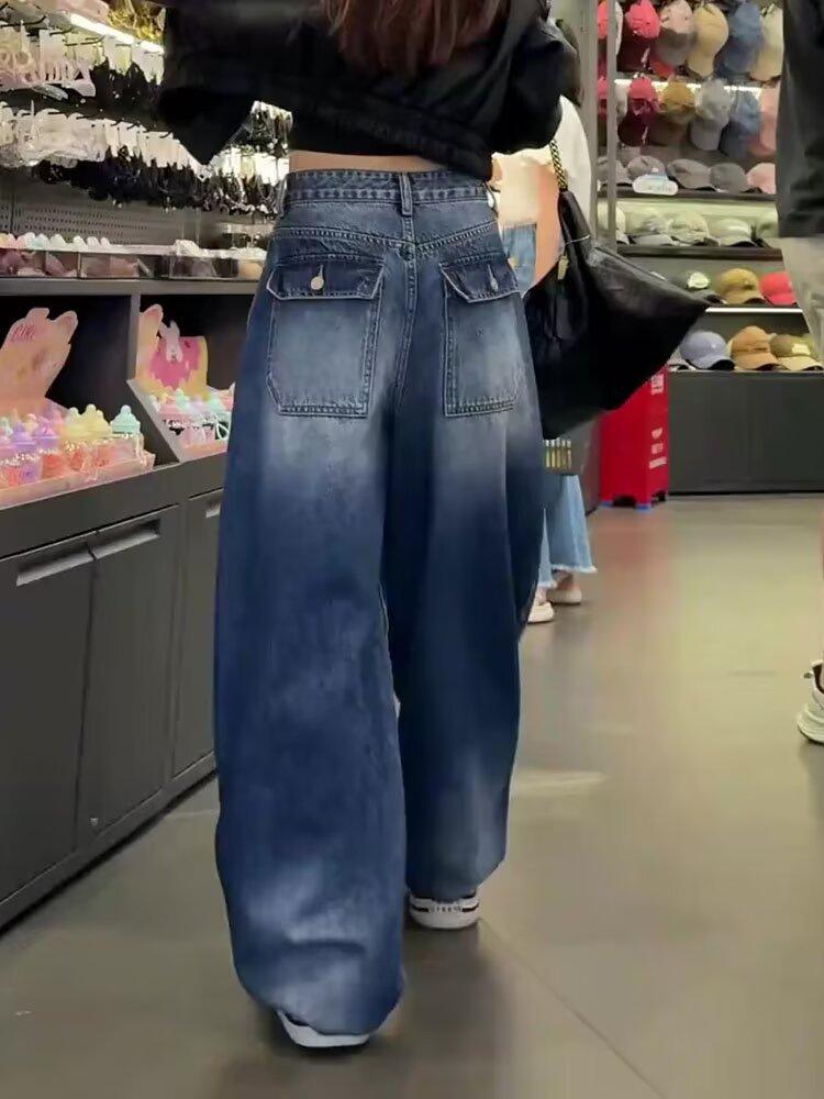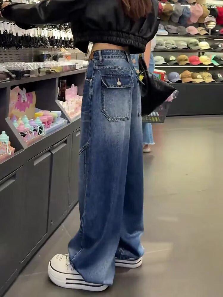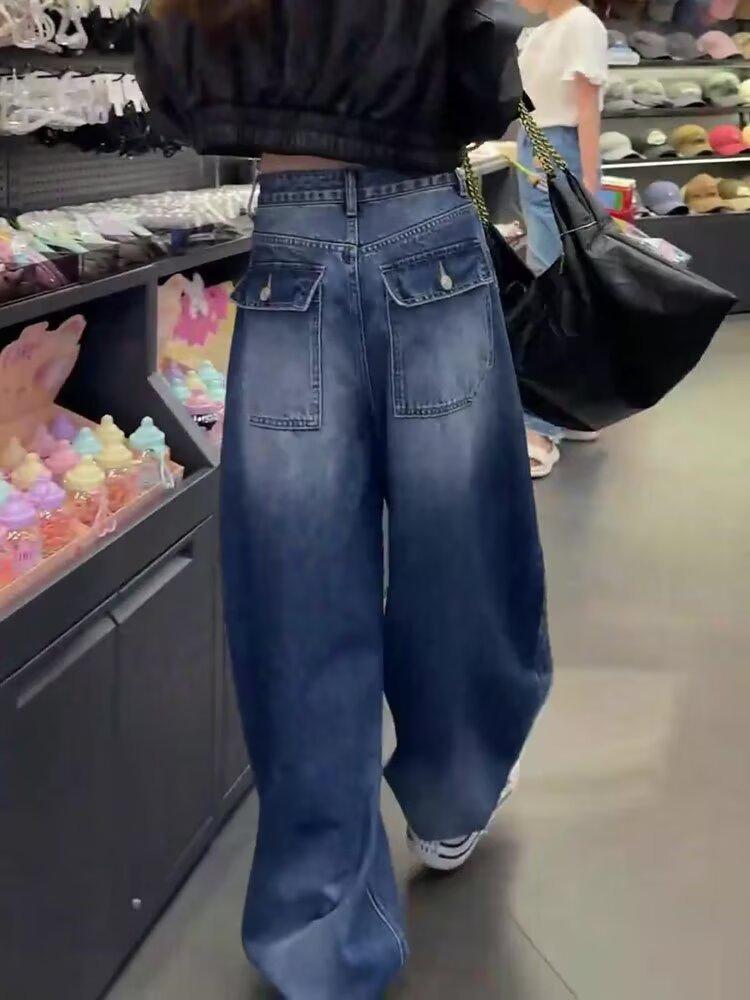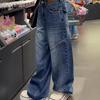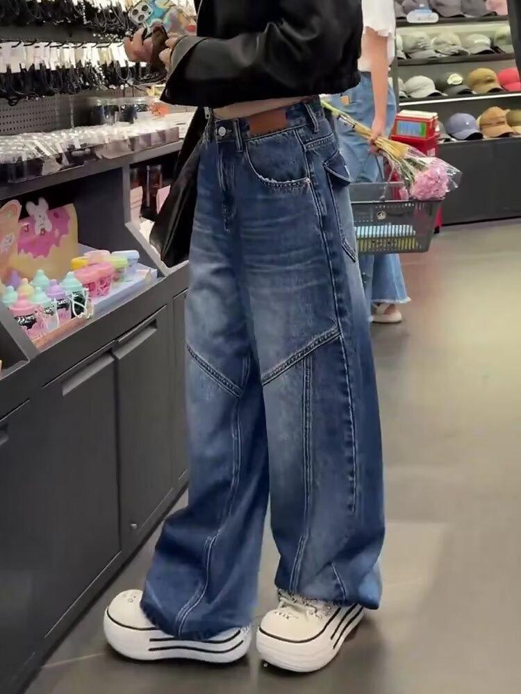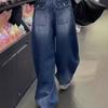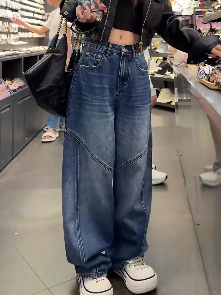 Comercio transfronterizo Jeans de pierna ancha retro americanos para mujer primavera y verano nuevos talla grande MM gorda cintura alta holgados adelgazantes pierna recta