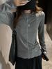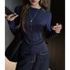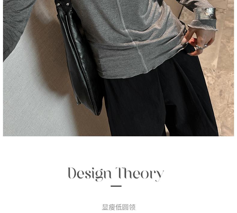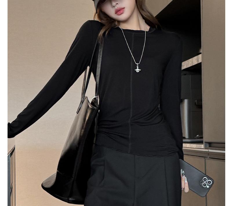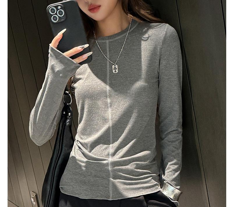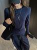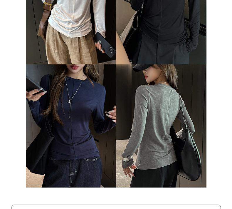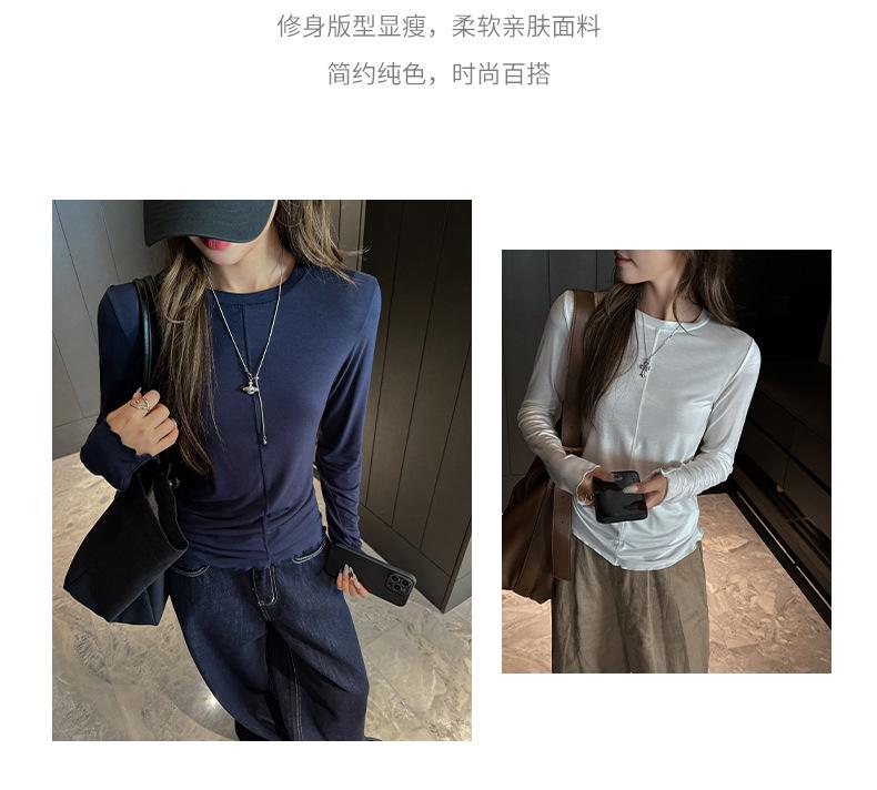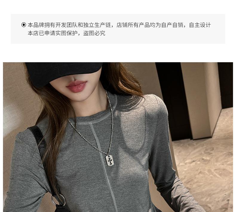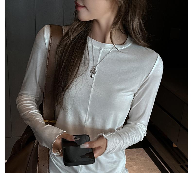 2025 Principios de Otoño Cuello Redondo Diseño Empalmado Manga Larga Camiseta Base Ropa Interior para Mujer Top Adelgazante de Alta Gama