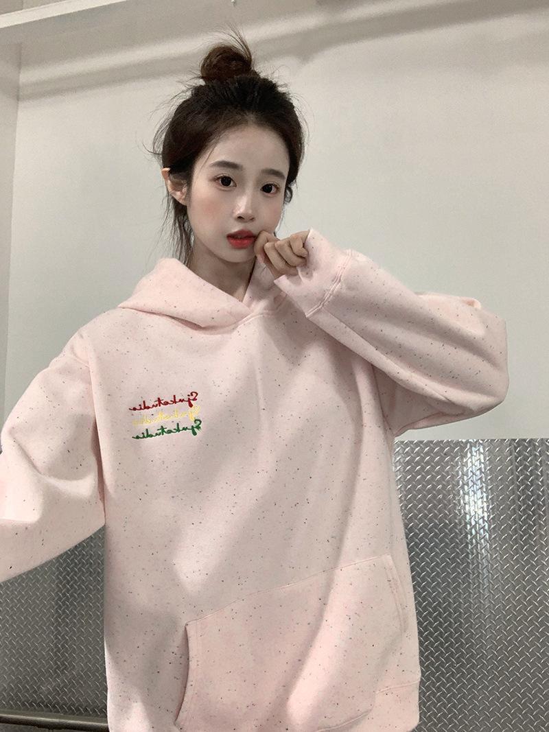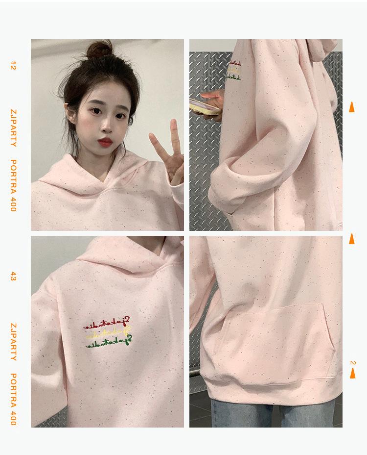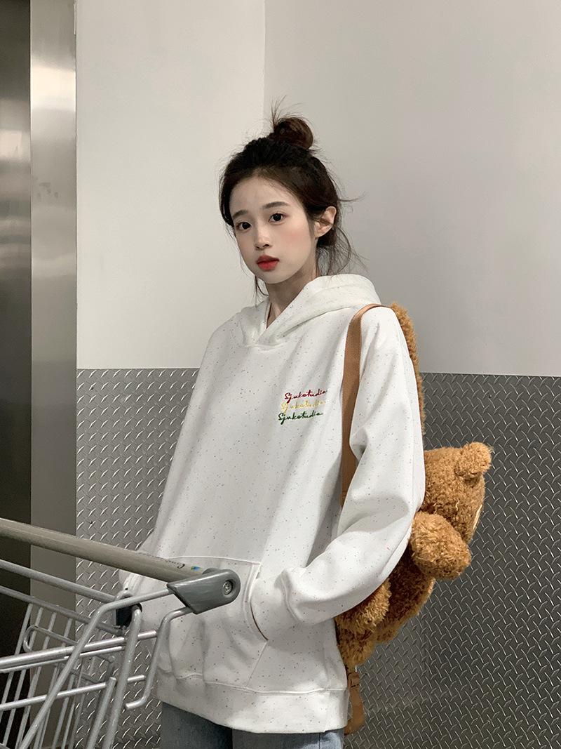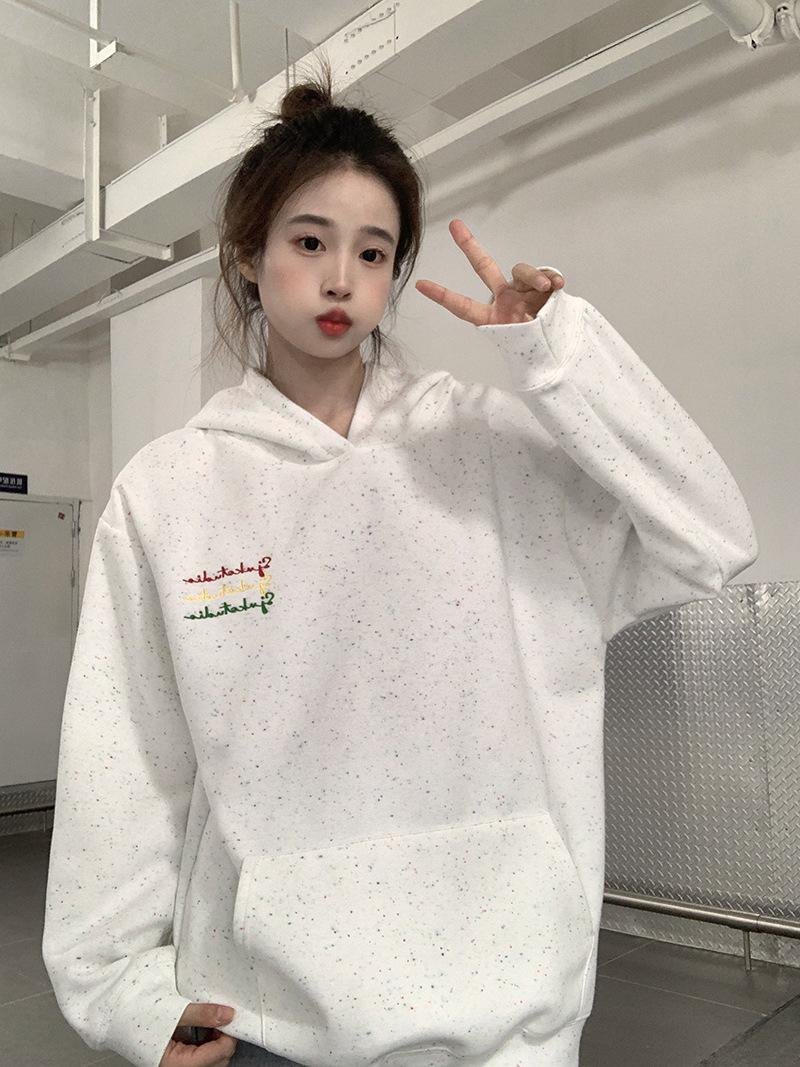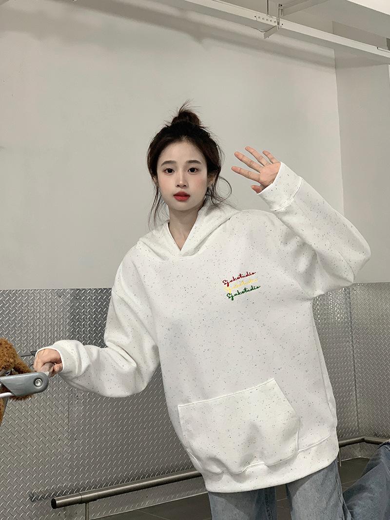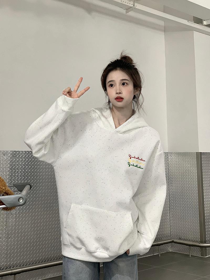 Sudadera Holgada Bordada Estilo Urbano Americano para Mujer Primavera Trendy Marca Casual Versátil Sudadera con Capucha para Pareja