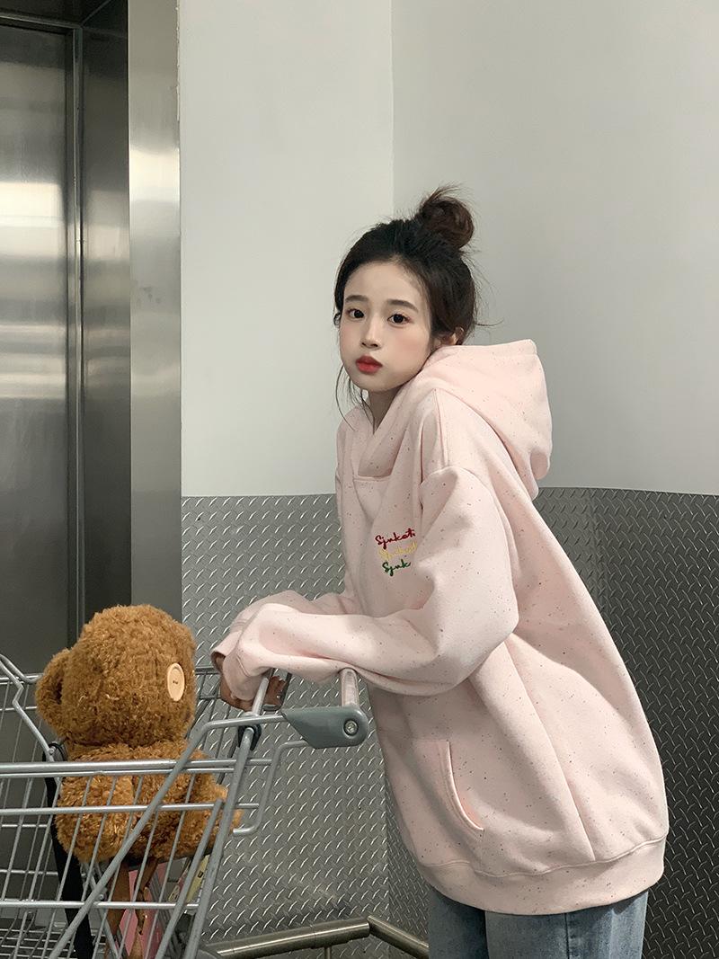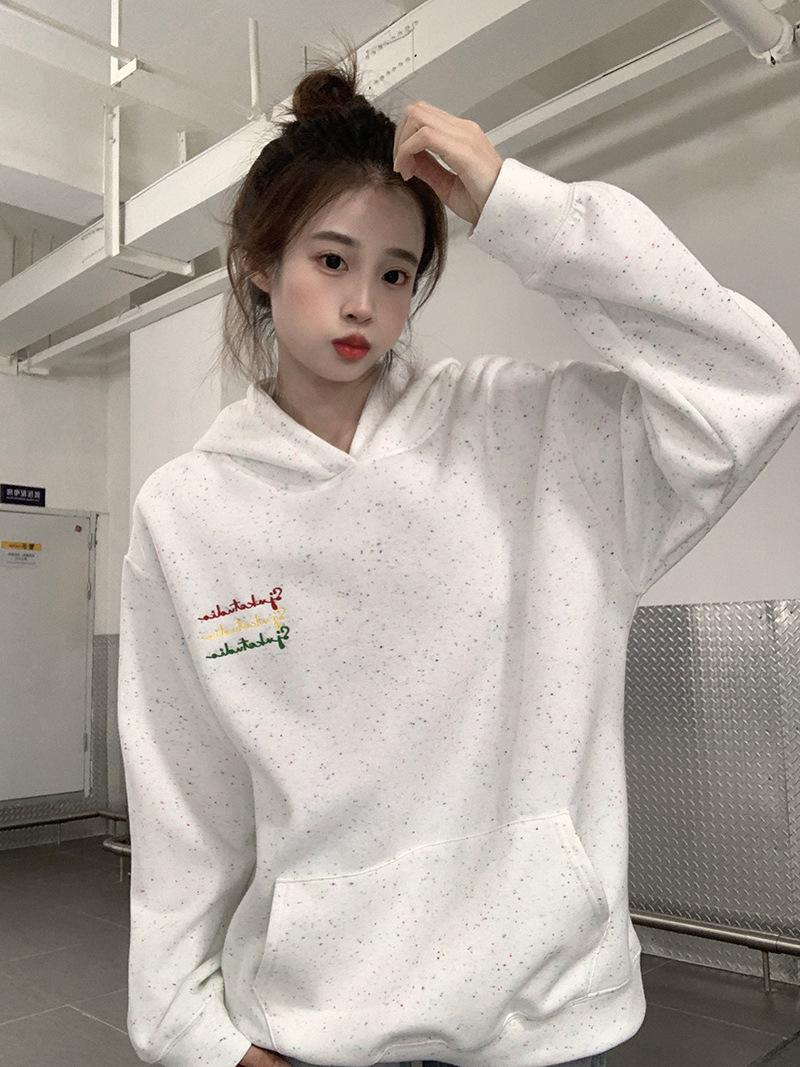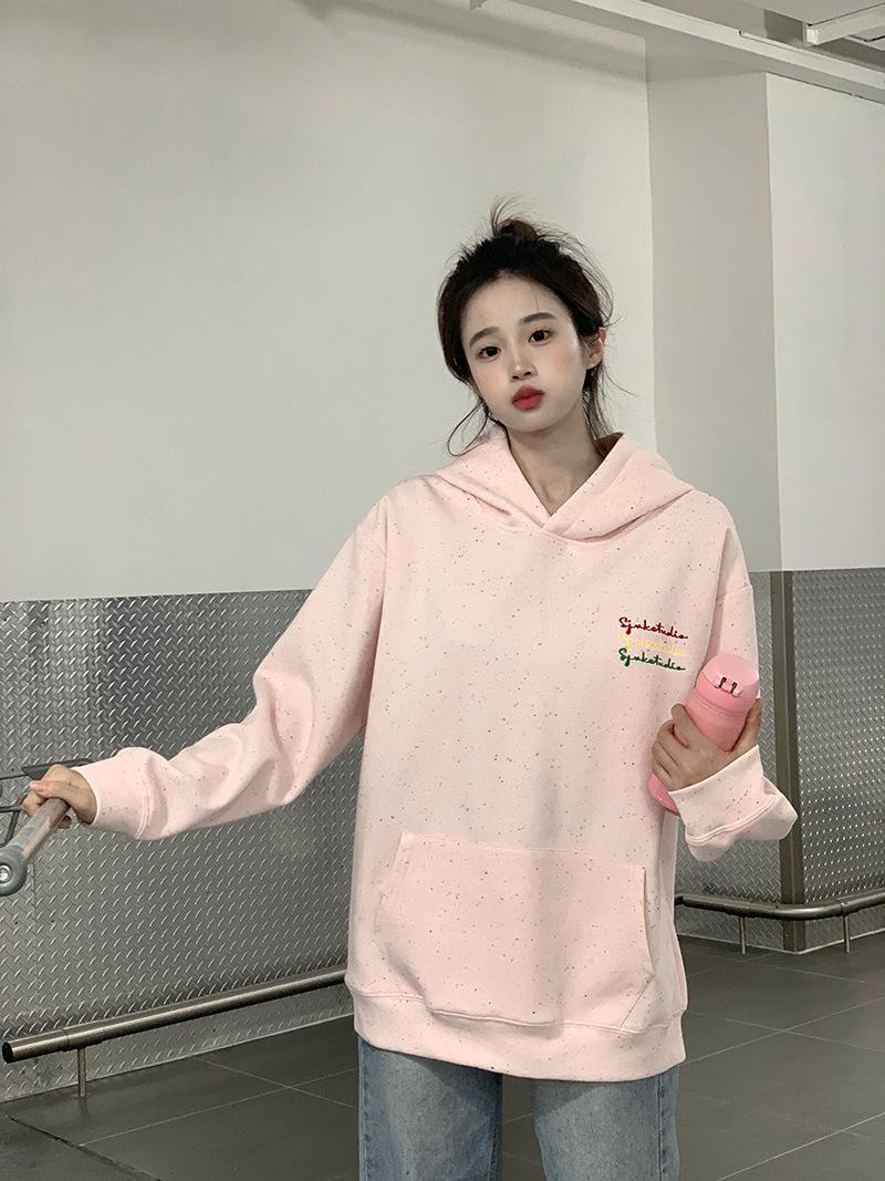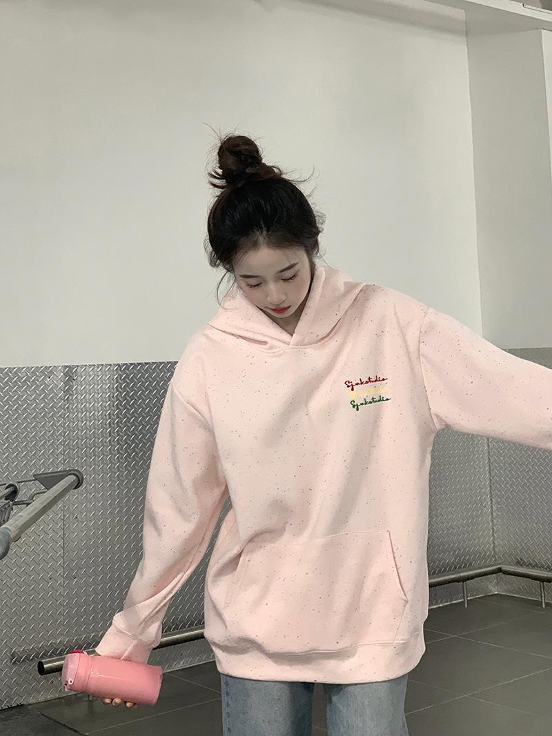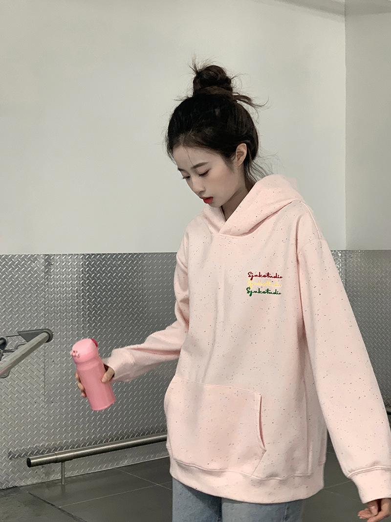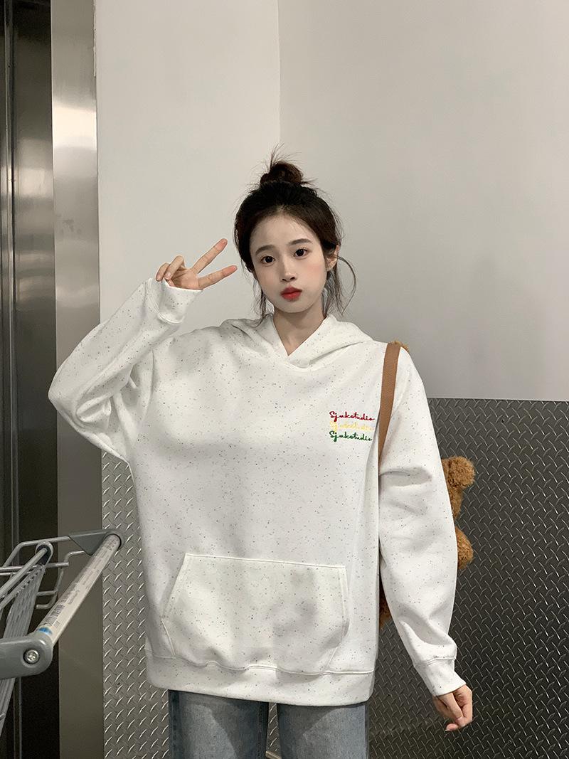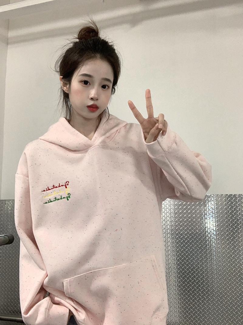 Sudadera Holgada Bordada Estilo Urbano Americano para Mujer Primavera Trendy Marca Casual Versátil Sudadera con Capucha para Pareja