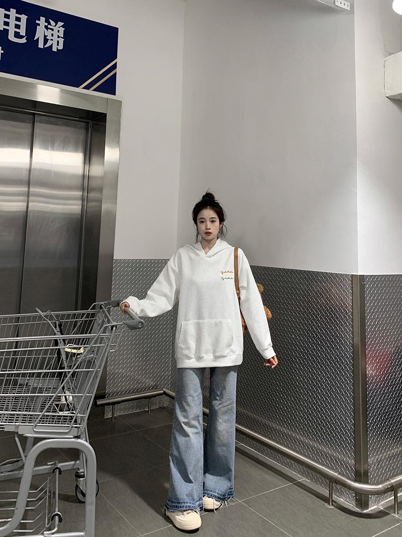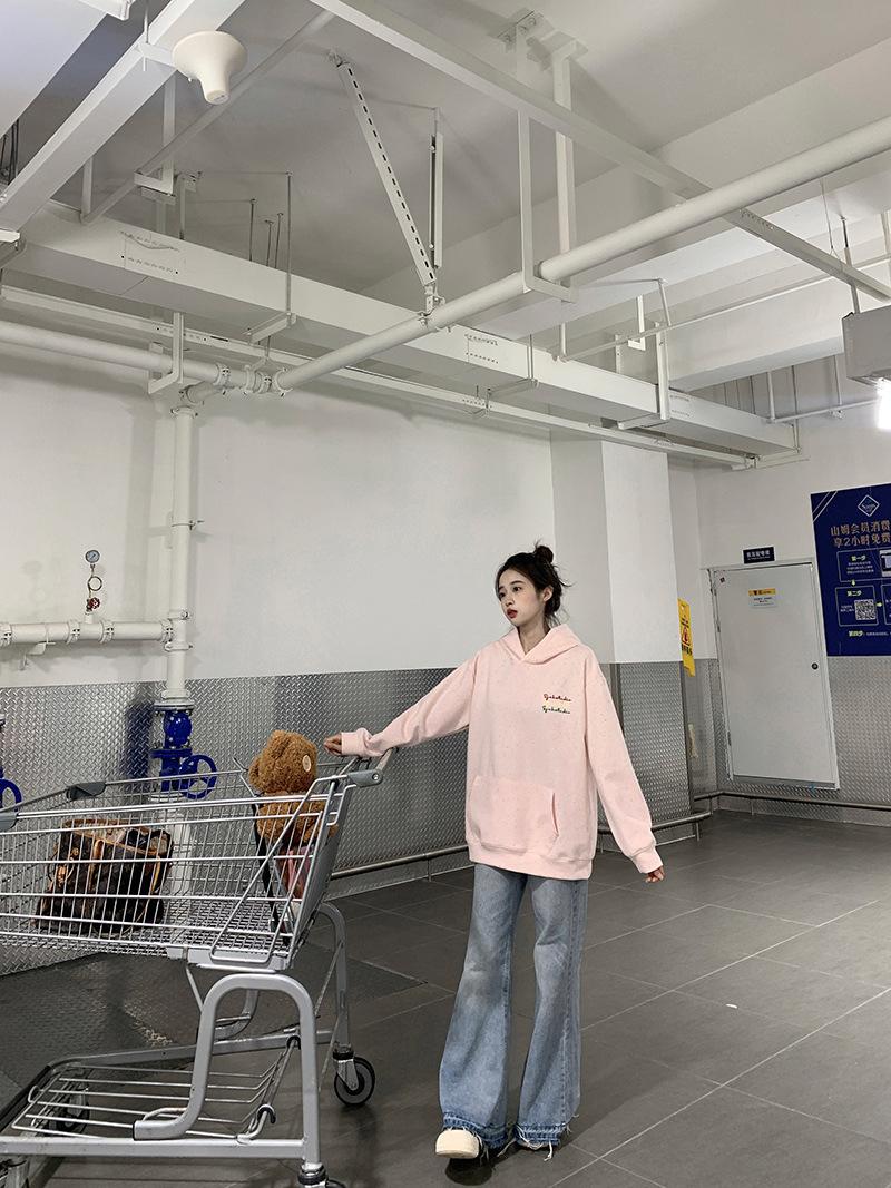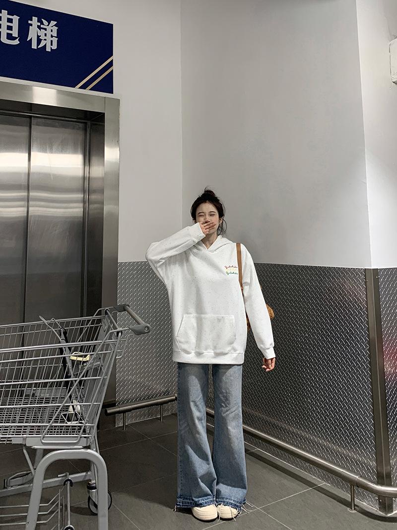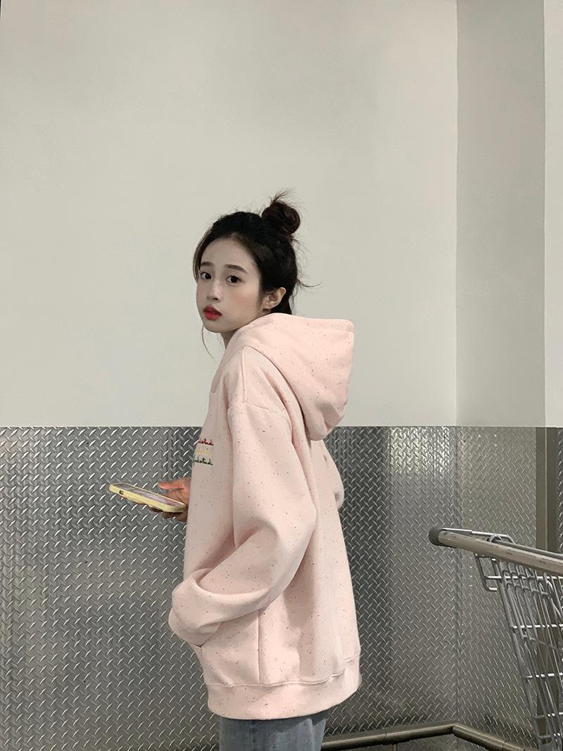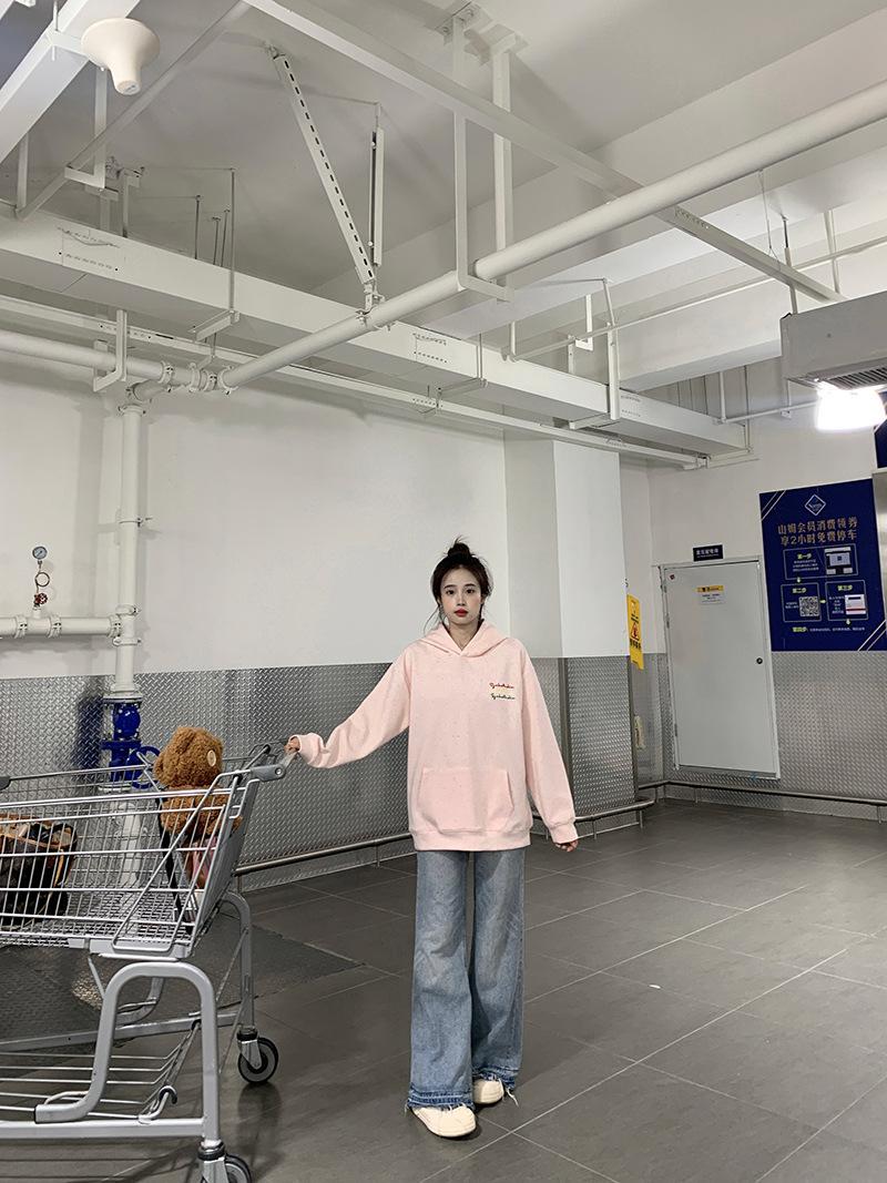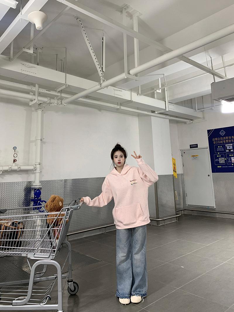 Sudadera Holgada Bordada Estilo Urbano Americano para Mujer Primavera Trendy Marca Casual Versátil Sudadera con Capucha para Pareja