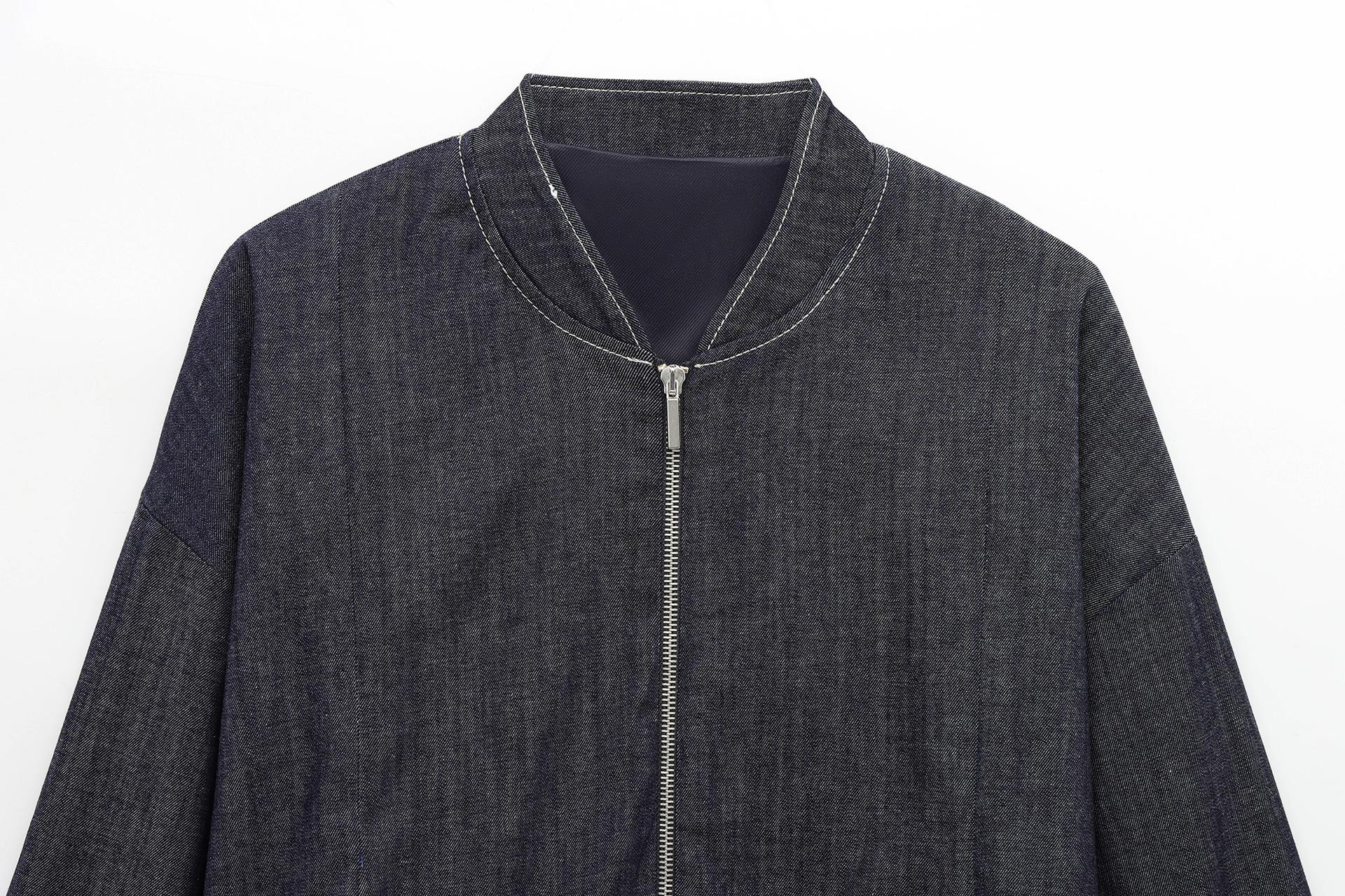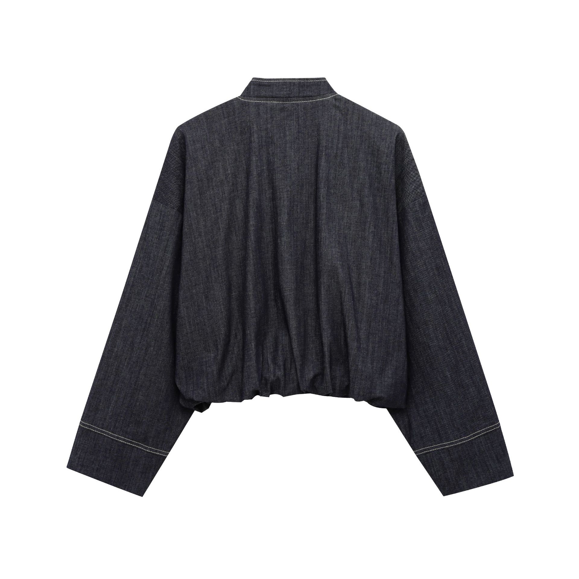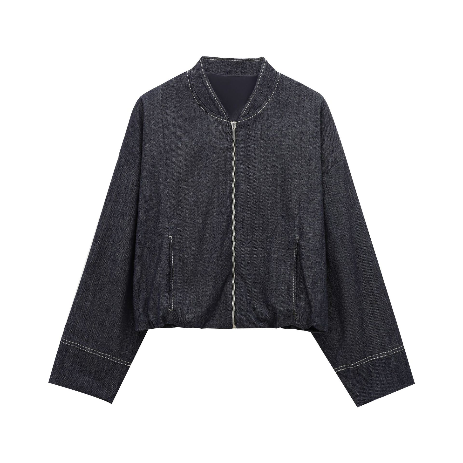 Chaqueta Bomber de Mezclilla Estilo Europeo y Americano Transfronterizo Popular de Comercio Exterior para Mujer Nuevo Estilo Globo