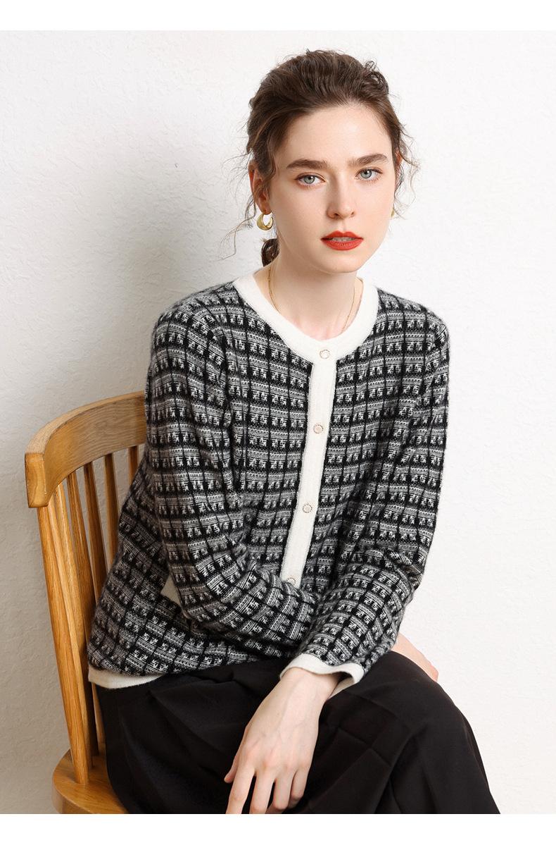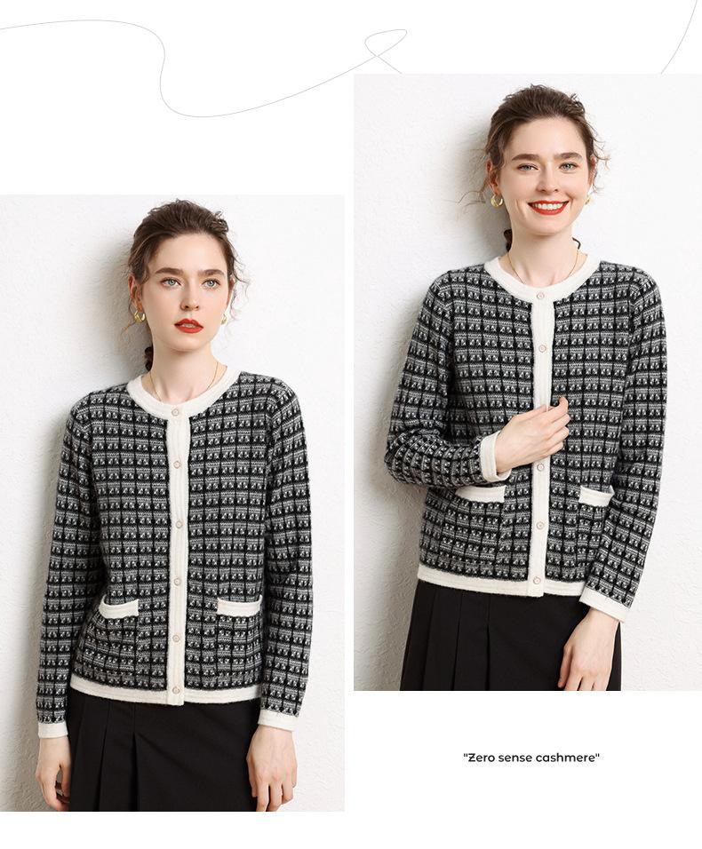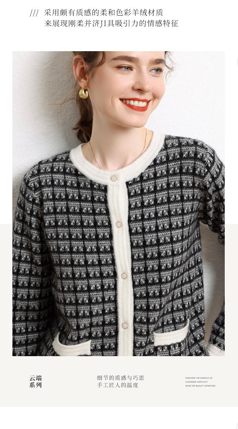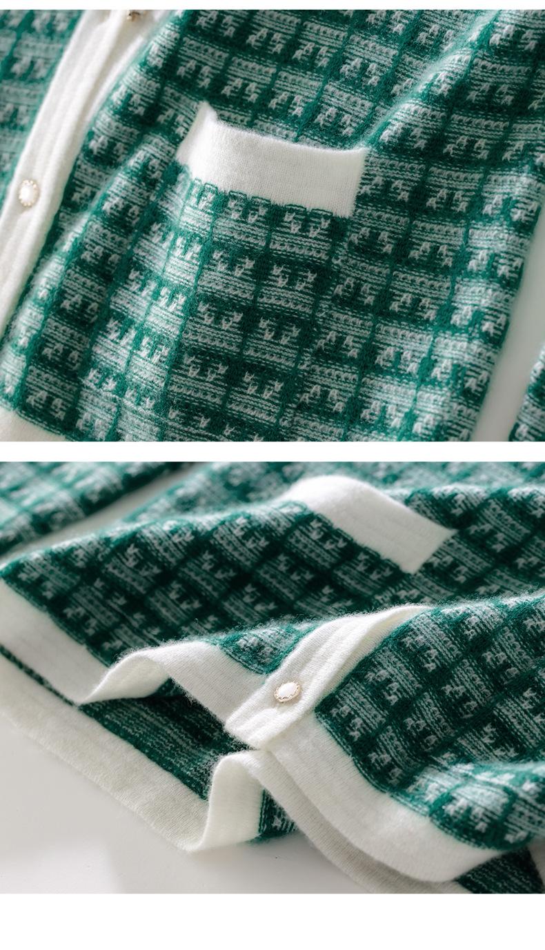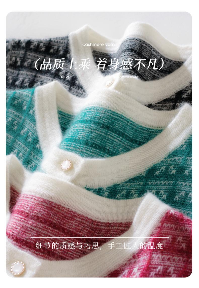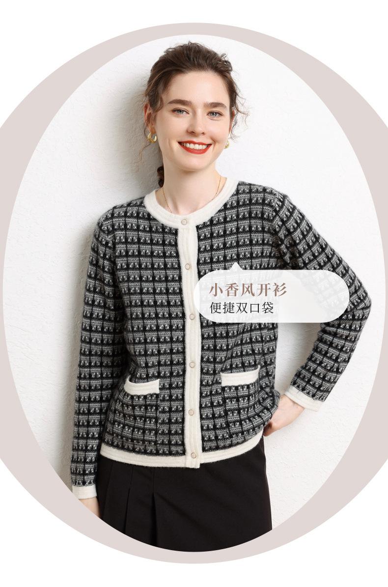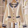Nuevo Otoño/Invierno Estilo Coreano Temperamento Pequeño Viento Chanel Cárdigan de Punto de Cachemira para Mujer Abrigo Grueso Cuello Redondo Bloque de Color Top