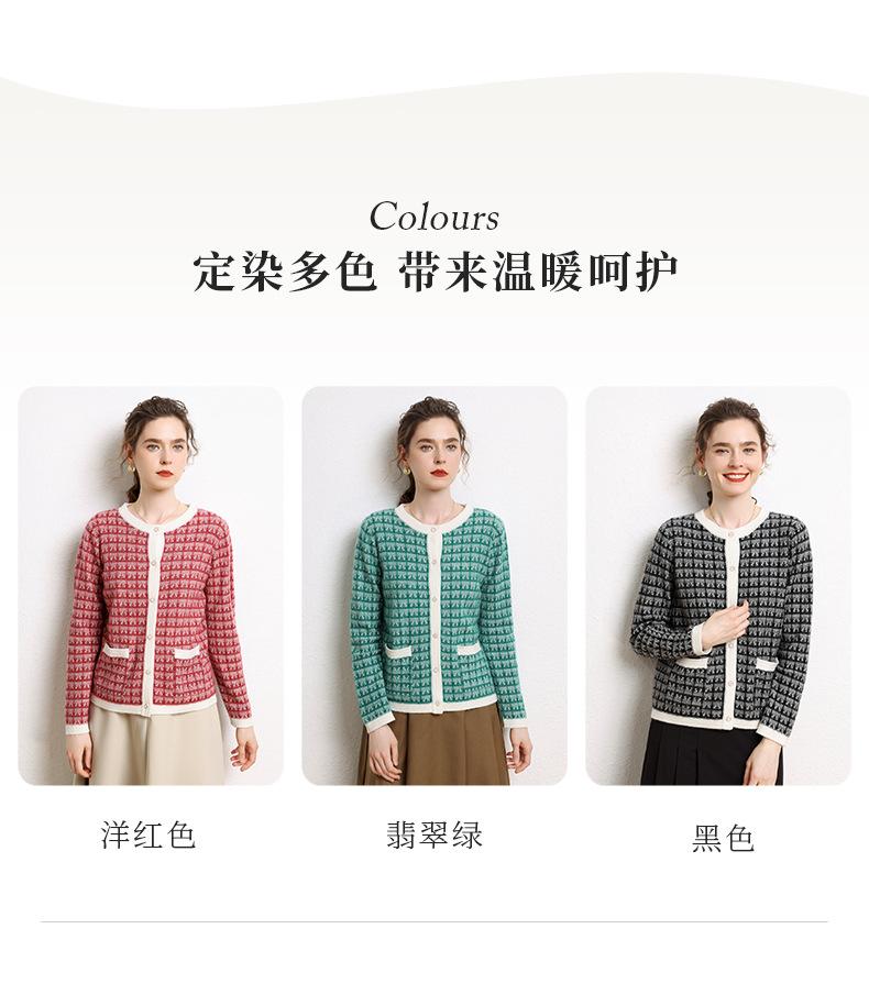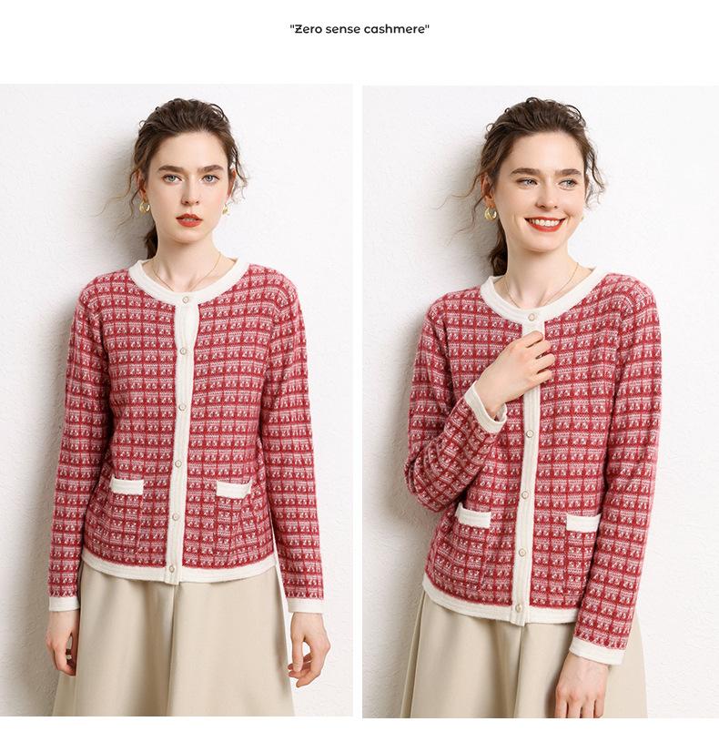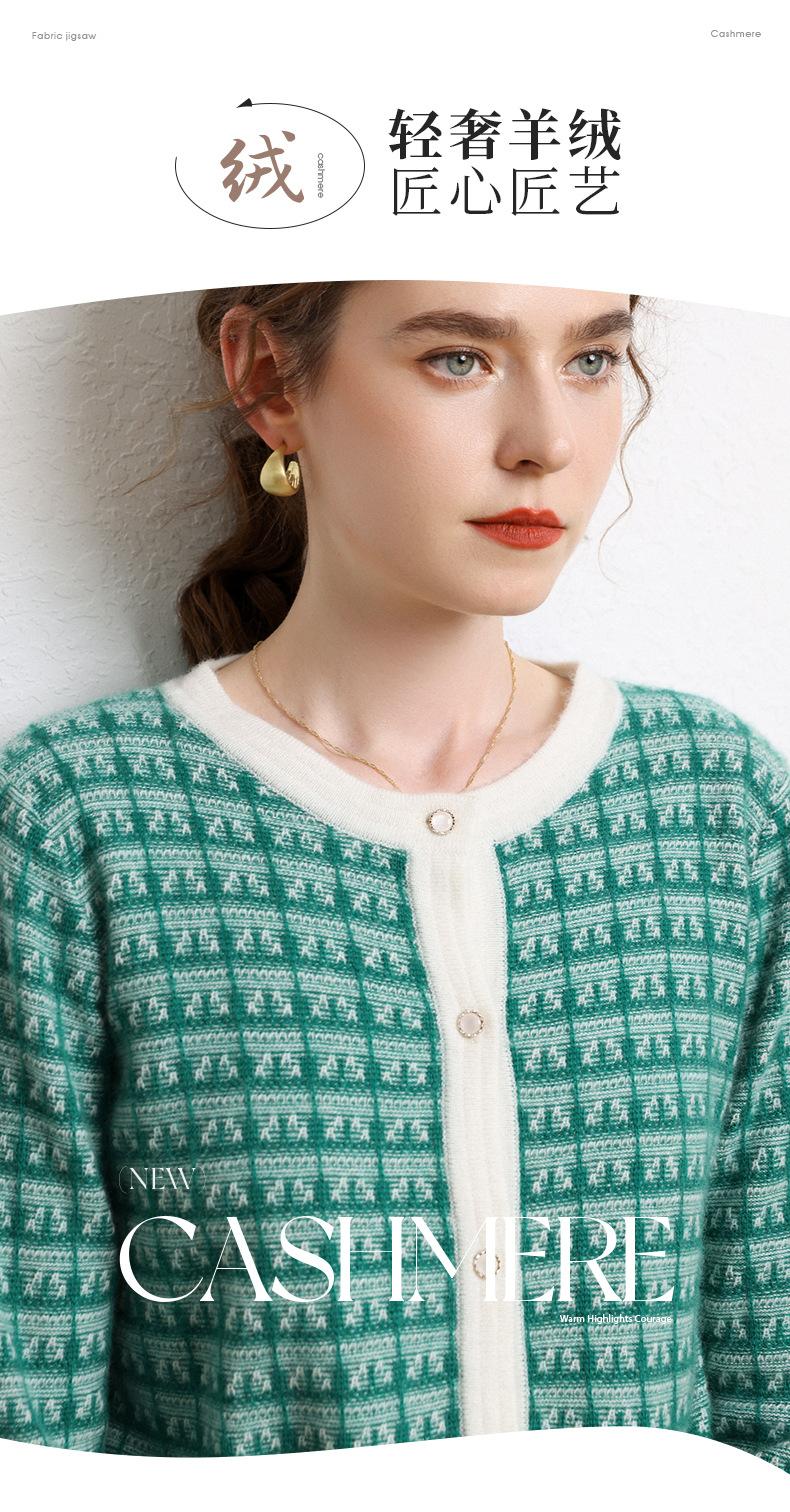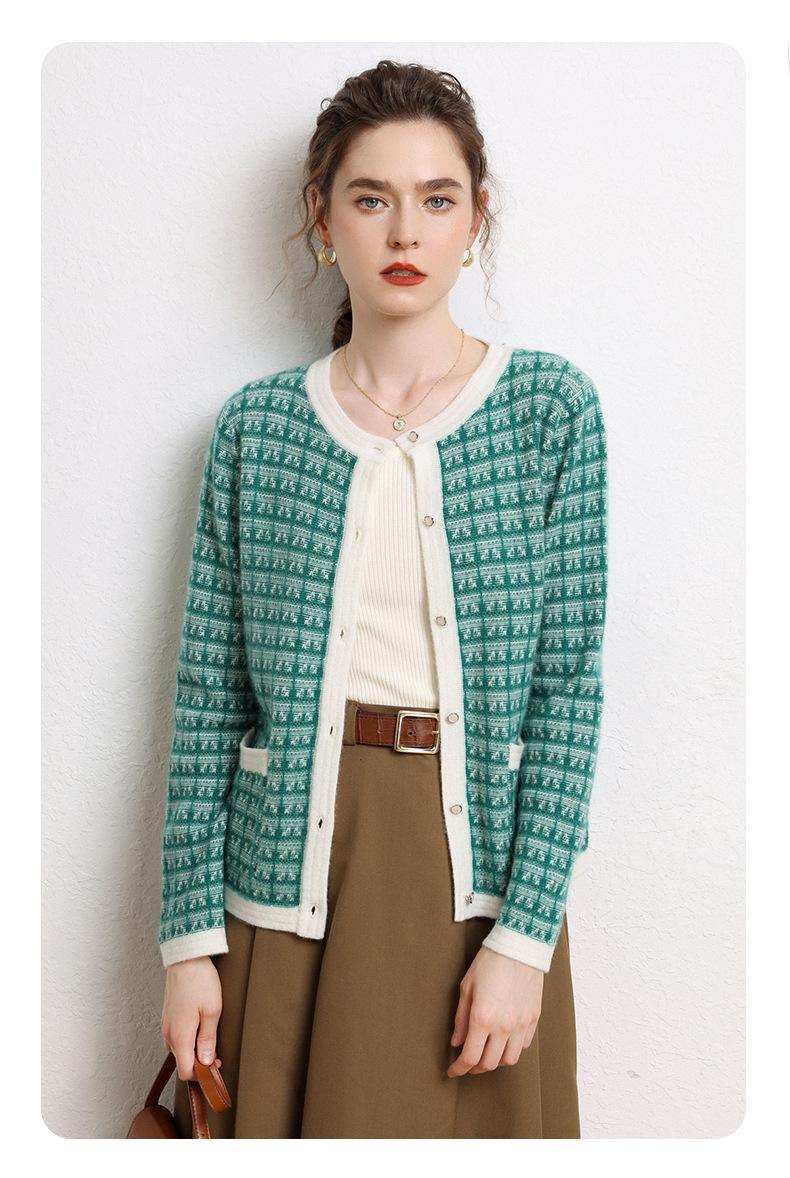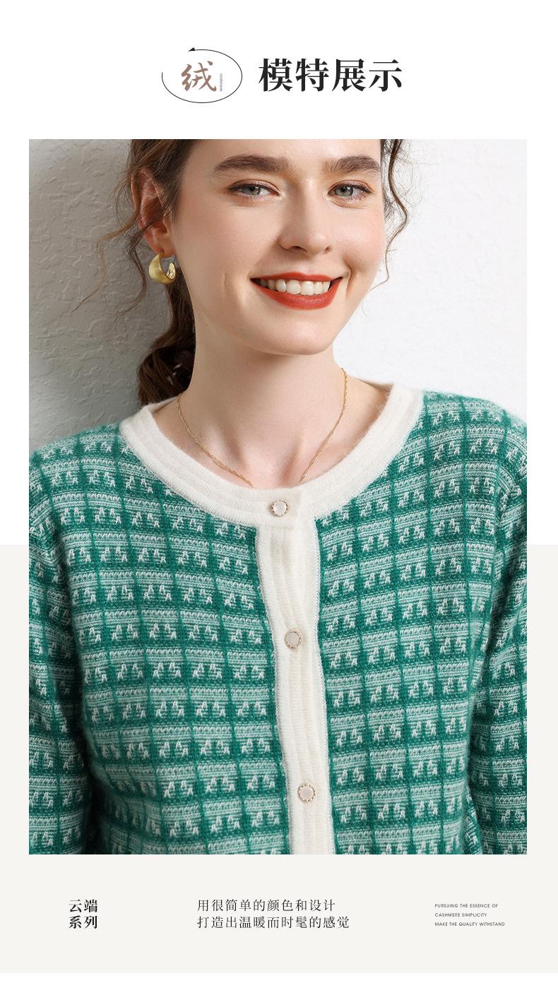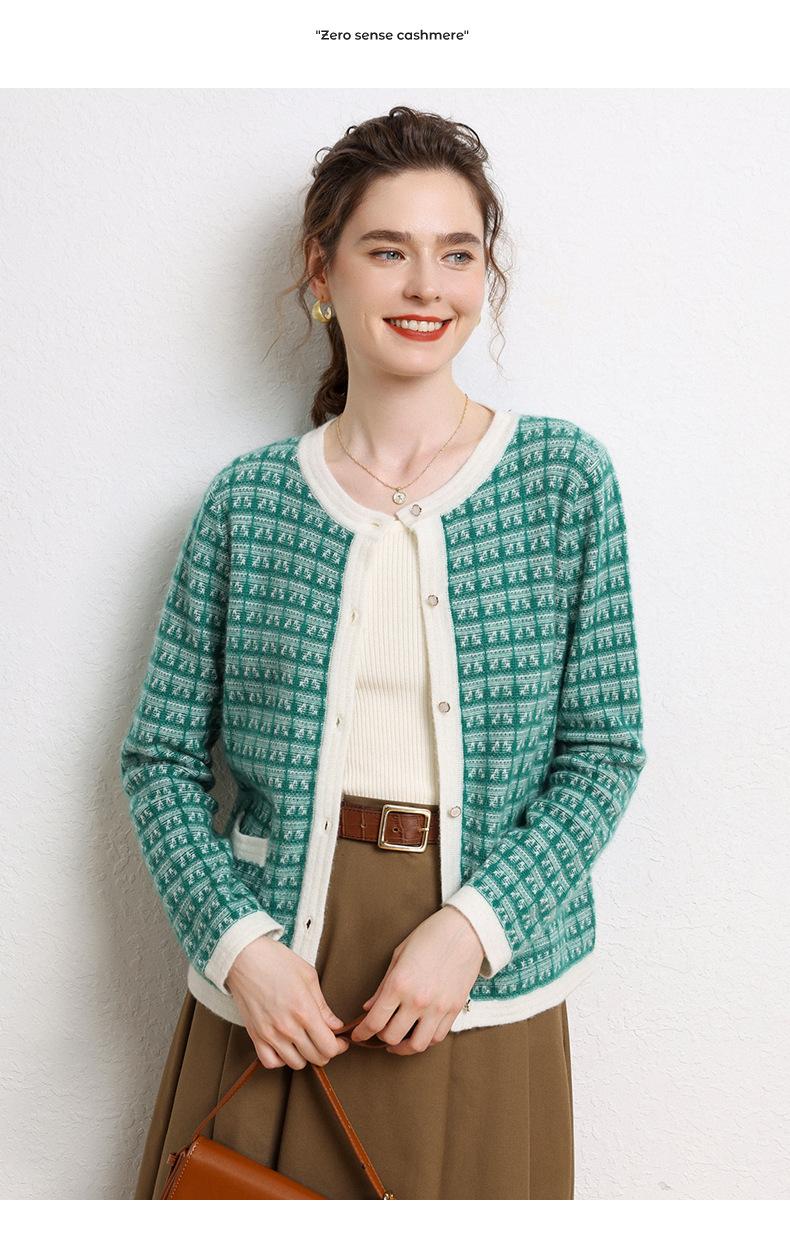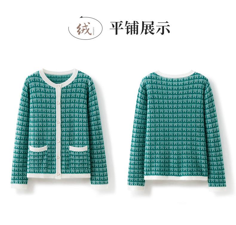 Nuevo Otoño/Invierno Estilo Coreano Temperamento Pequeño Viento Chanel Cárdigan de Punto de Cachemira para Mujer Abrigo Grueso Cuello Redondo Bloque de Color Top