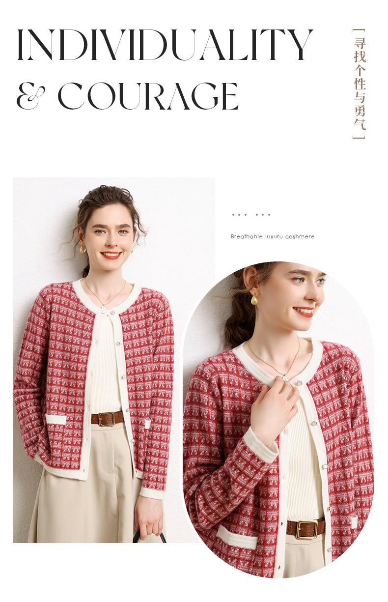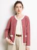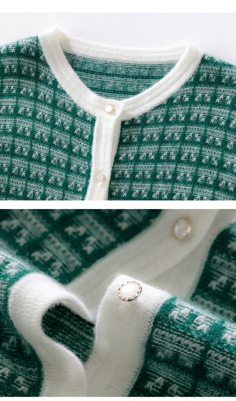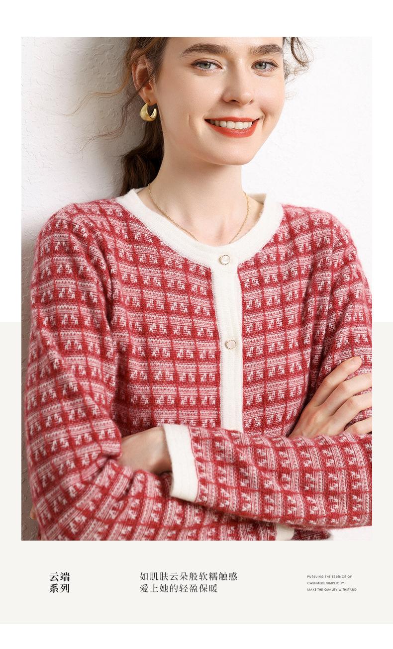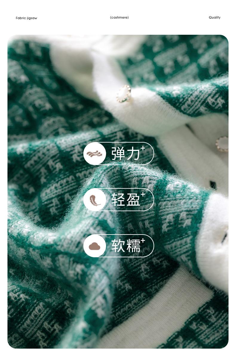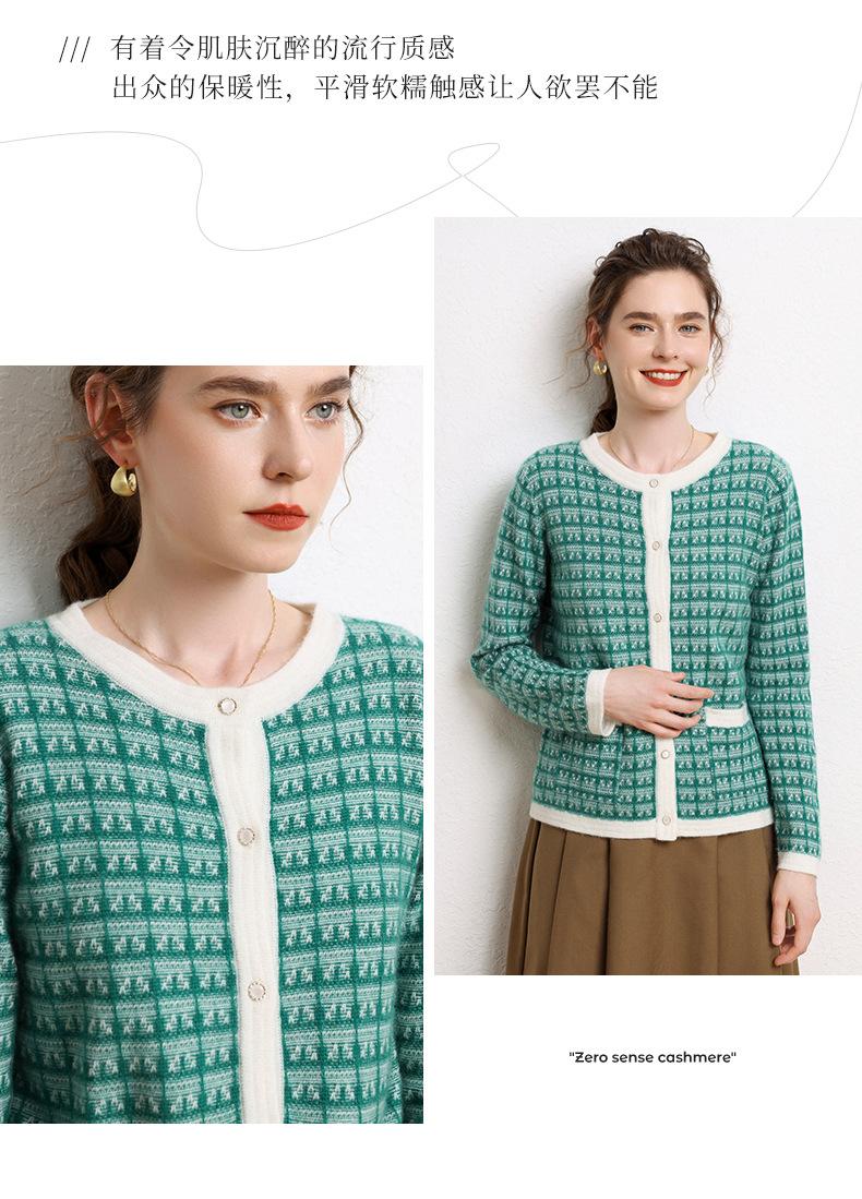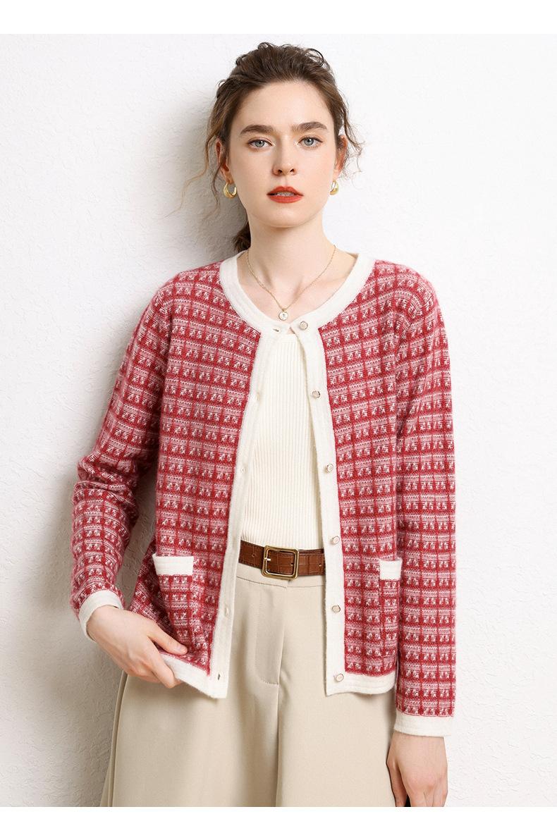 Nuevo Otoño/Invierno Estilo Coreano Temperamento Pequeño Viento Chanel Cárdigan de Punto de Cachemira para Mujer Abrigo Grueso Cuello Redondo Bloque de Color Top