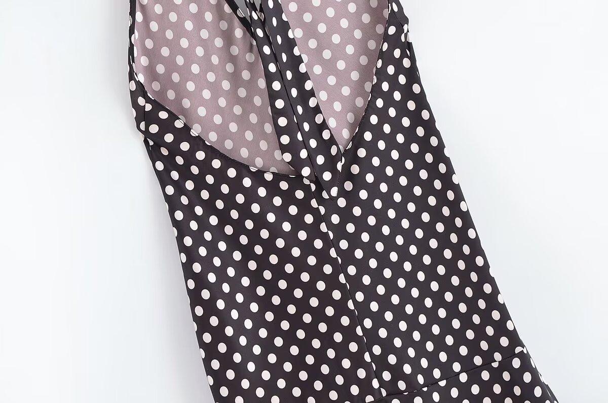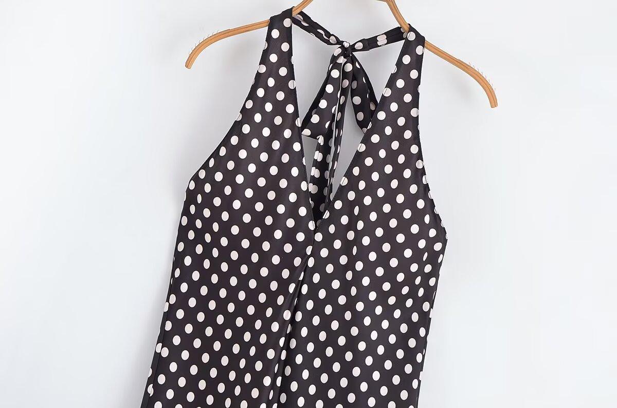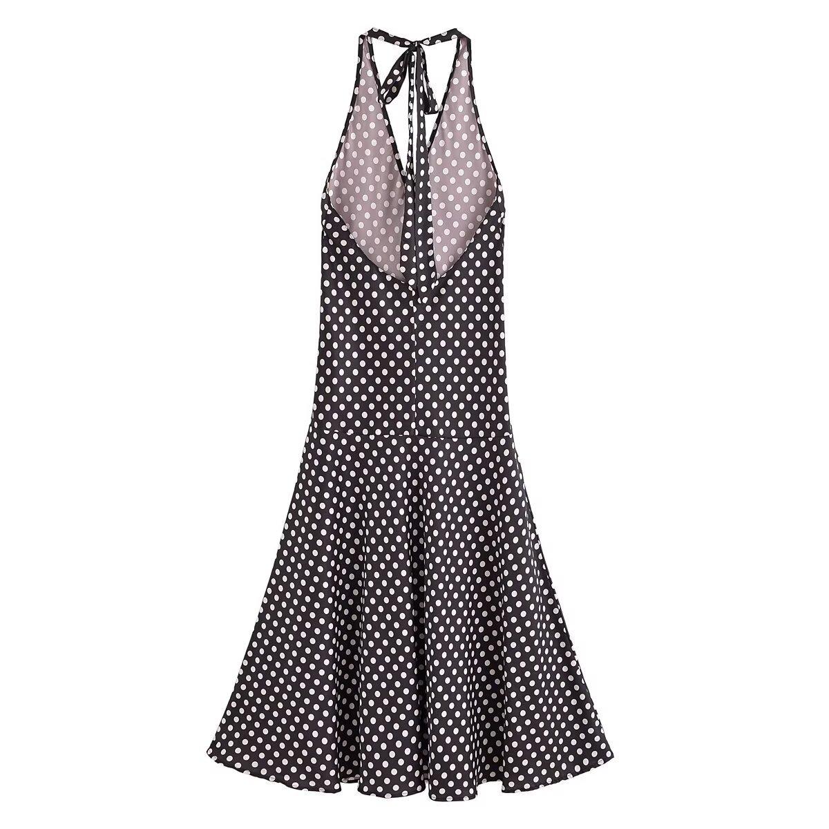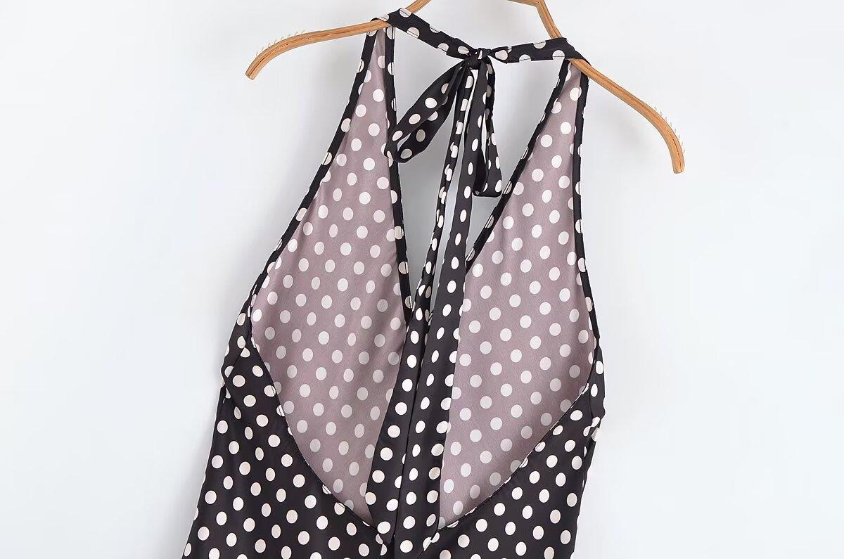 Ropa de mujer de comercio exterior transfronterizo 2025 otoño estilo europeo y americano halter sin espalda sin mangas bloque de color lunares vestido largo L28368