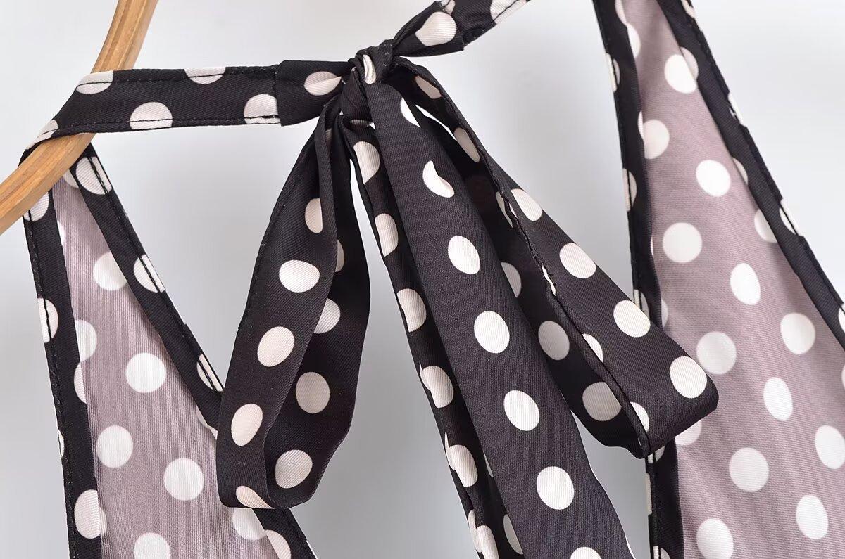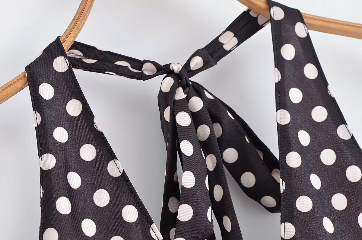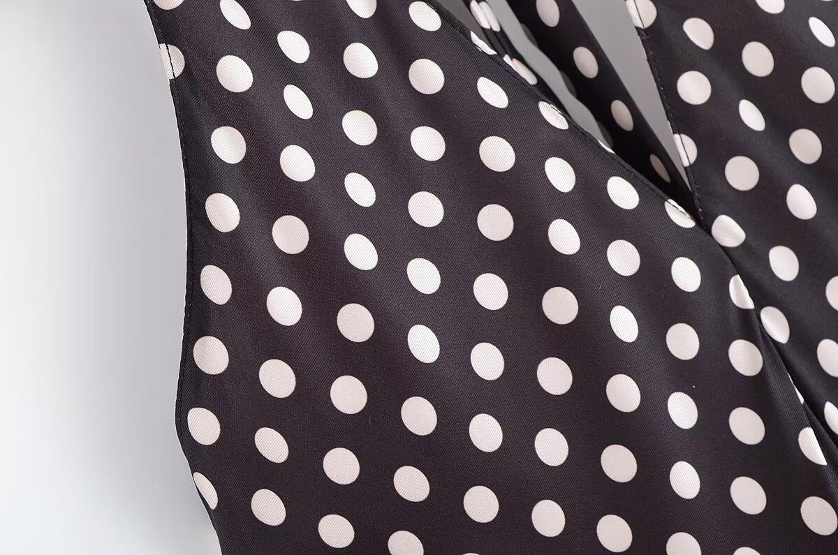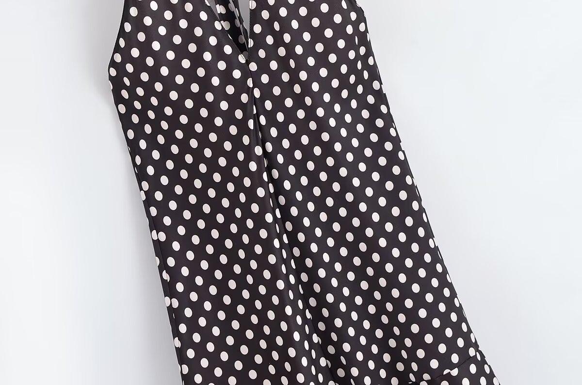 Ropa de mujer de comercio exterior transfronterizo 2025 otoño estilo europeo y americano halter sin espalda sin mangas bloque de color lunares vestido largo L28368