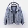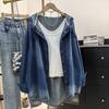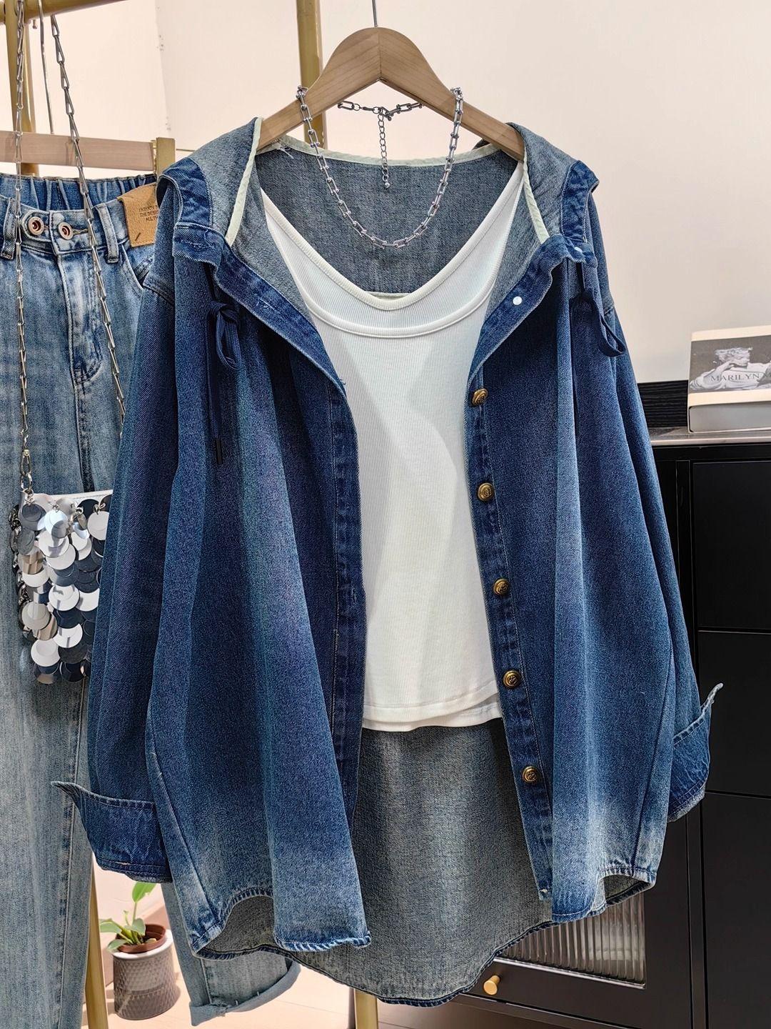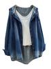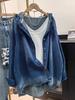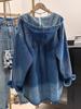 Camisa de mezclilla con capucha para mujer de longitud media 2025 primavera y otoño nuevo estilo coreano casual retro holgada de manga larga chaqueta