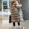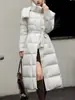 Chamarra de Plumón Personalizada para Mujer Nueva Moda Chamarra de Plumón de Ganso Corte Slim Extra Larga Hasta la Rodilla con Capucha Pan Exterior Grueso