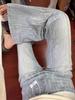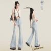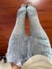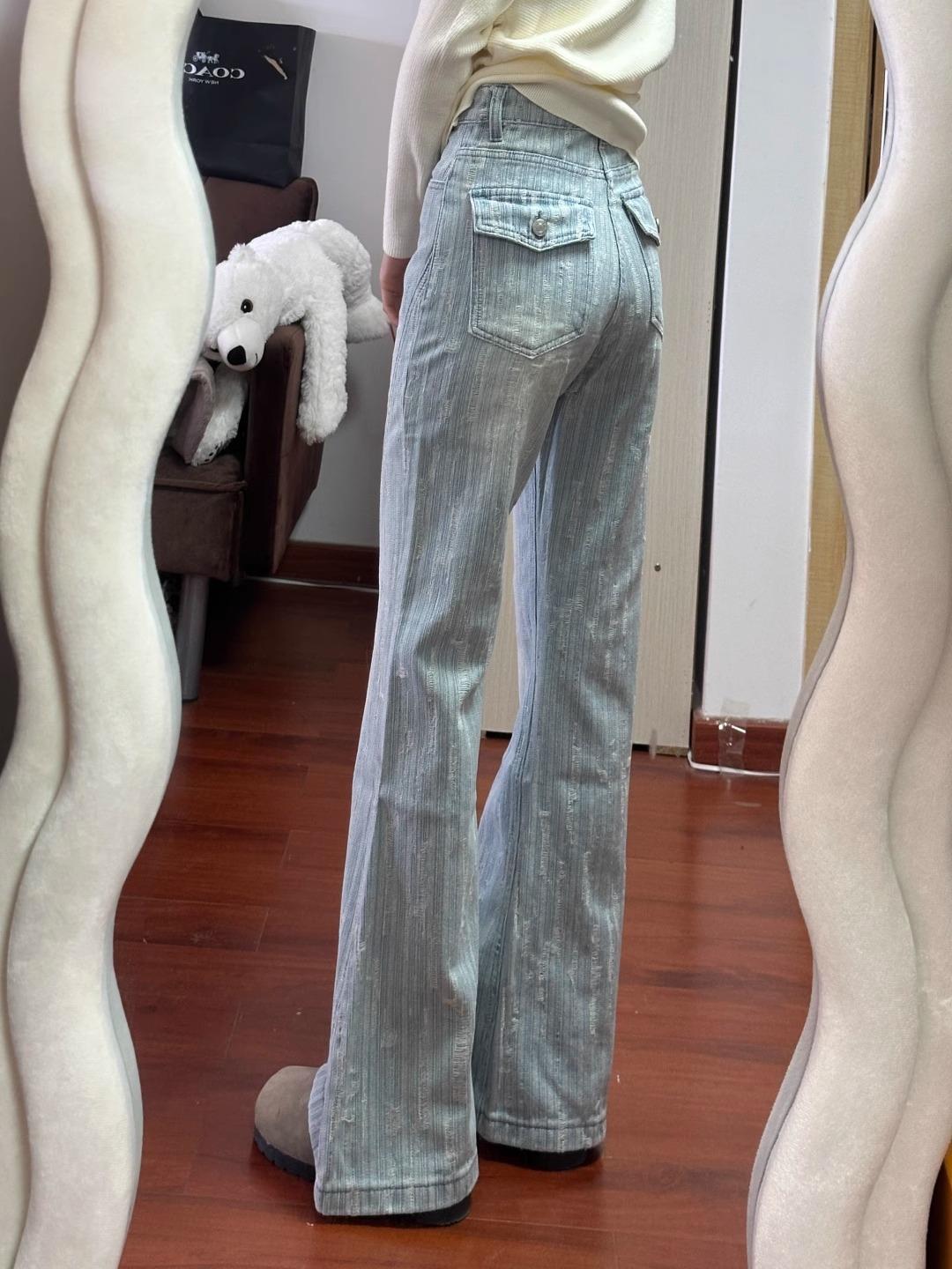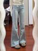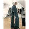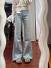 Jeans acampanados micro de color azul claro para mujer otoño nuevo cintura alta adelgazantes holgados pierna no ceñida diseño jacquard pantalones de herradura