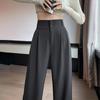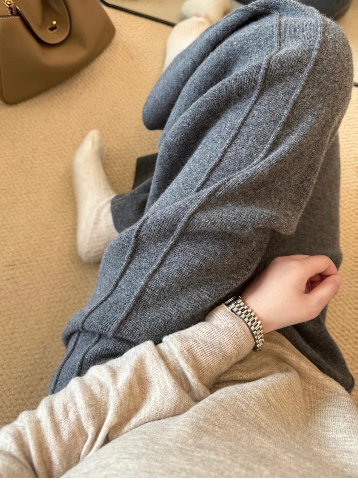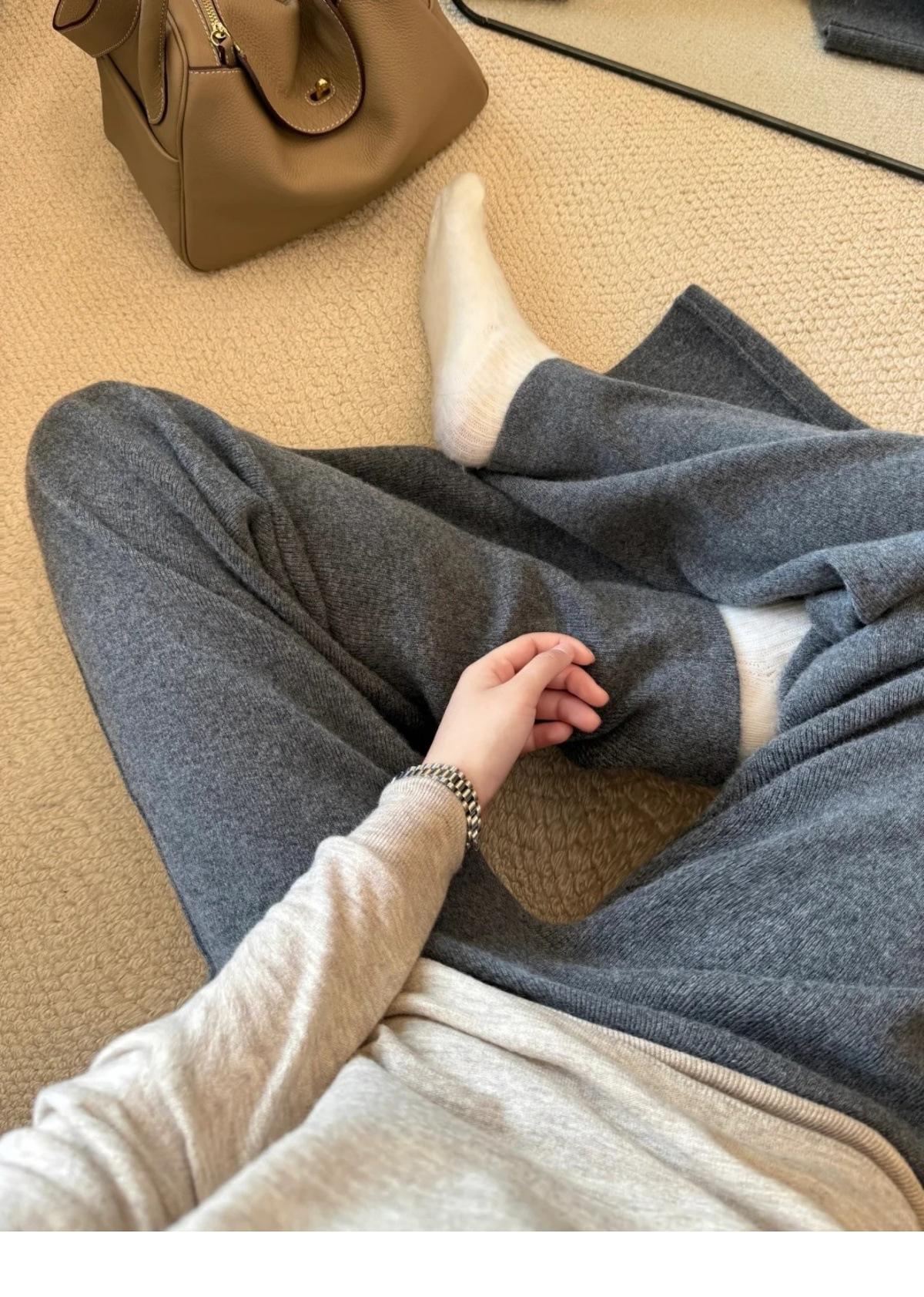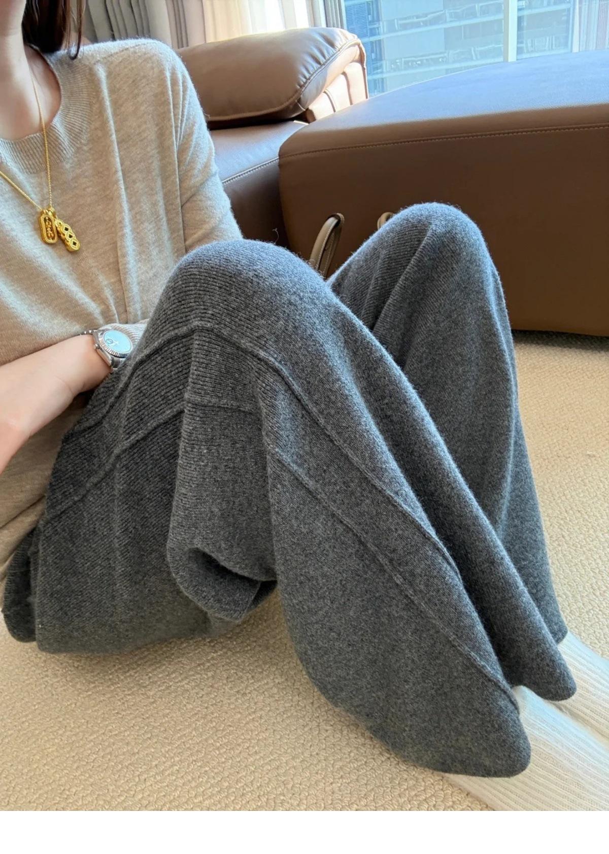 Pantalones casuales de punto grises de pierna recta para mujer 2025 Otoño/Invierno Nuevo Moda de alta gama Versátil Adelgazantes Pantalones de pierna ancha