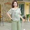 Nuevo Traje de Camiseta de Madre Estilo Nacional Estilo Chino Estampado 2025 Verano Nuevo Elegante Elegante Conjunto de Dos Piezas para Mediana Edad y Ancianos